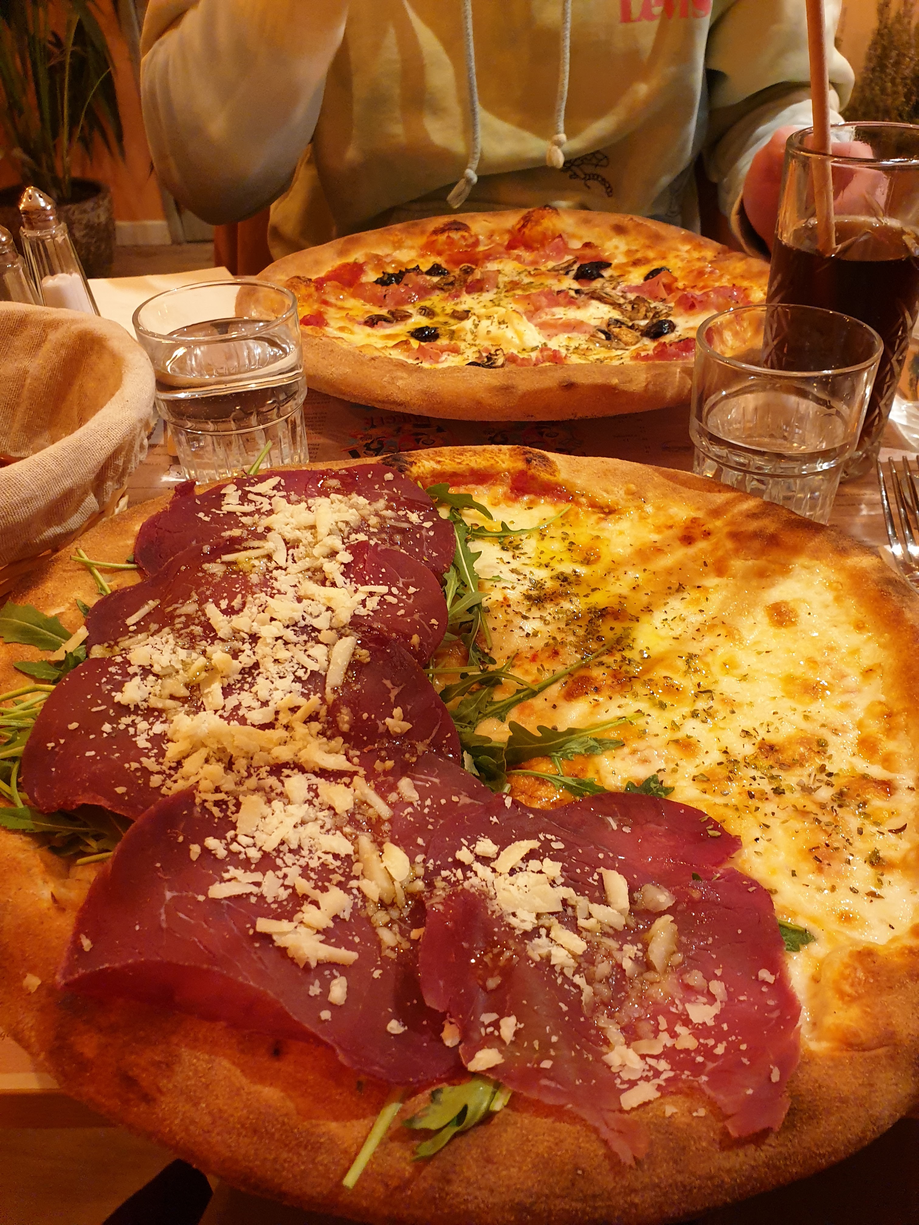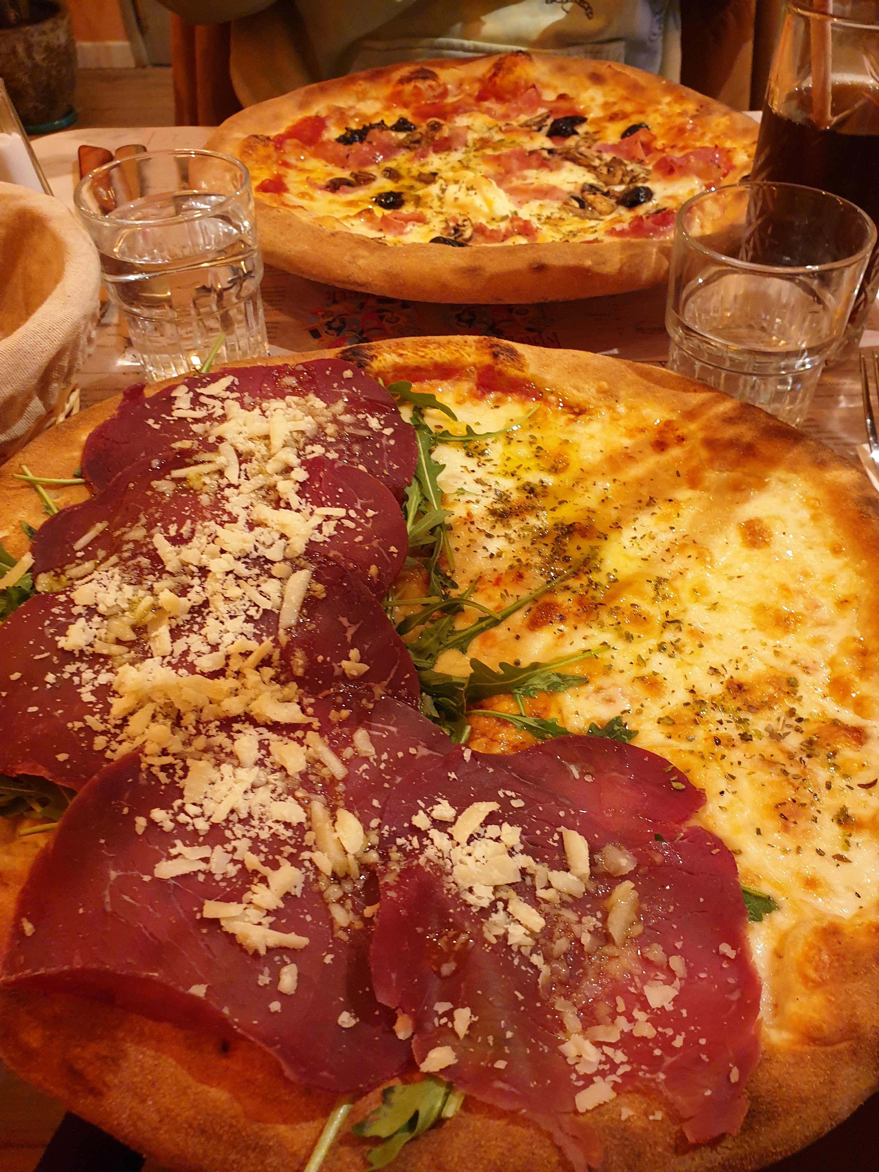 Un peu déçue de mon expérience. J’ai pris une pizza censée être mi pizza mi foccaccia et je me suis retrouvée avec une pizza classique mais juste toute la garniture à gauche … De plus le goût n’était pas vraiment au rendez-vous, beaucoup de salade et peu de goût. Le tiramisu était bon mais sans plus et nous avons retrouvé un bout de coquille d’œuf. Par contre le vin blanc moelleux pétillant était divin et le personnel très agréable.