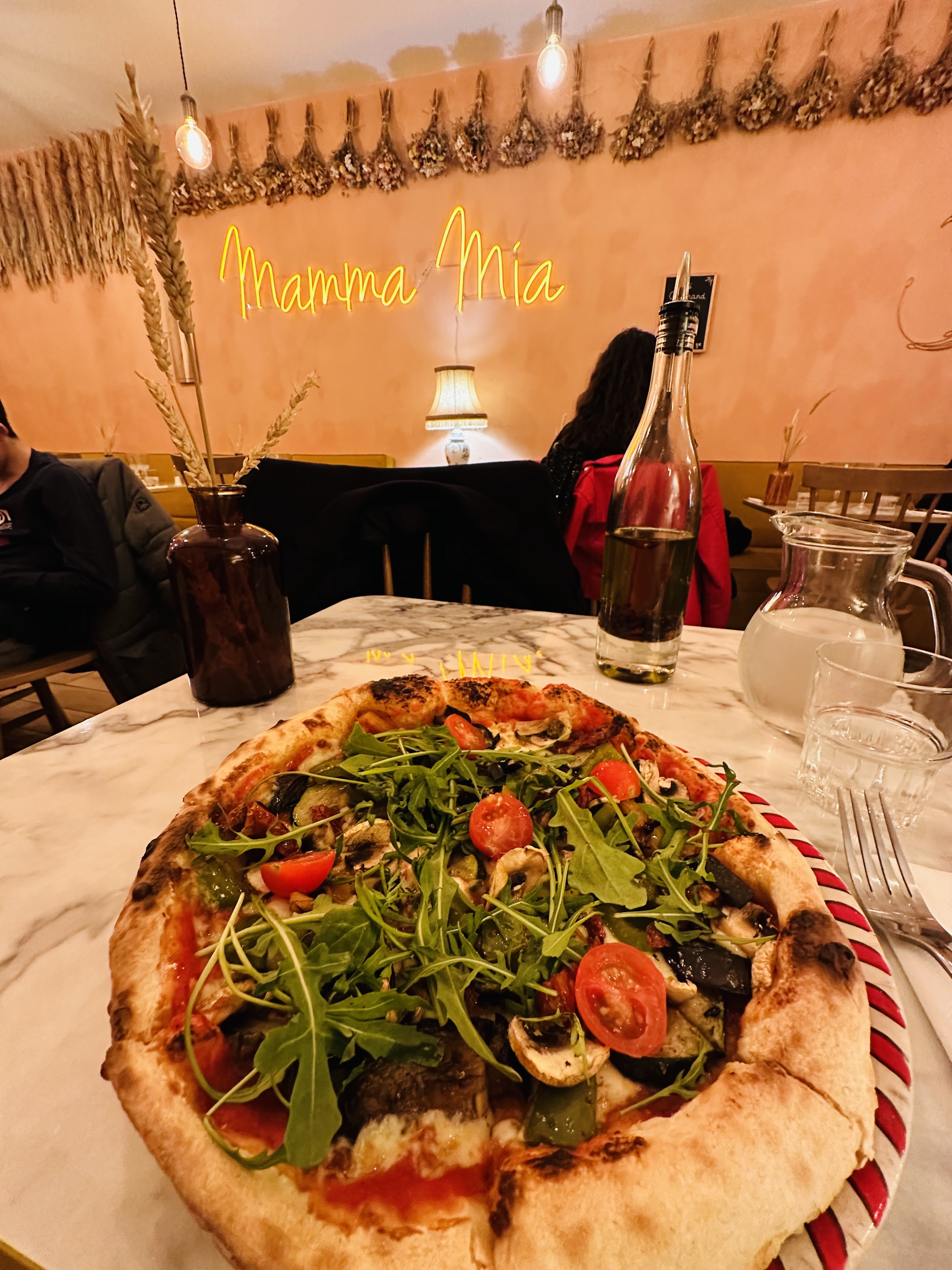 Belle deco et accueil très sympathique. Salle étroite peut être vite bruyante. Bruschetta conséquente mais bonne pour une anti pasti ( mais trop de roquette, effet herbe). Je reviendrai goûter une pizza!