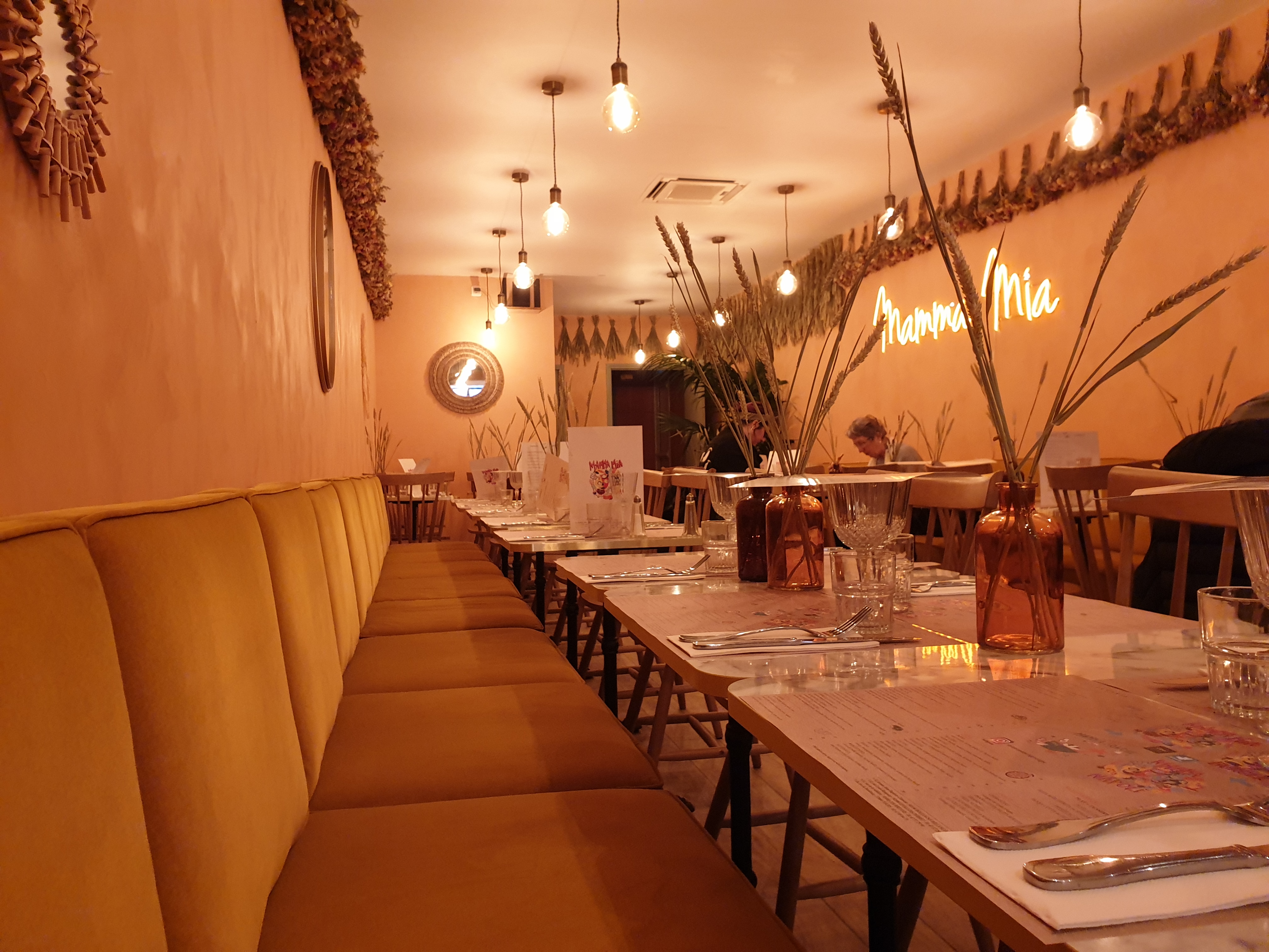 Nous avons très bien mangé ce midi chez Mamma Mia.....petit resto agréable et joli.....en toute simplicité. Ambiance détendue. La calzone était délicieuse ainsi que les 2 burgers au pain maison. Nous nous sommes laissés tenter par les desserts : tiramisu, le dessert surprise et le café gourmand sans aucun regret. Adresse sympathique, à retenir et recommander.