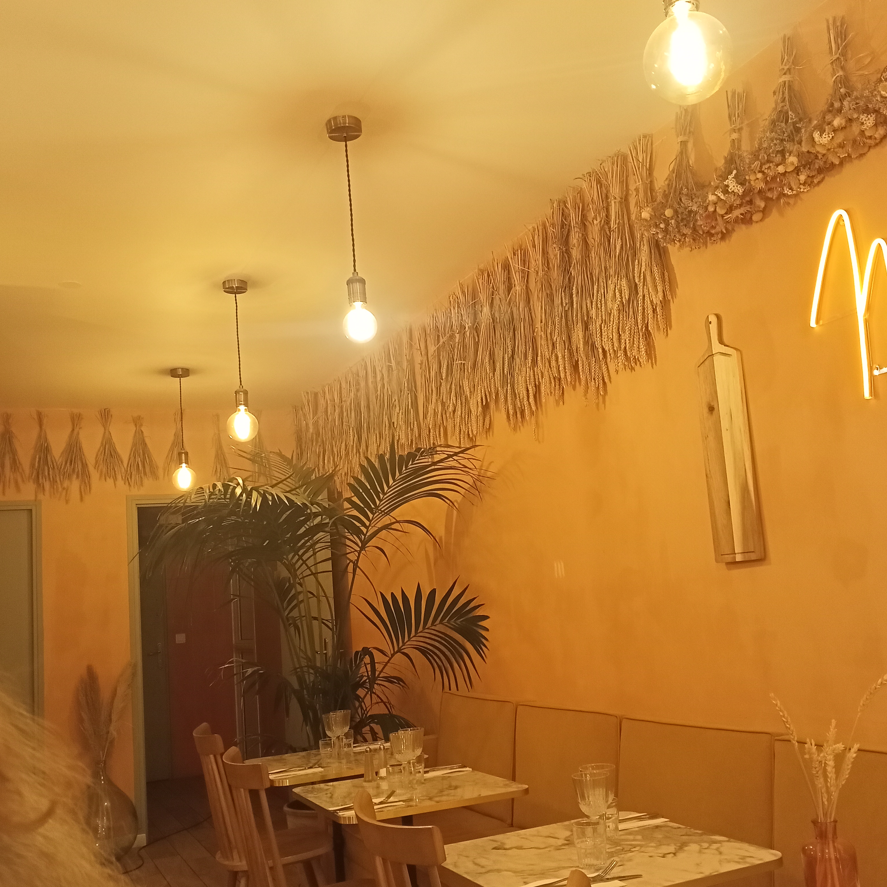 Le lieu est sympathique, et la carte attractive. Quelques bémols cependant. Trop de tables dans un si petit espace. On comprend l'envie d'optimiser le nombre de couverts et la recette qui va avec, mais la serveuse passe à peine entre les tables. Au coup de feu, l'attente pour passer commande est interminable. Sur 1h et demie de pause, nous n'avons eu qu'une demi-heure pour déjeuner au final et n'avons pas pu profiter d'un dessert et d'un café. Un grand nombre de livreurs Uber et Deliveroo sont passés prendre commande et sont repartis rapidement. Pendant ce temps les clients sur place attendent....plus d'une heure. Tout vouloir faire, c'est louable mais encore faut-il pouvoir tout assurer correctement. Il faut faire des choix. Le plus : la cuisine est fraîche et délicieuse.