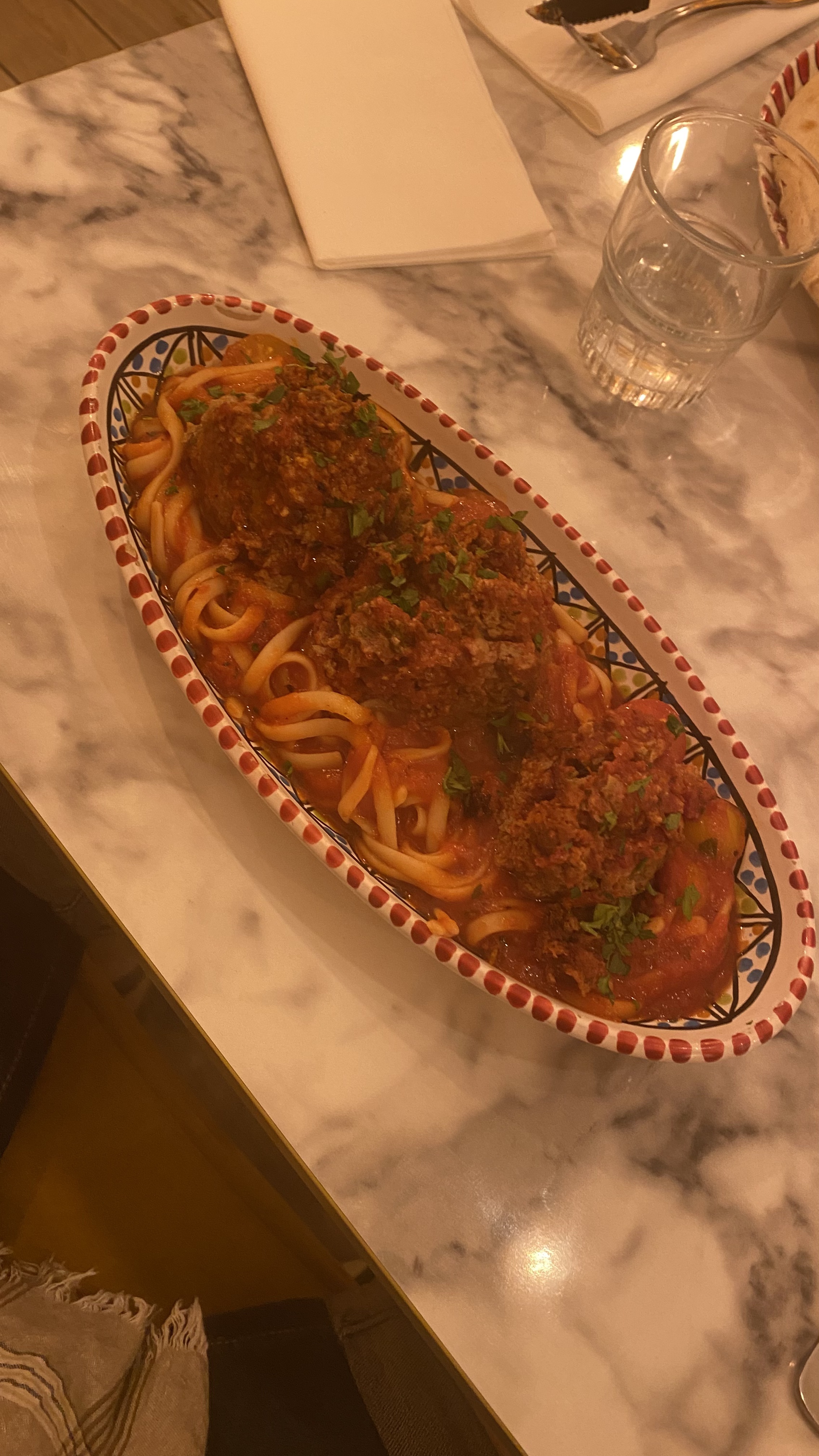 Acceuil agréable et peu d'attente. Pates avec boulettes de viandes sauce tomate à déguster avec envie même si un peu fade. Ambiance agréable mais la relation client et personnel est à améliorer. Certains quiproquos et incompréhensions peuvent être évités.