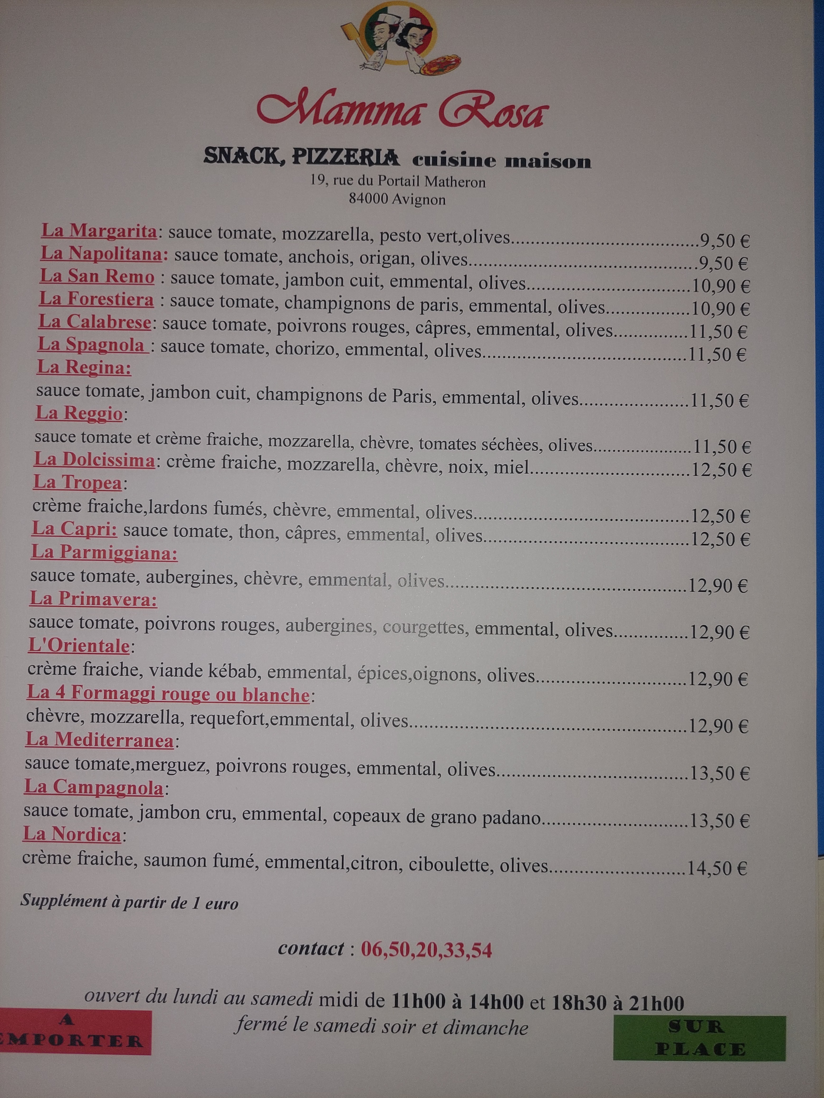Avis a tous...très bon accueil tout est fait maison et rapport qualité prix rien à dire je le conseille fortement et je suis résident en Avignon.merci à mama rosa
