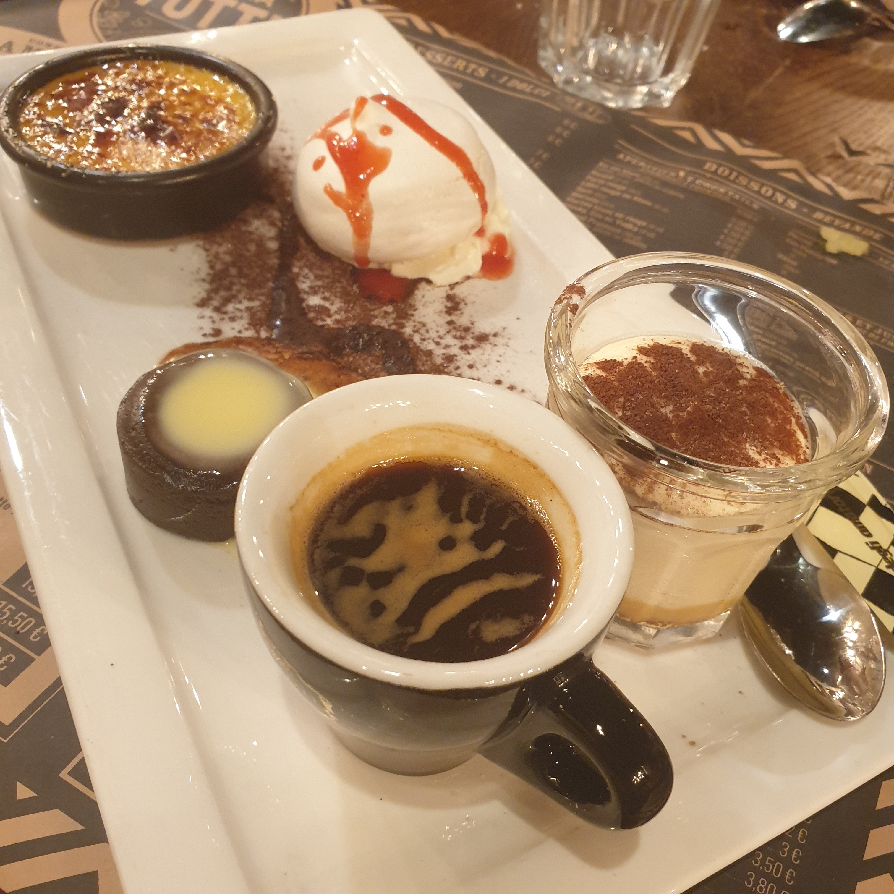 Un déjeuner avec menu du jour (entrée/plat/dessert) très copieux. Ambiance pas trop bruyante par contre service un peu long et oubli des cafés mais rien de bien méchant. Je préfère quand même le soir !