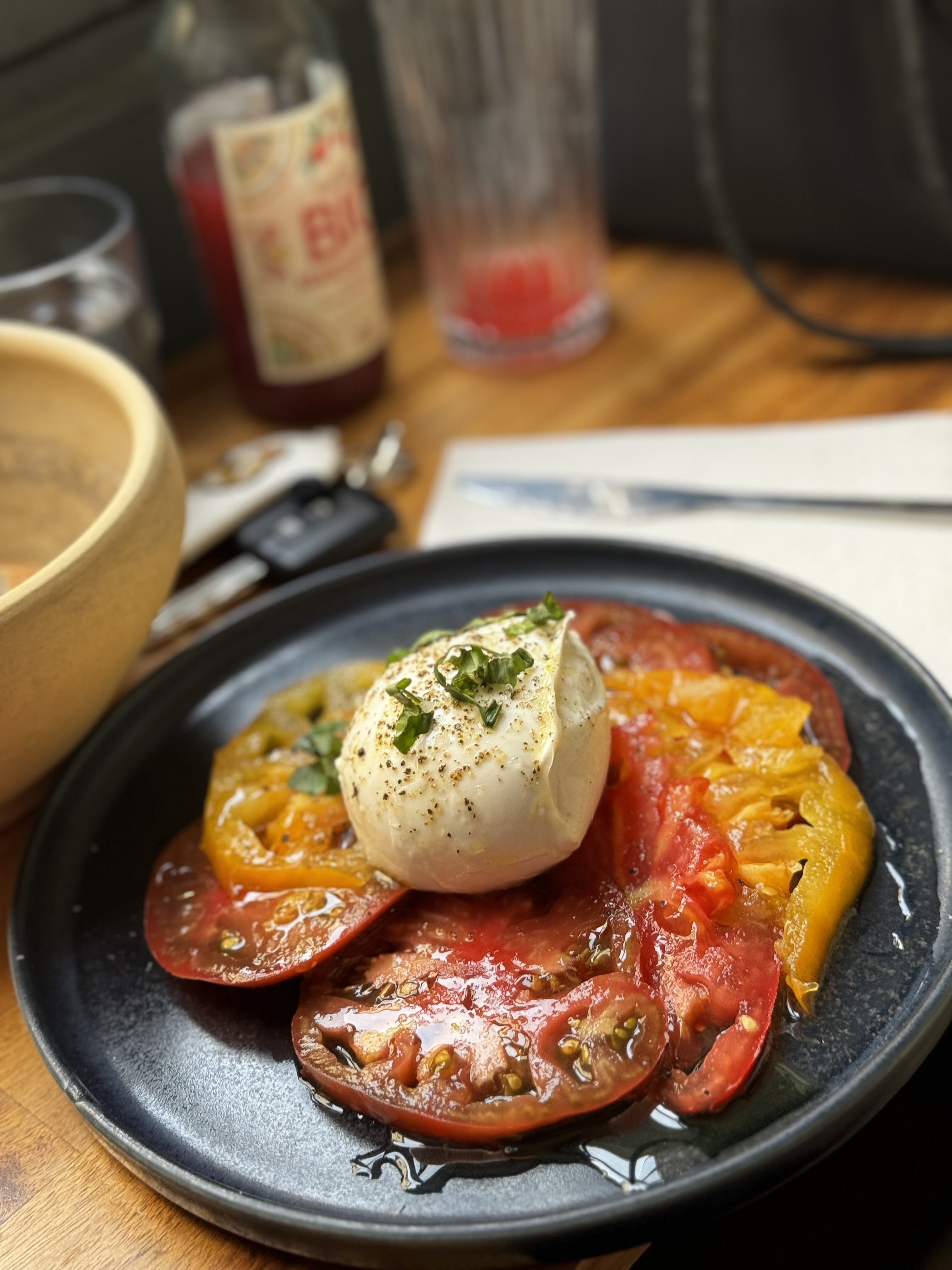 La salade de tomates mozarella... Miam! Avec une huile d’olive excellente !!!