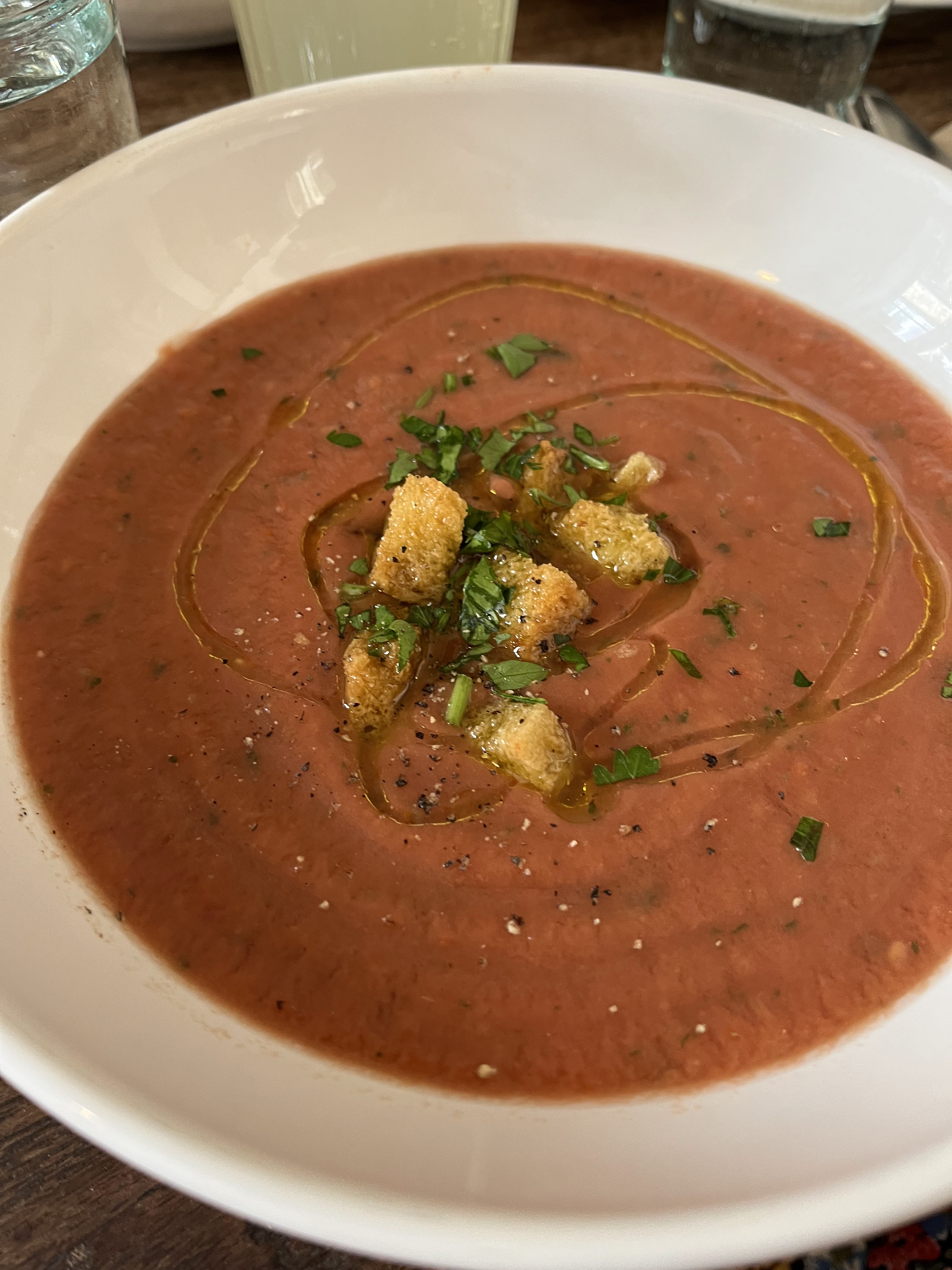 La nourriture était exquise. Très impressionné. Nous avons eu une soupe froide aux tomates dont j'hésitais mais c'était délicieux. Nos plats de pâtes étaient fantastiques, même si j'aurais ajouté un peu de viande si je l'avais su à l'avance. La focaccia est un incontournable !!