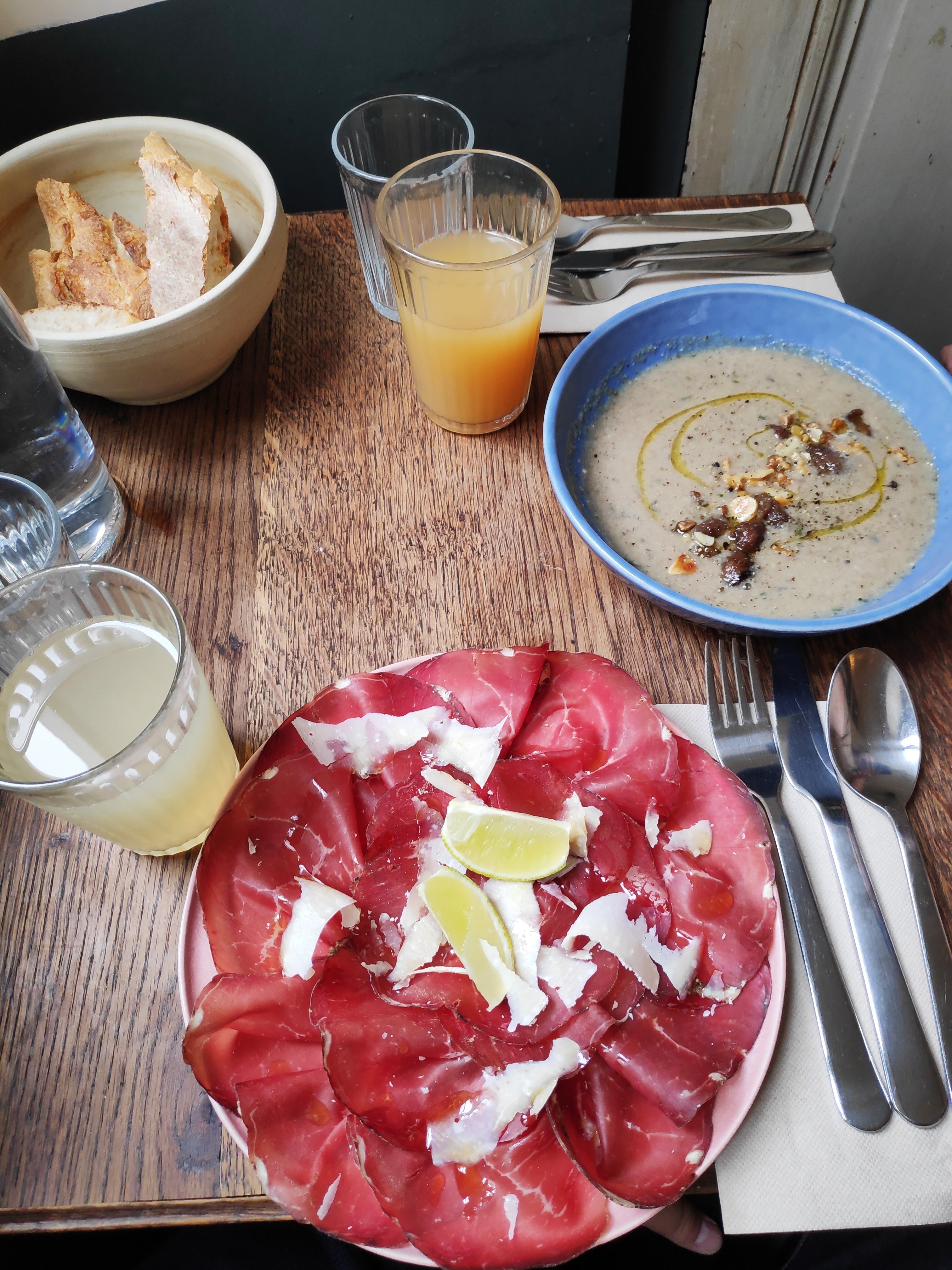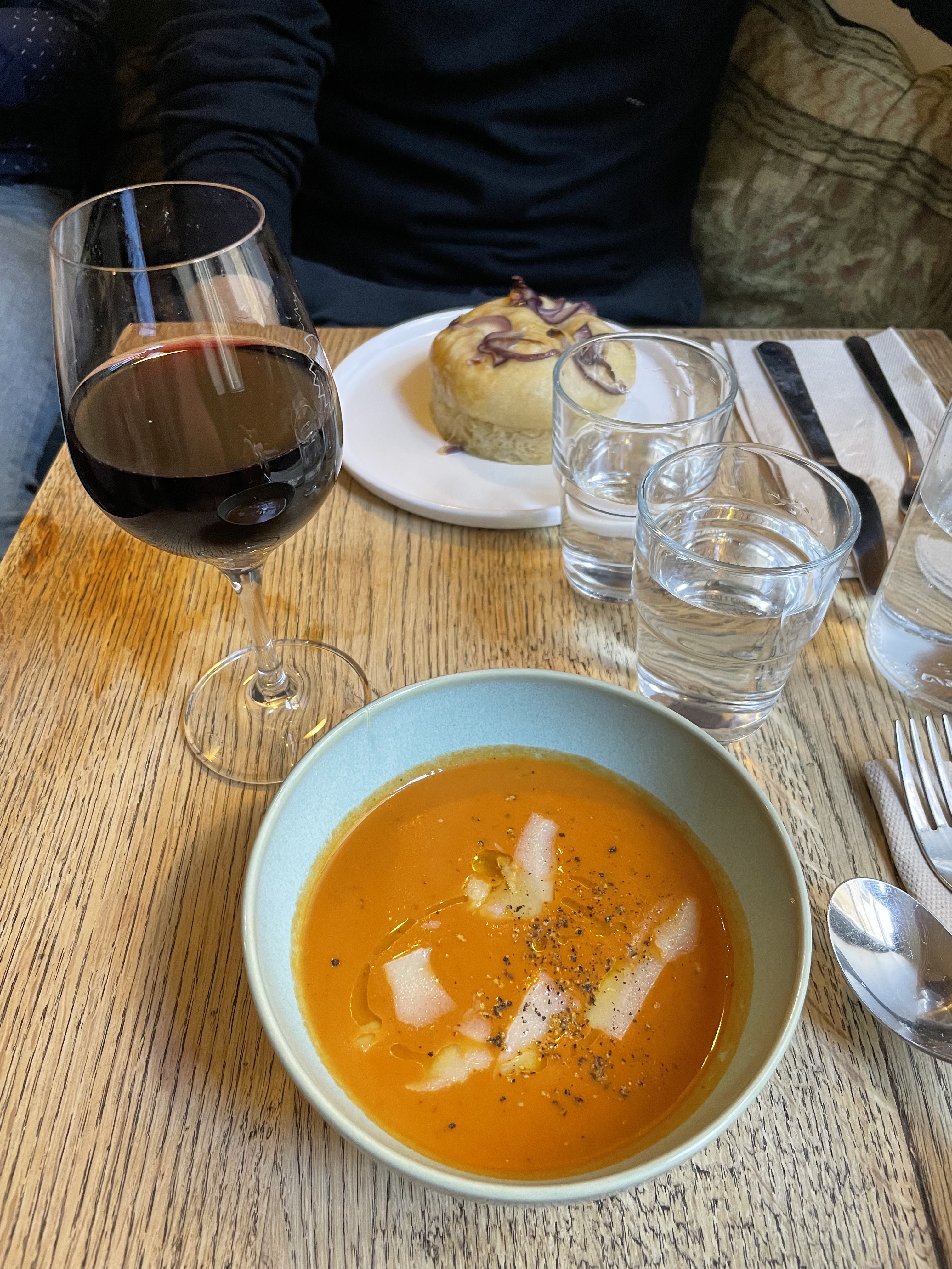 Venus la semaine dernière avec mon copain, sur recommandation de ce dernier. Nous avons été super bien accueillis par le serveur. La salle à l'arrière de la boutique (car il y a aussi une épicerie) est toute petite et charmante, haute de plafond et ambiance chaleureuse. On a commandé le velouté de carottes et la foccacia - les deux, délicieux. Ensuite deux plats de pâtes et que dire, les pâtes faites maison sont délicieuses! Il manquait un peu d'artichaut dans le pesto pour moi mais sinon le goût des pâtes était superbe. Pour finir un café et un tiramisu à deux. Nous nous sommes régalés, merci pour votre savoir-faire et votre service!