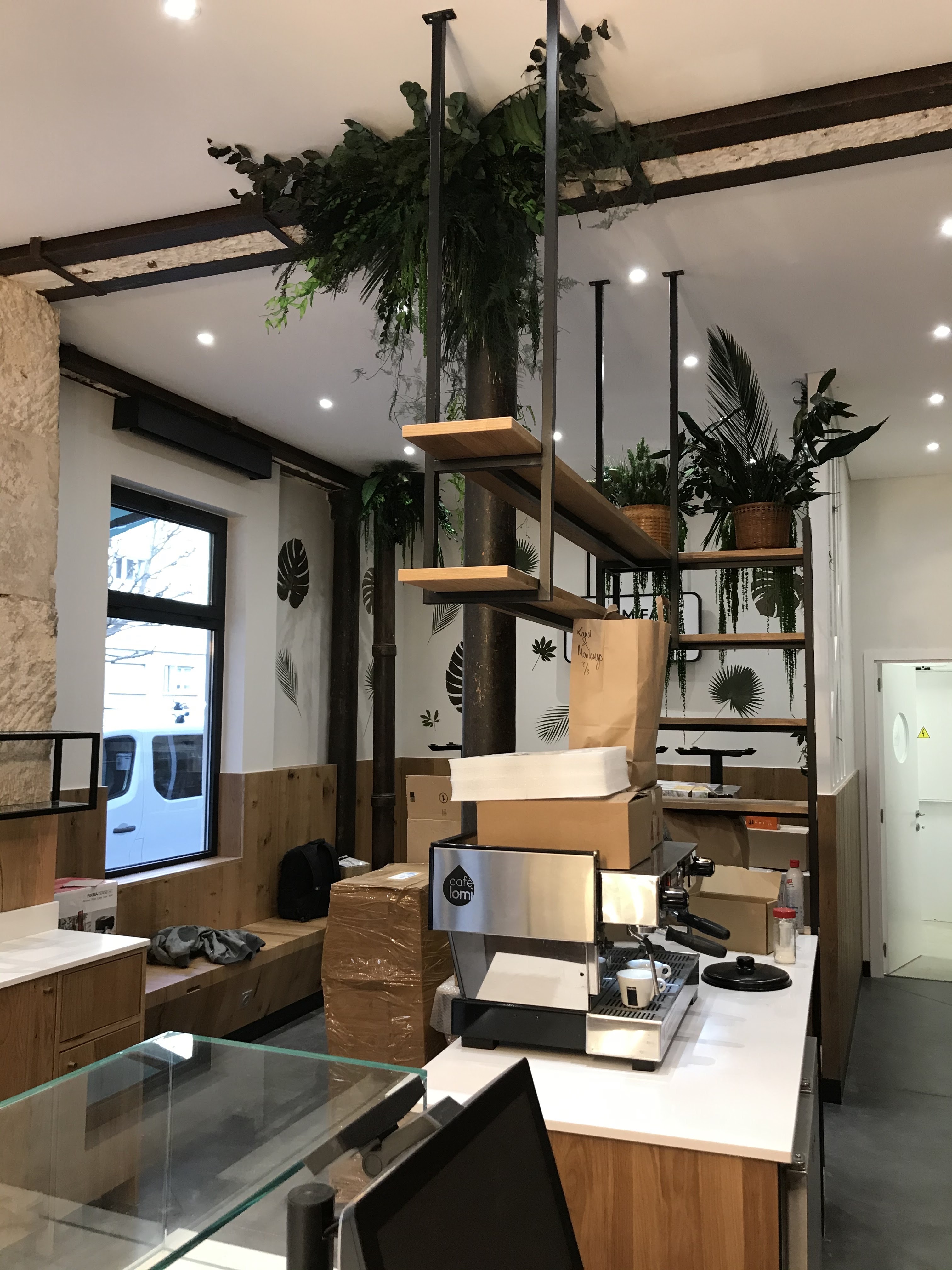 Vraiment très bien, les locaux sont modernes mais avec des touches rustiques. Prises USB et 220 partout pour les tables et des livres qualitatifs à disposition. Personnel souriant et serviable. Plats excellents mais quantité ne convenant pas à des rugbyman contrairement aux desserts gargantuesques.