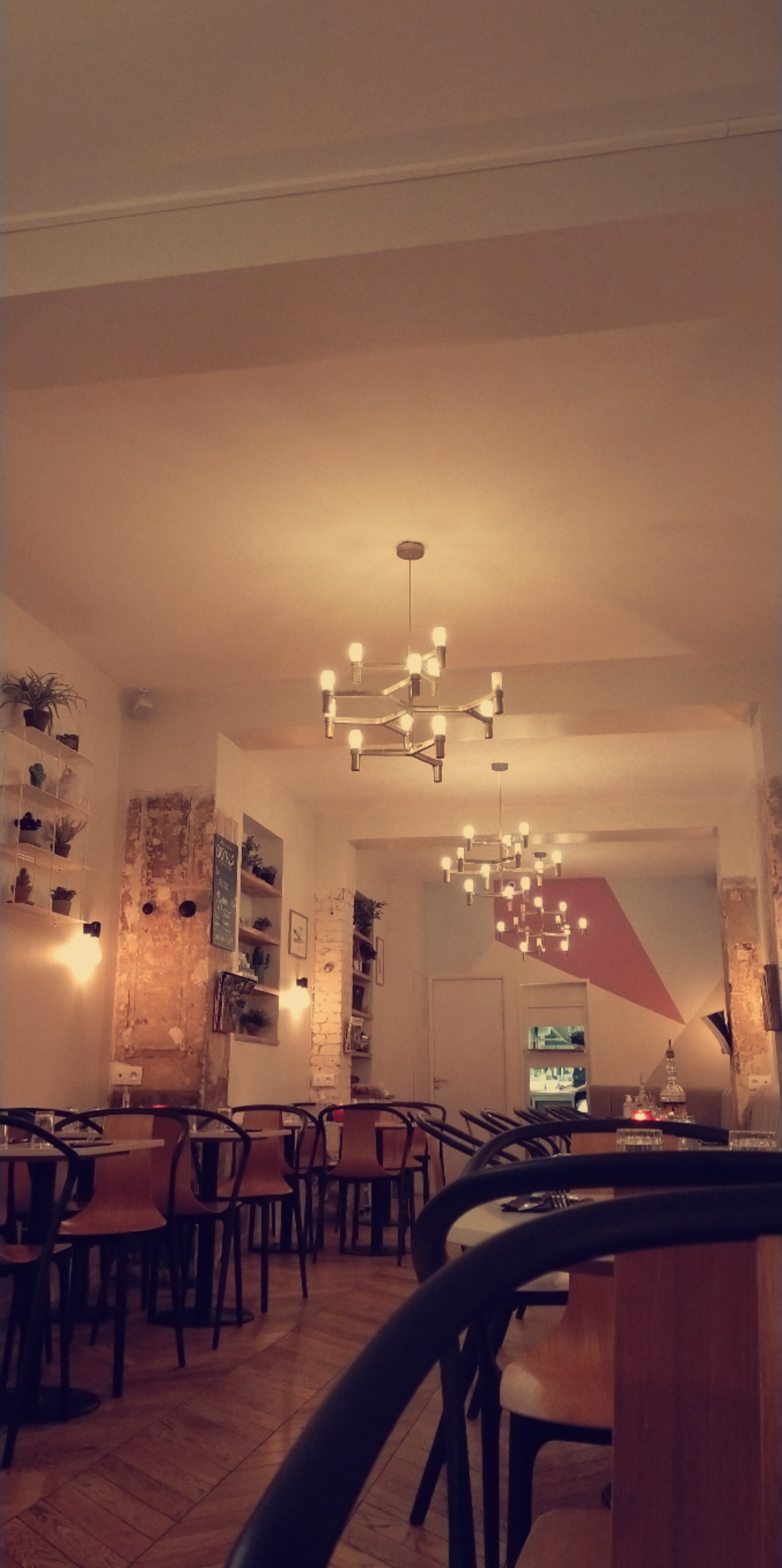 Que ce soit sur place ou à emporter la qualité et la sympathie sont au rdv ! Les vins sont toujours très bons également (sans parler du Spritz !) Des options végétariennes inventives qui font plaisir. J'ai généralement peu faim pour un dessert après les plats mais ils sont toujours très bons également. Petit bonus : j'adore le design des toilettes ^^