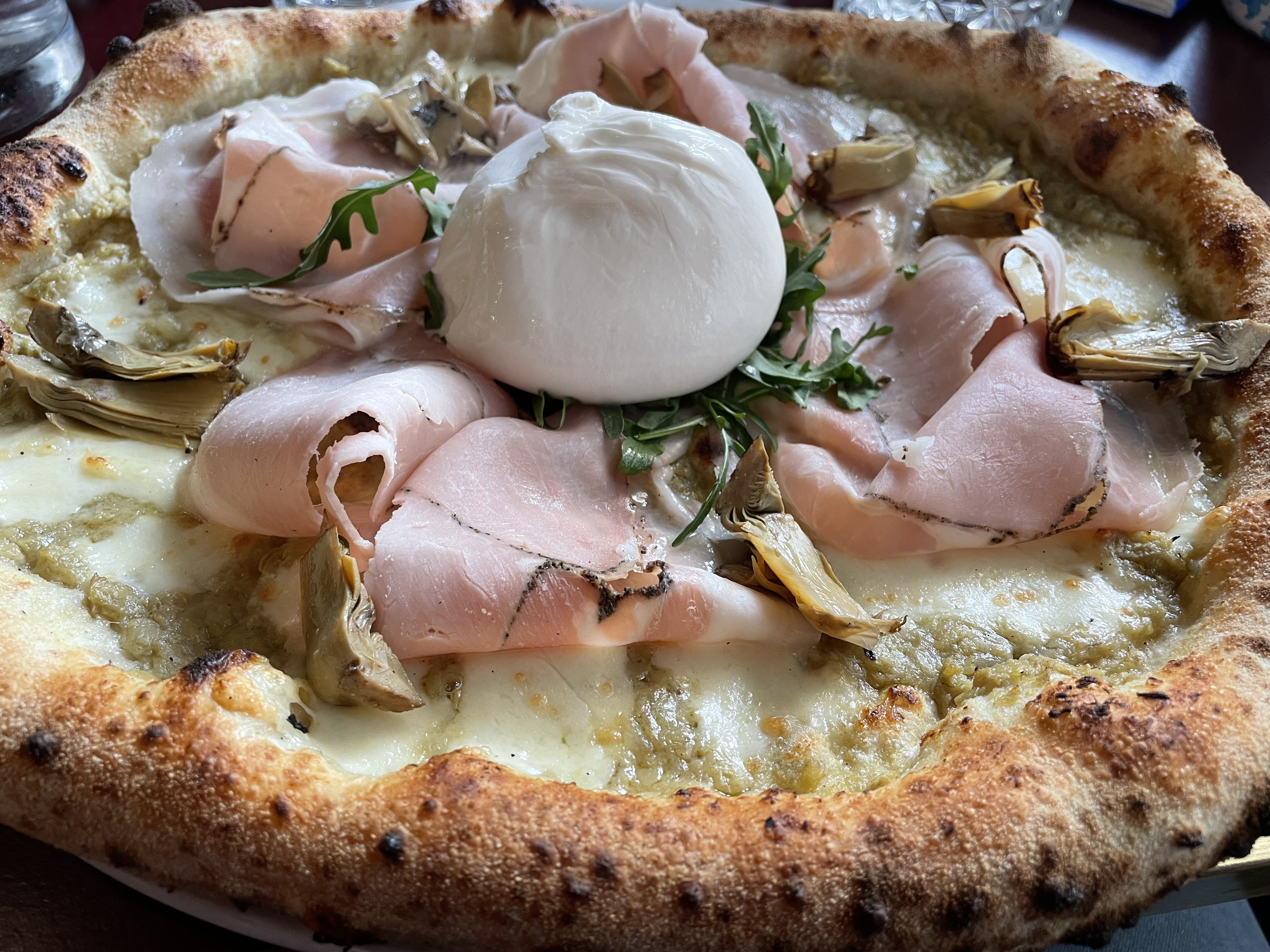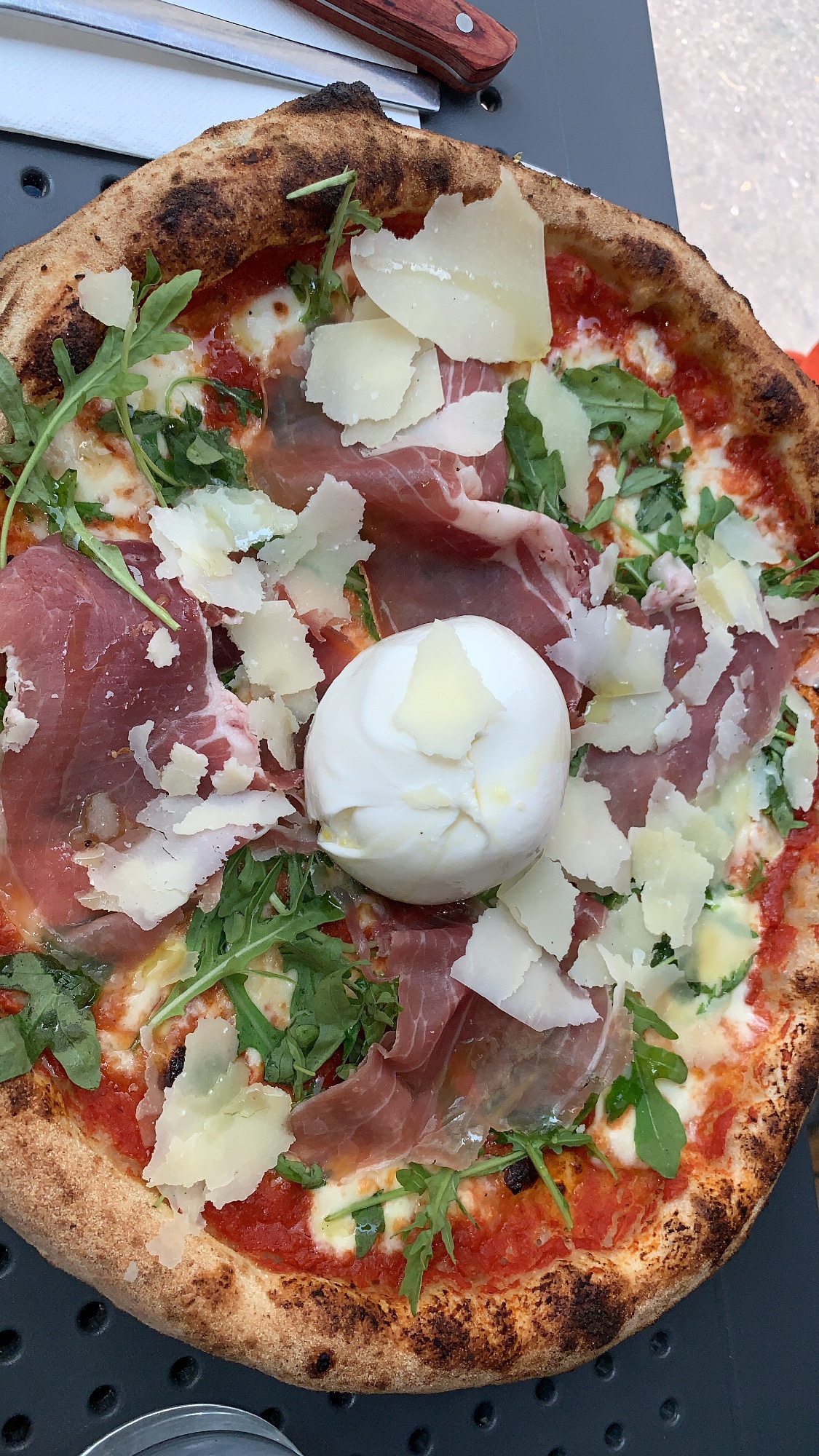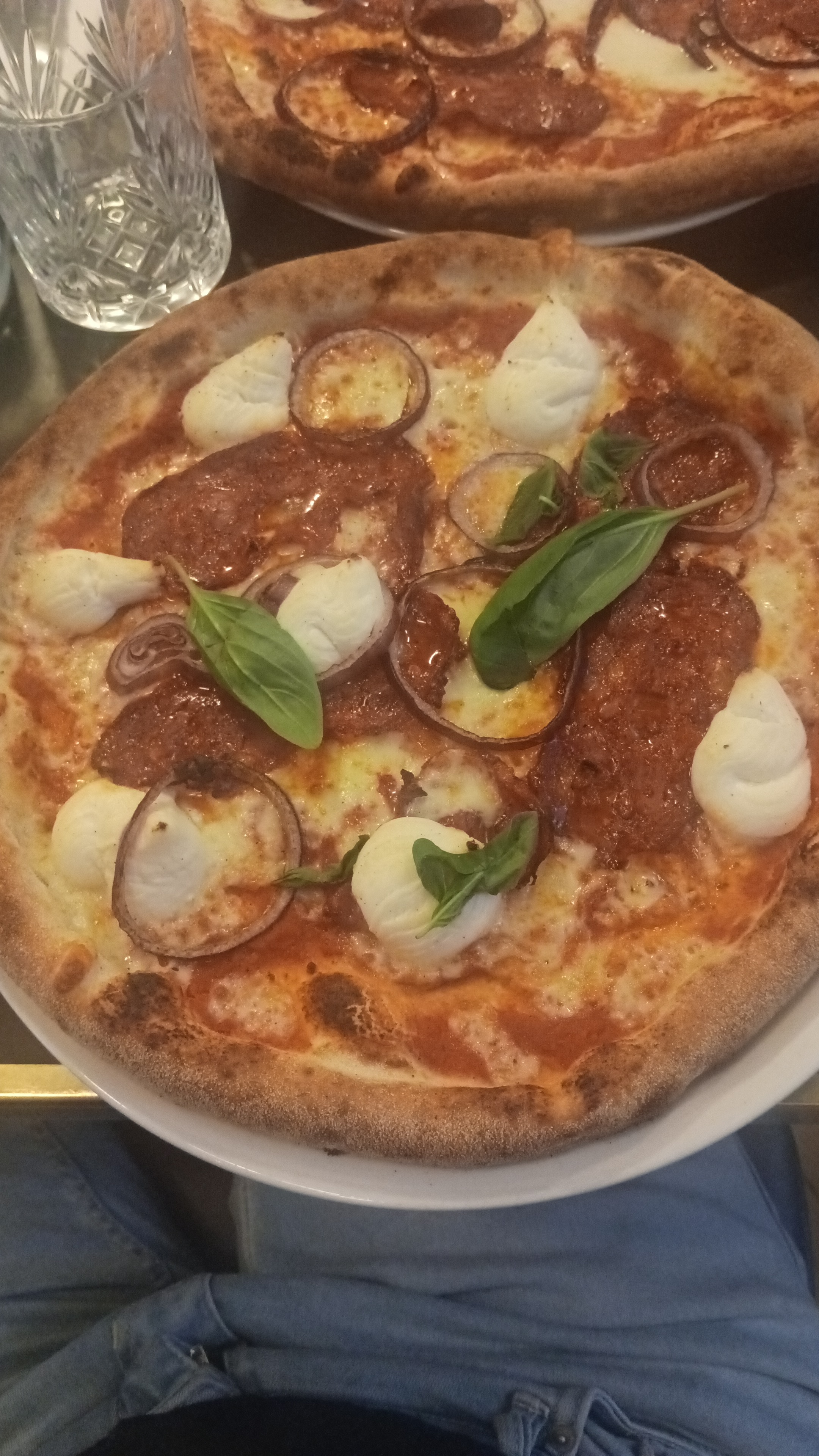 Une pizza absolument delicieuse! Une pâte et une garniture à tomber. Je vous conseille la mortadella stella... une fête pour les papilles. Trop bon!