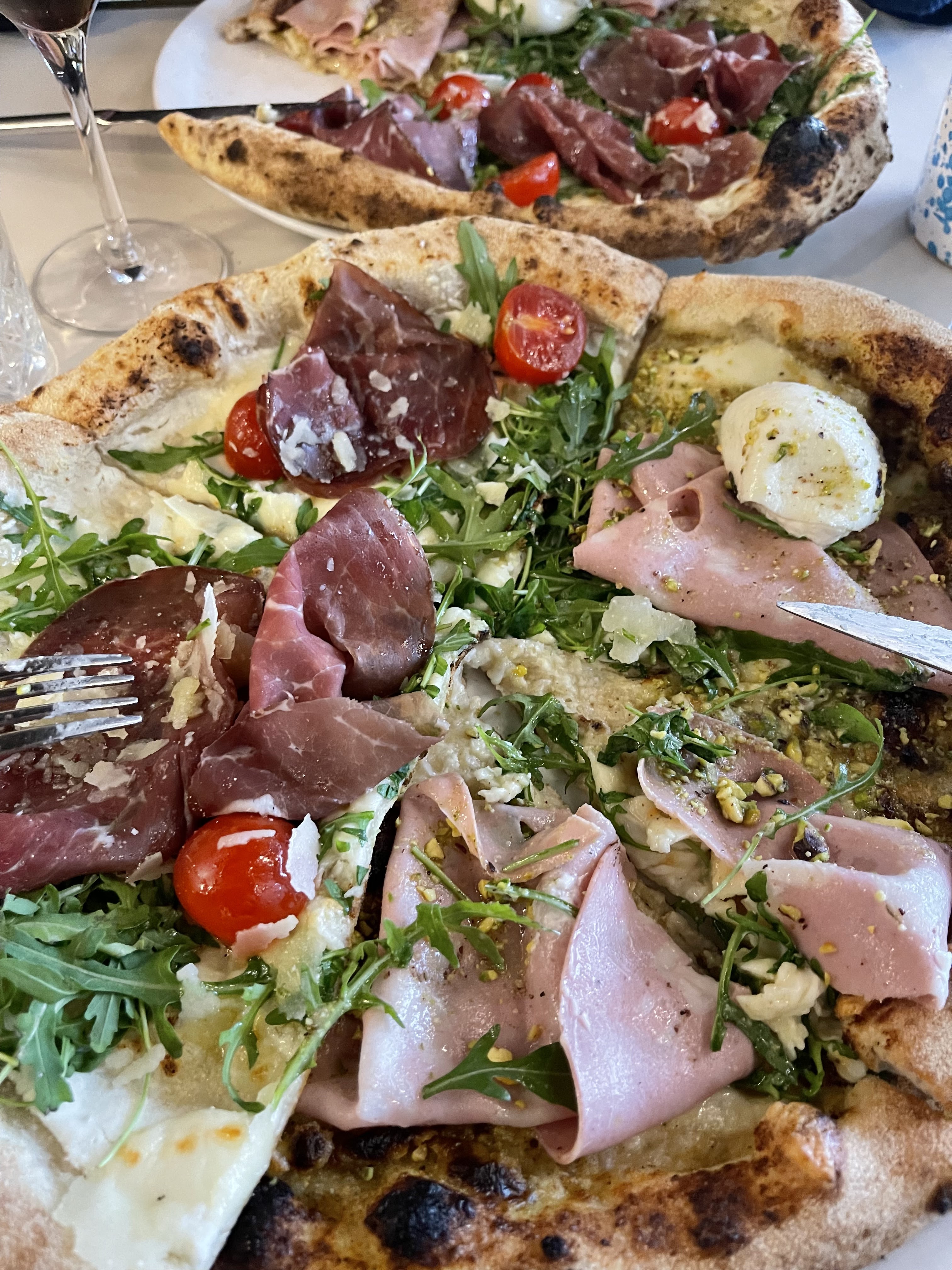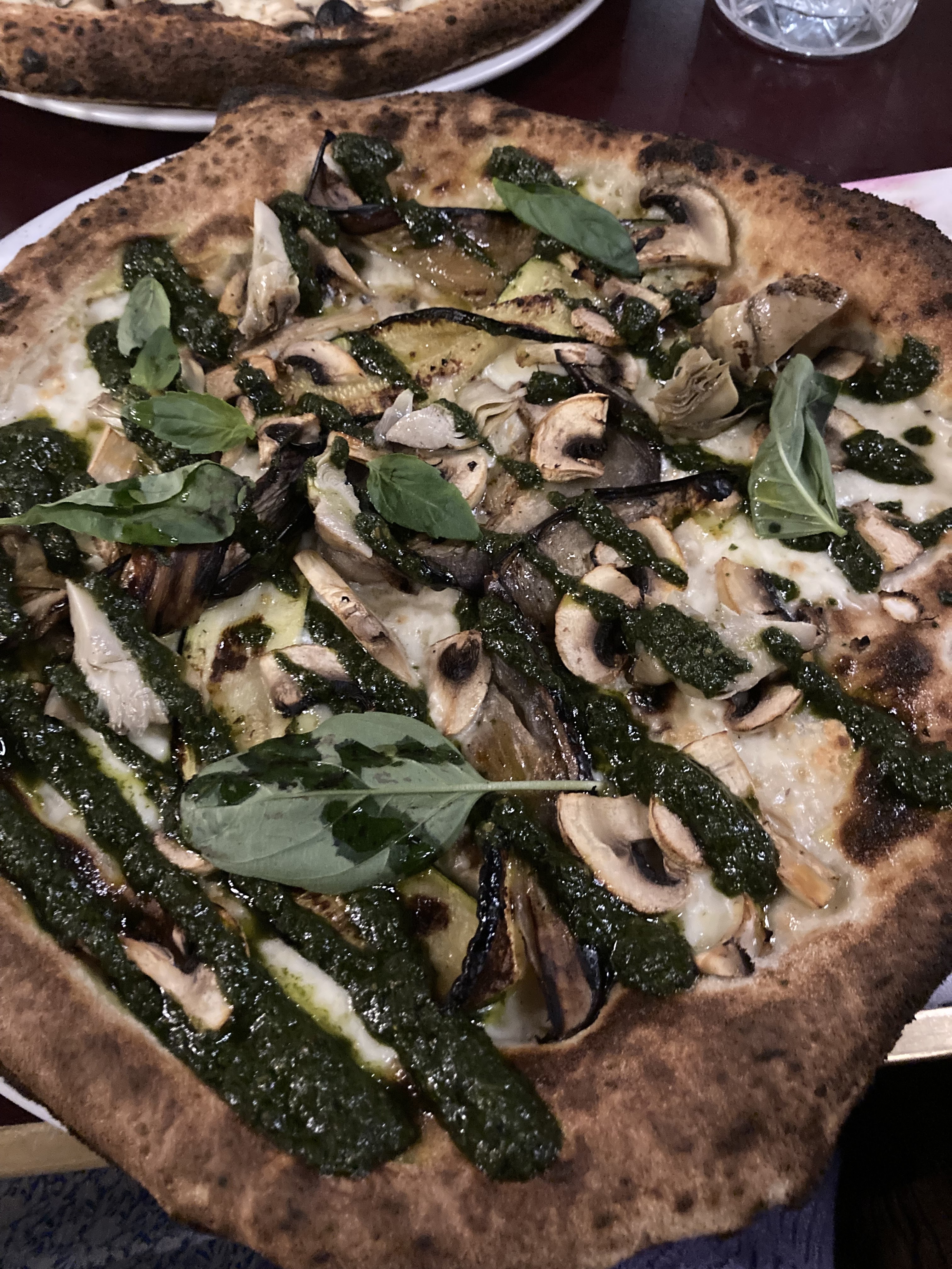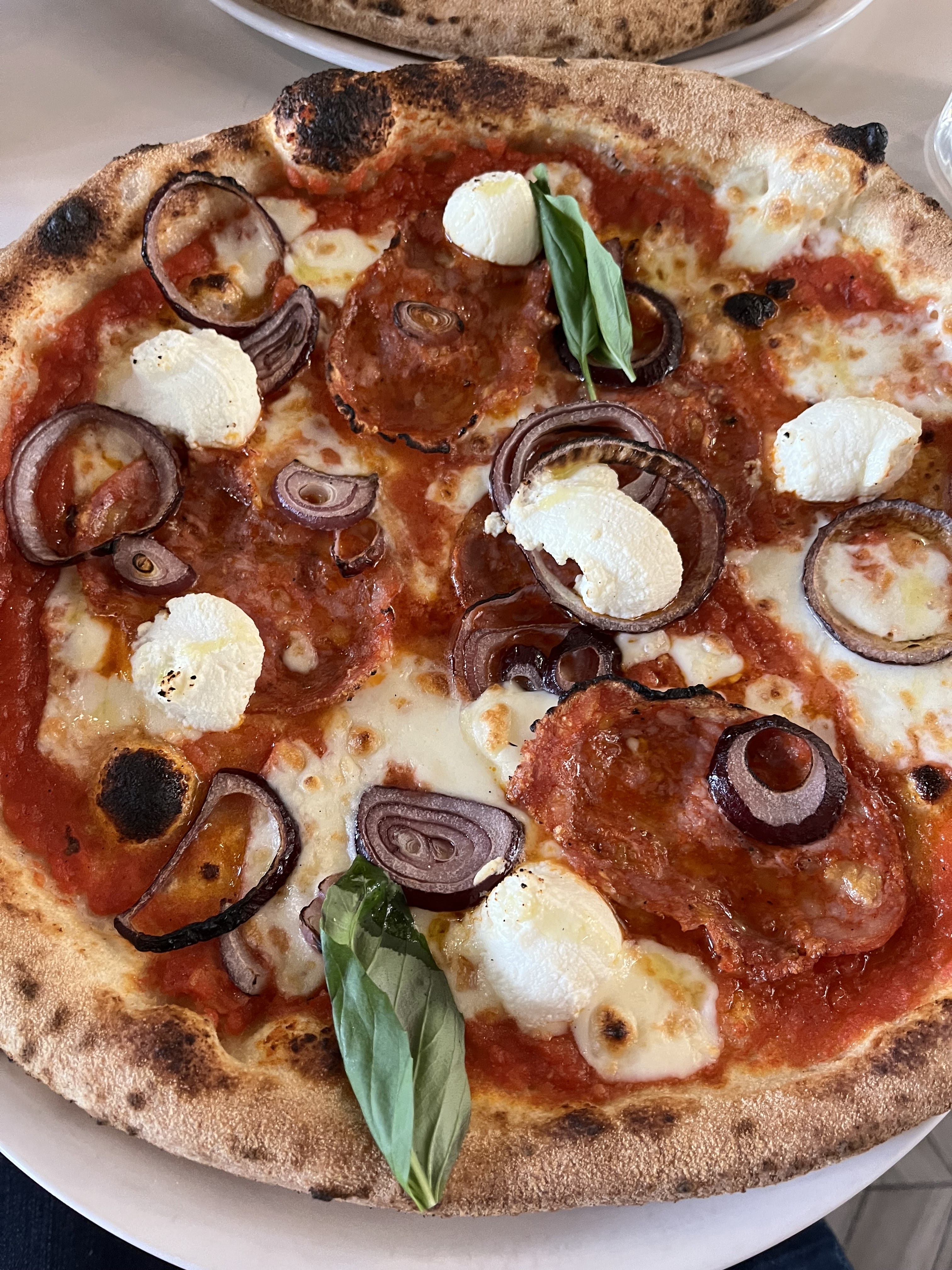 Une pizza absolument delicieuse! Une pâte et une garniture à tomber. Je vous conseille la mortadella stella... une fête pour les papilles. Trop bon!