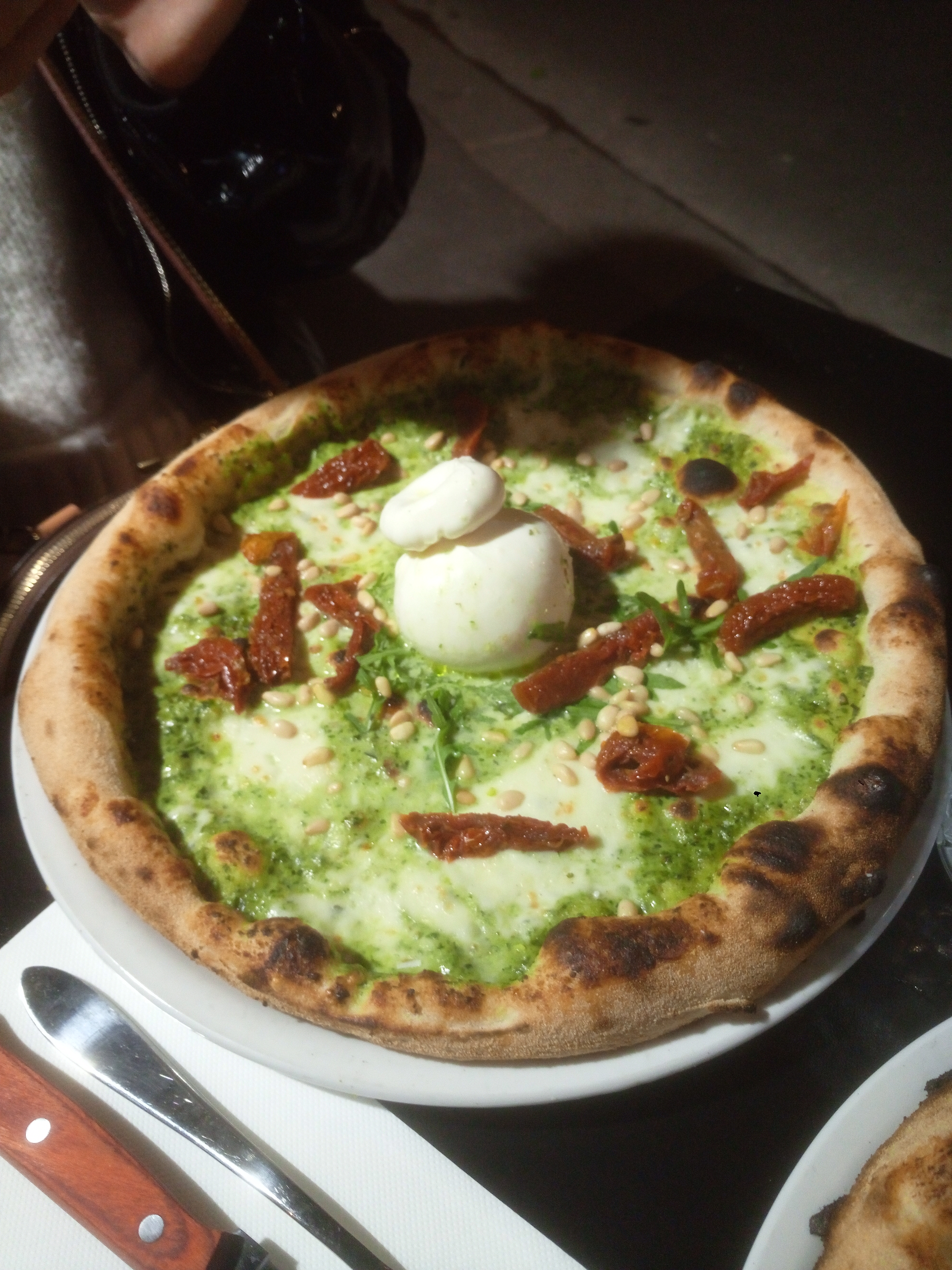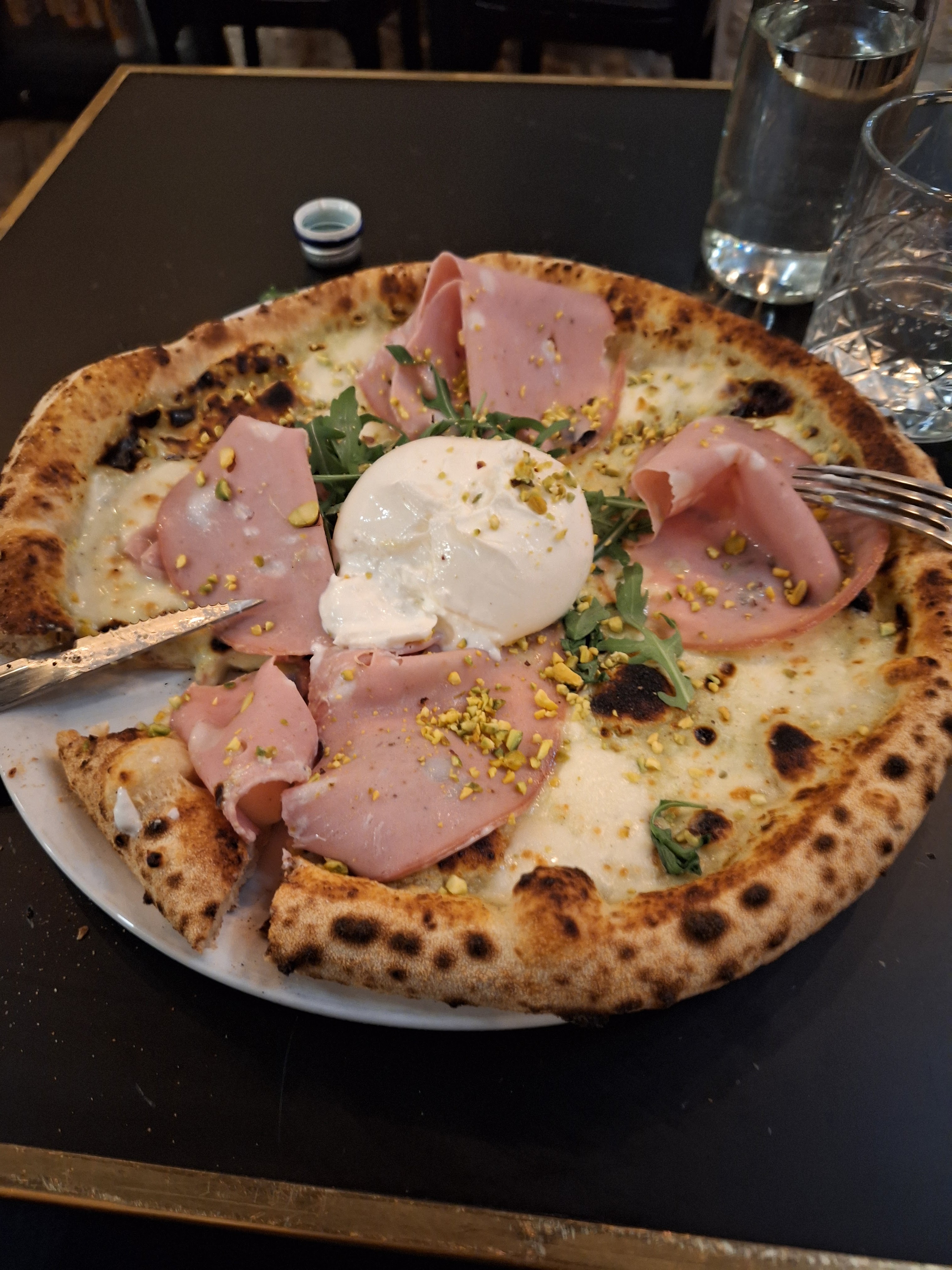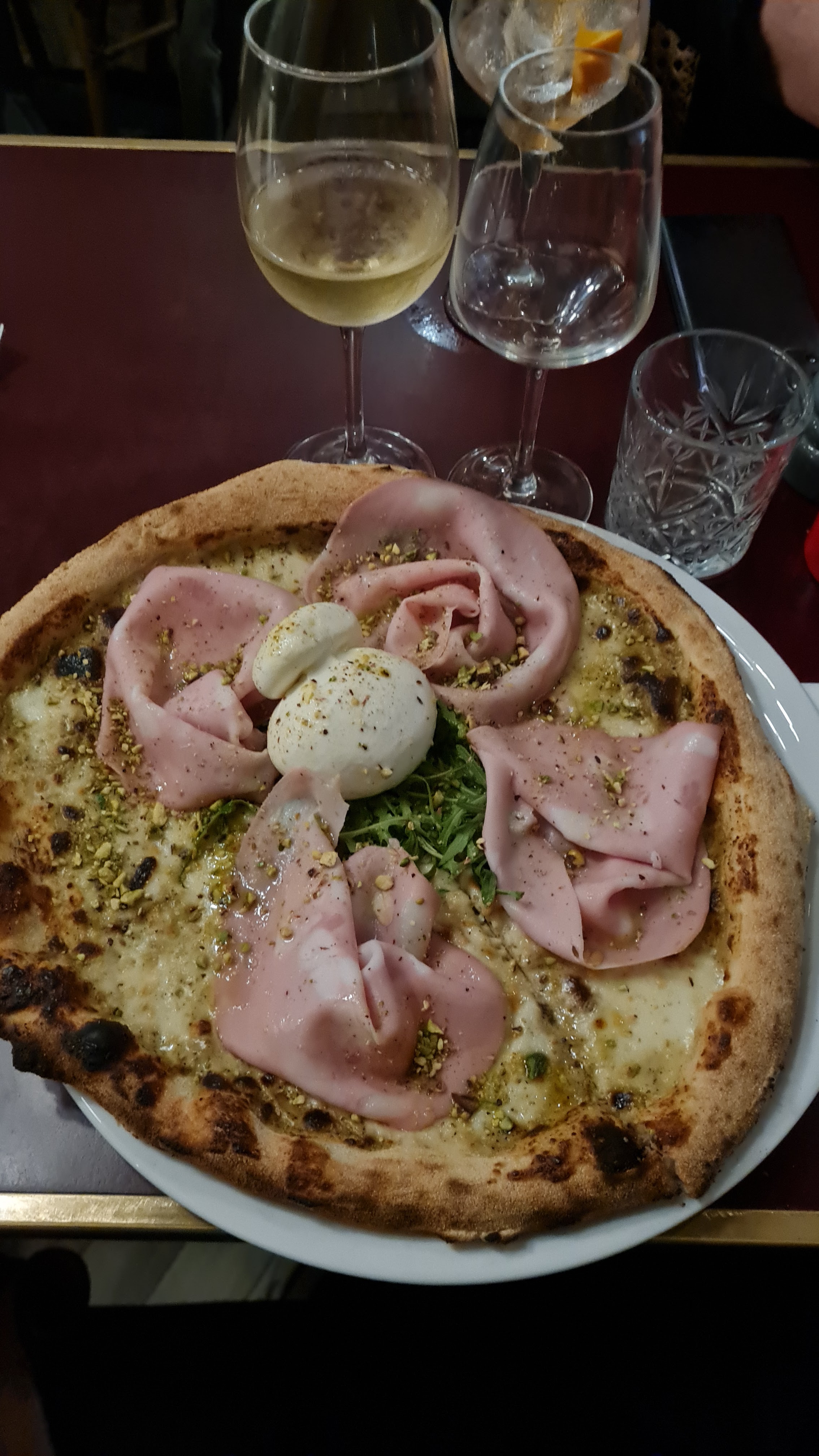Malheureusement c’était une déception pour mes amies et moi. La pâte à pizza était le principal problème (dure et n’avait pas vraiment de goût), les ingrédients (mortadella, burrata et pistache) étaient corrects.