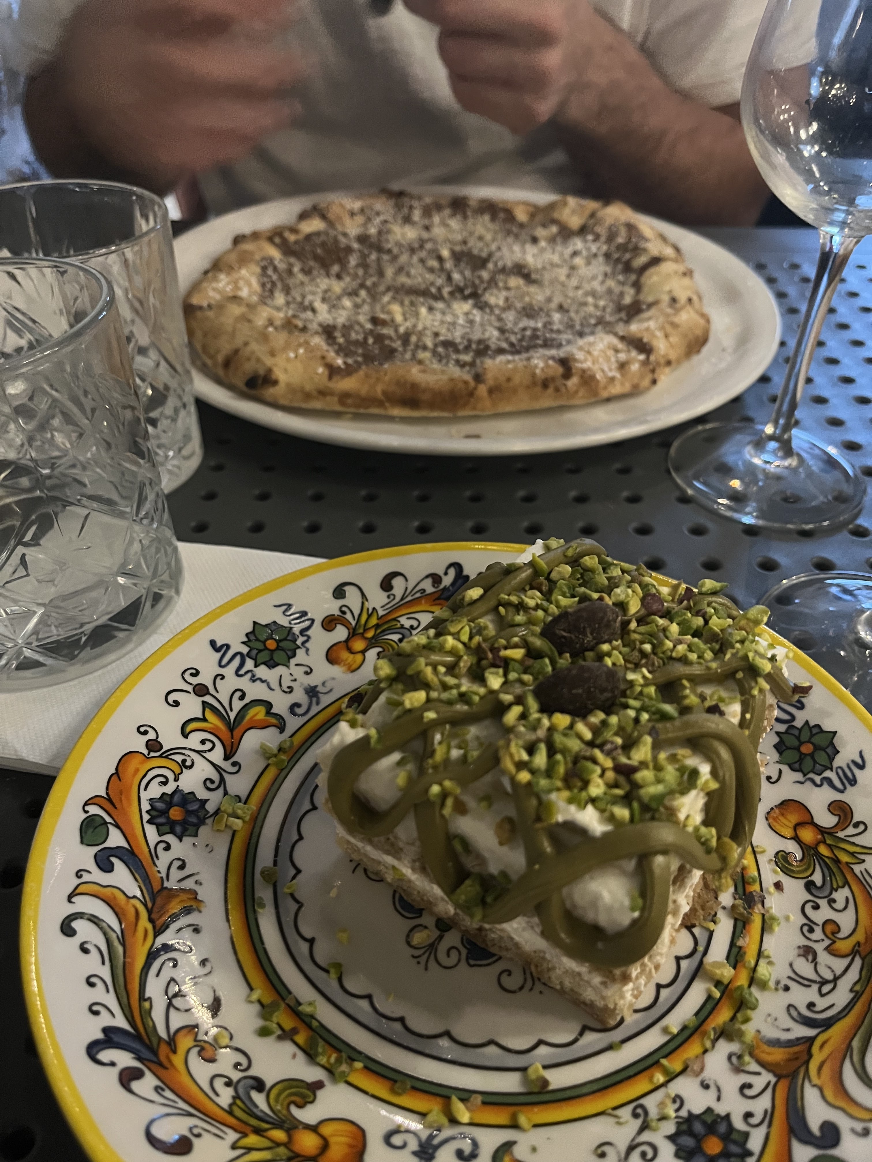 Les pizzas sont très bonnes et j’ai eu un gros coup de cœur pour le tiramisu pistache 😍
