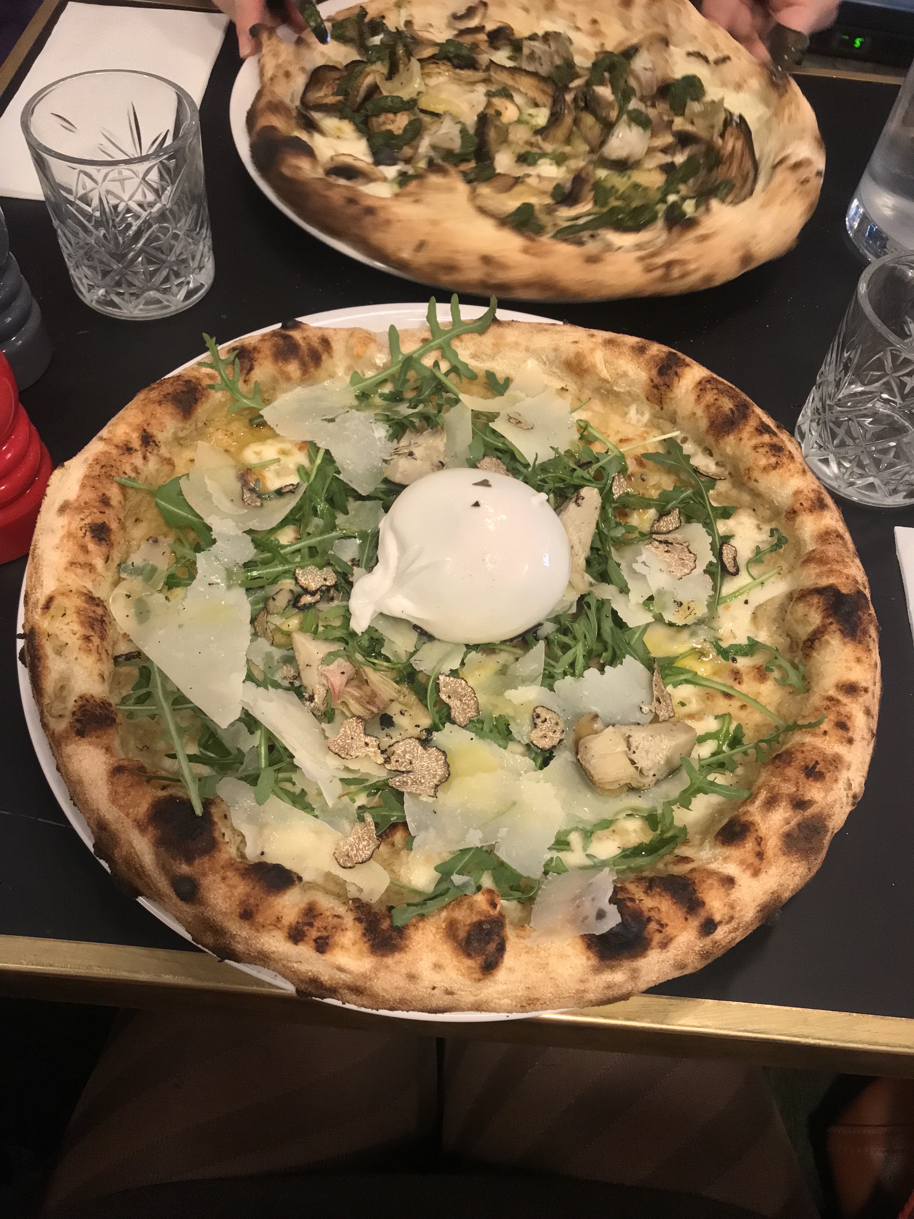 La pizza est bonne mais Je m’attendais à mieux, en effet la pizza à la truffe et cèpe n’a quasiment aucune saveur de truffe malheureusement. Par contre la pâte est excellente et croustillante. Ce sont des pizzas banales avec une pâte croustillante. Par contre ma déception fut le tiramisu pistache, c’est une juste un tiramisu sur lequel on ajoute de la crème de pistache et des pistaches. Les biscuits sont à peine imbibés de café, la crème au mascarpone est trop ferme et est pas assez fondante quand à la crème de pistache dessus elle juste sucrée. J’ai juste eu l’impression de manger un gâteau au sucre. J’aurai aimé une vrai recette avec de la pistache incorporée dans la crème peut être ou autre chose de plus rechercher. Sinon le personnel est vraiment gentil et serviable. Le restaurant est très petit pas très intime mais ça permet de faire connaissance avec ses voisins de table.