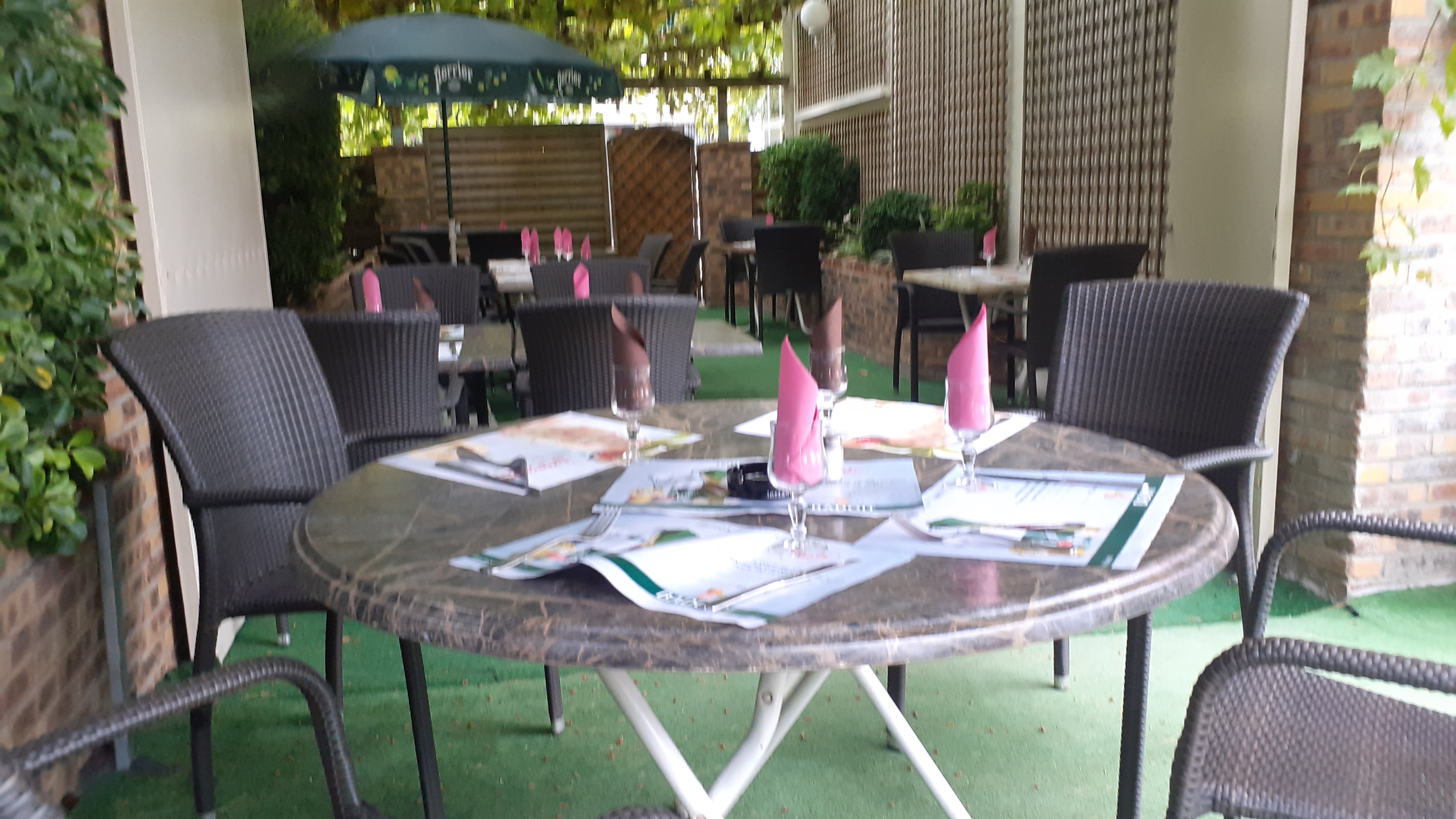 Très bon restaurant avec une terrasse très grandes et beaucoup de calme des arbustre caché les routes et trottoirs donc pas de vie à vie et mon plat a point et assez pour caler mon estomac. Il y a également un services rapide pour les travailleurs le midi. Merci