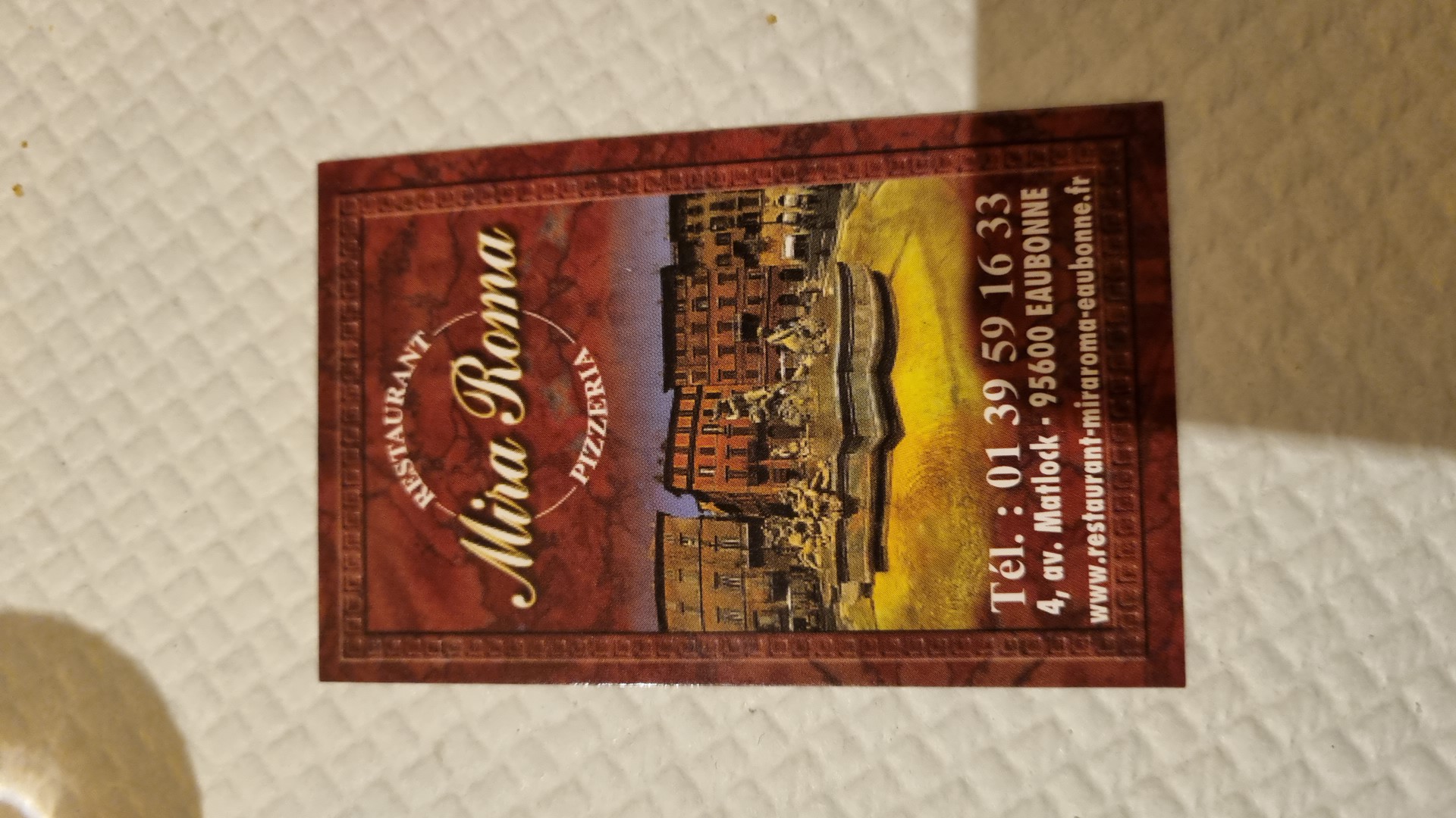 SUPER RESTAURANT ITALIEN!!!!!! Cela fait plusieurs fois que je mange dans ce restaurant, sur place ou à emporter, les pizzas sont délicieuses. Ayant fait le tour de plusieurs pizzerias dans les environs, je trouve que Mira Roma est de loin la meilleure, pâtes fines cuites au feu de bois, et surtout des ingrédients frais. De plus un accueil très chaleureux, le patron en cuisine et sa femme en salle, une très bonne cohésion et un sourire toujours au rdv. En bref, je conseille ce restaurant familial pour manger vos meilleures pizzas. (Je précise que je suis un client et non un ami payé par celui-ci, donc jugement neutre et équitable pas comme bcp d'autre mauvaise langue qui publie pour faire du tors) Bonne app à tous Benoit