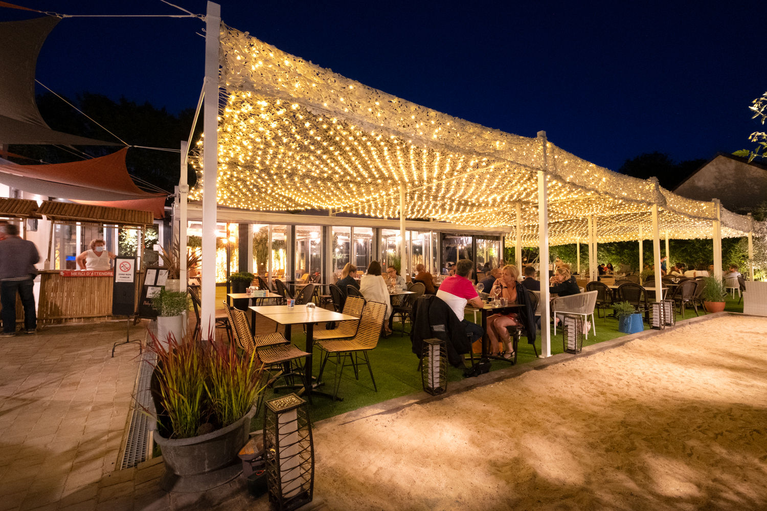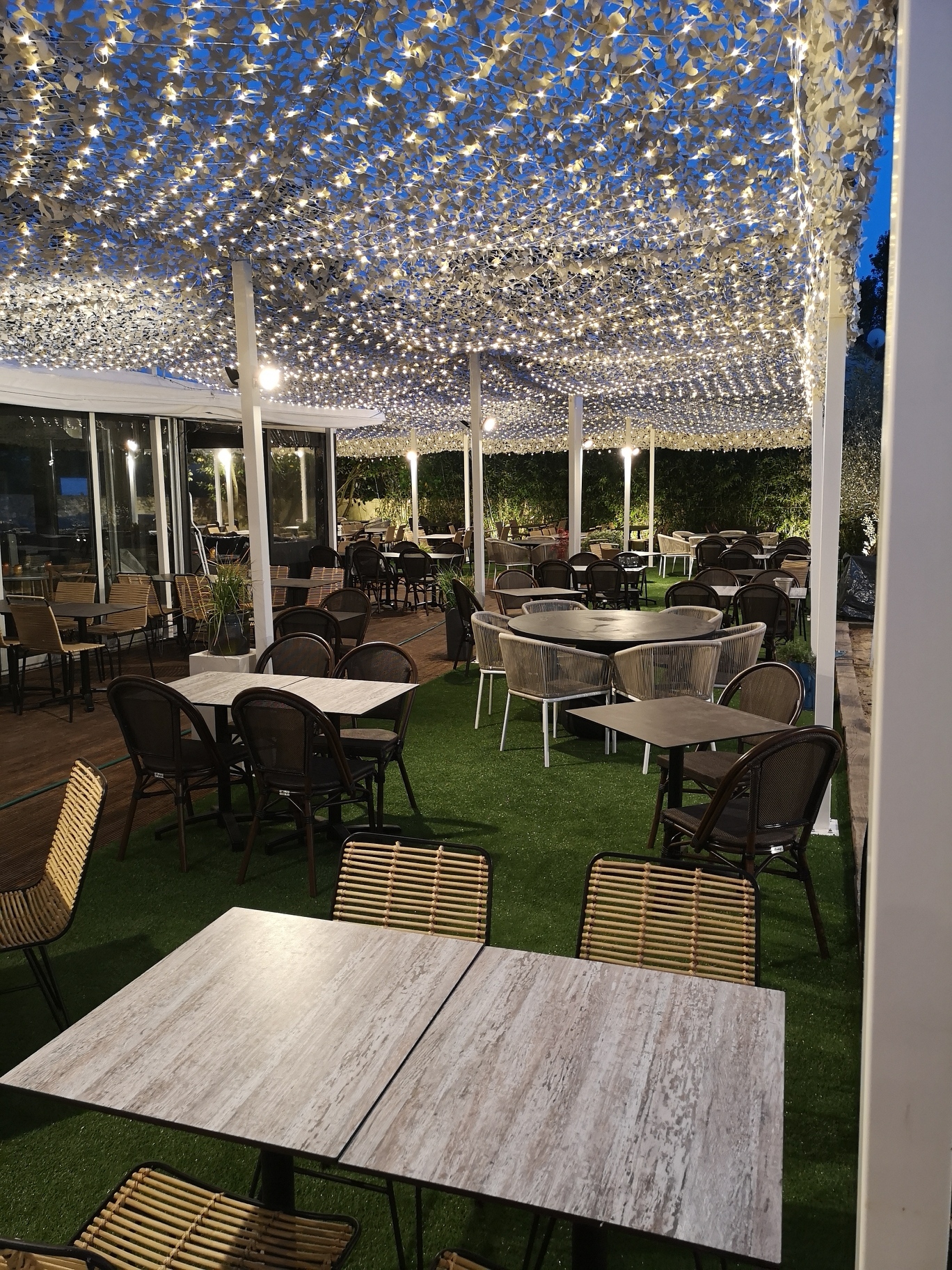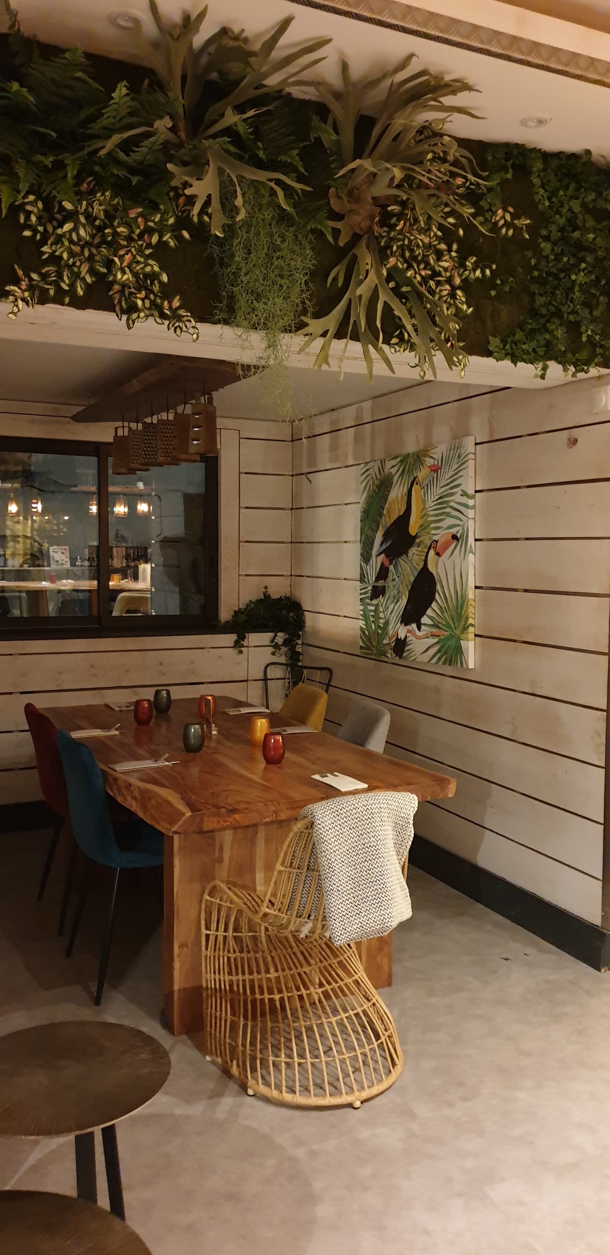 Bel endroit où la déco nous permet d'imaginer que nous sommes à l'extérieur à l'intérieur. Les mets sont excellents ainsi que le service. les serveurs sont très sympathiques. Je recommande +++