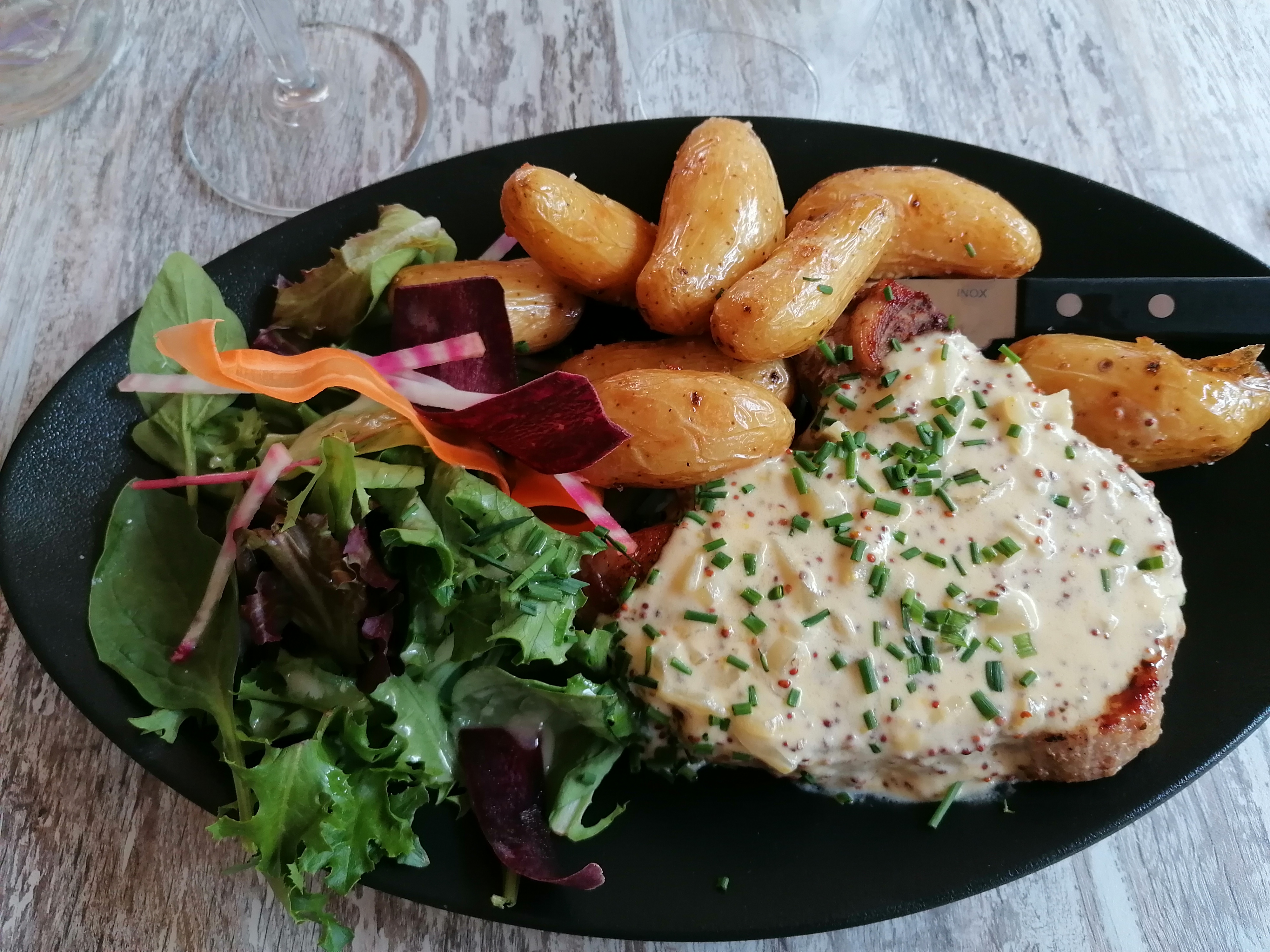 Bonne table, choix varié, cadre très agréable, éviter l'eau gazeuse maison, elle n'est pas très gazeuse, mais pour le reste très bien, yc le service et le personnel très sympathique, un poil cher vu l'emplacement, mais la qualité est au rdv