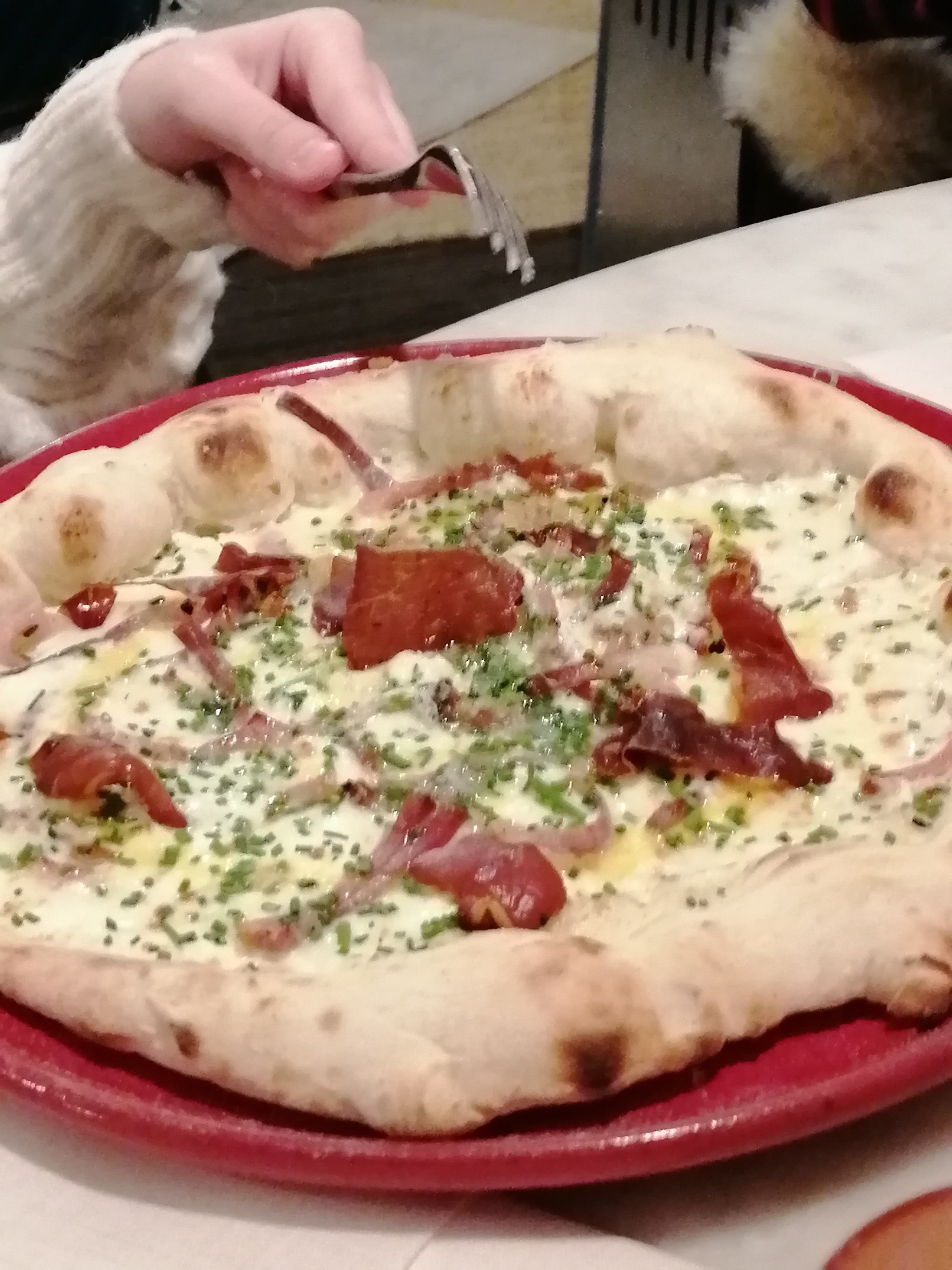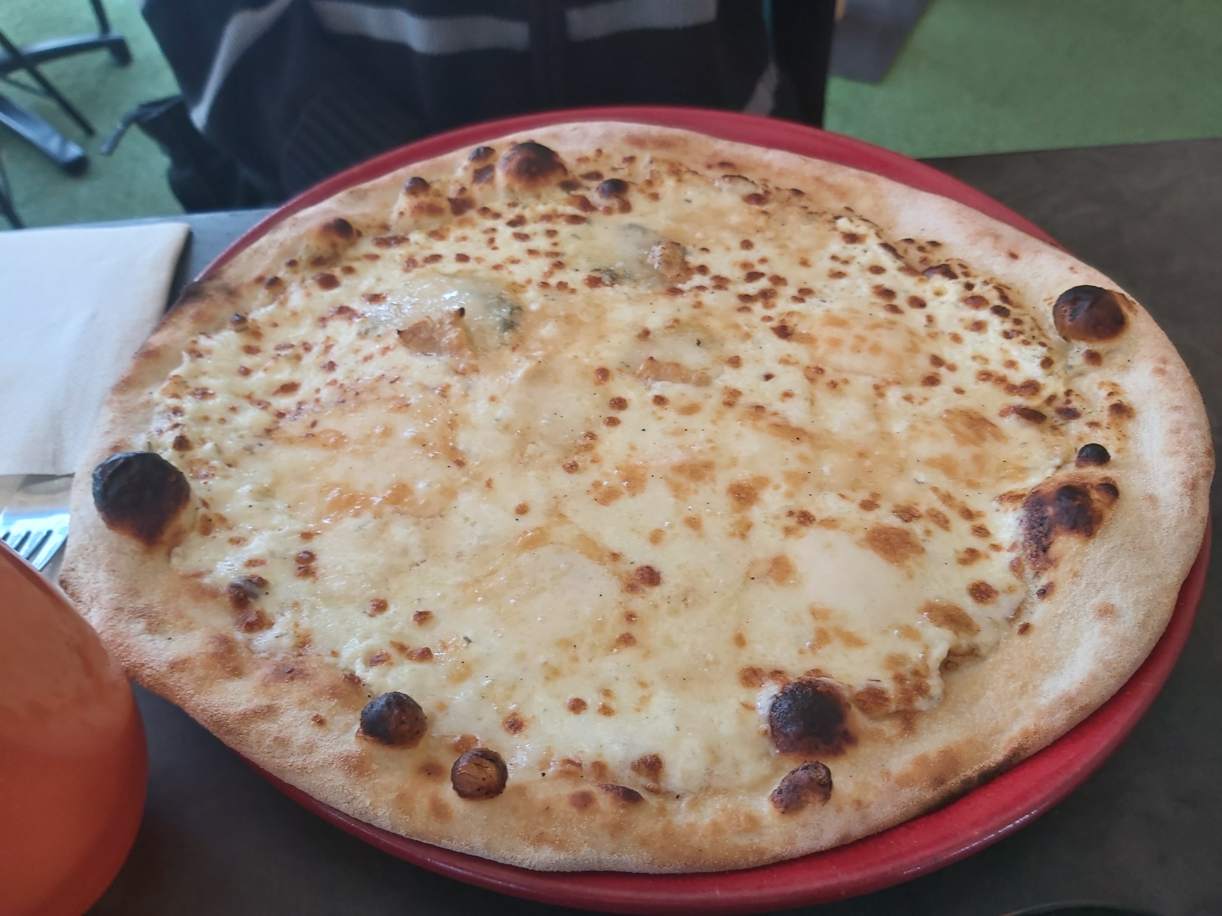 Endroit très sympa. C'était notre deuxième dîner dans ce restaurant. La première fois c'était top. Puis hier soir 4 personnes sur trois non pas fini voir du mal à finir leur assiette. Pizza carbonara avec une pâte en béton ainsi que la 4 fromages, dès que celle-ci tiédie. Pâtes speck insignifiante et sans goût.Tres déçu ! Mais service très bien...