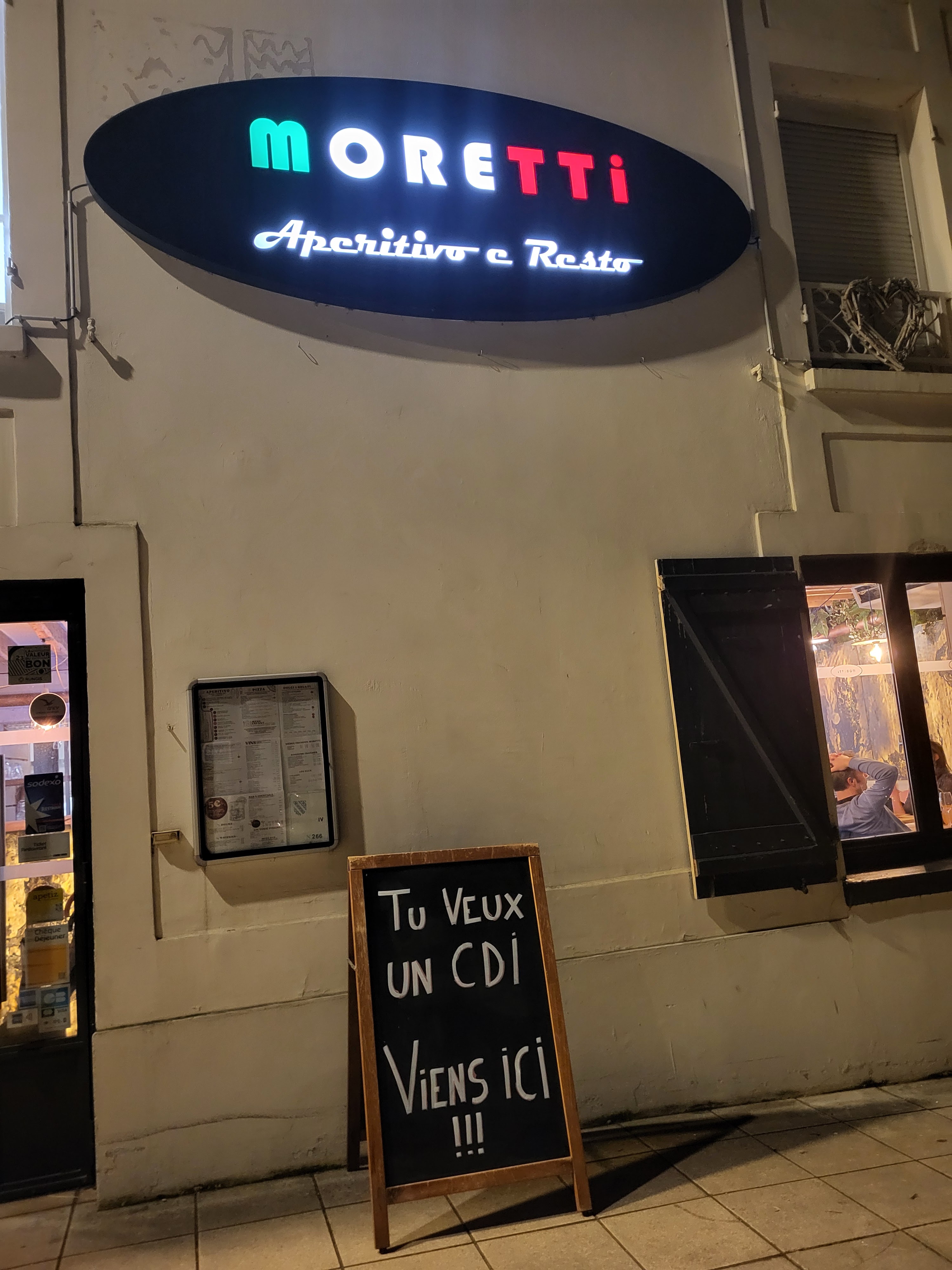 5eme fois que l’on vient manger chez Moretti et nous sommes toujours conquis. Une cuisine de qualité et une serveuse adorable, de très bon conseil. Que ce soit une soirée en amoureux ou un repas en famille nous sommes toujours très bien accueillis. Nous reviendront pour sur!