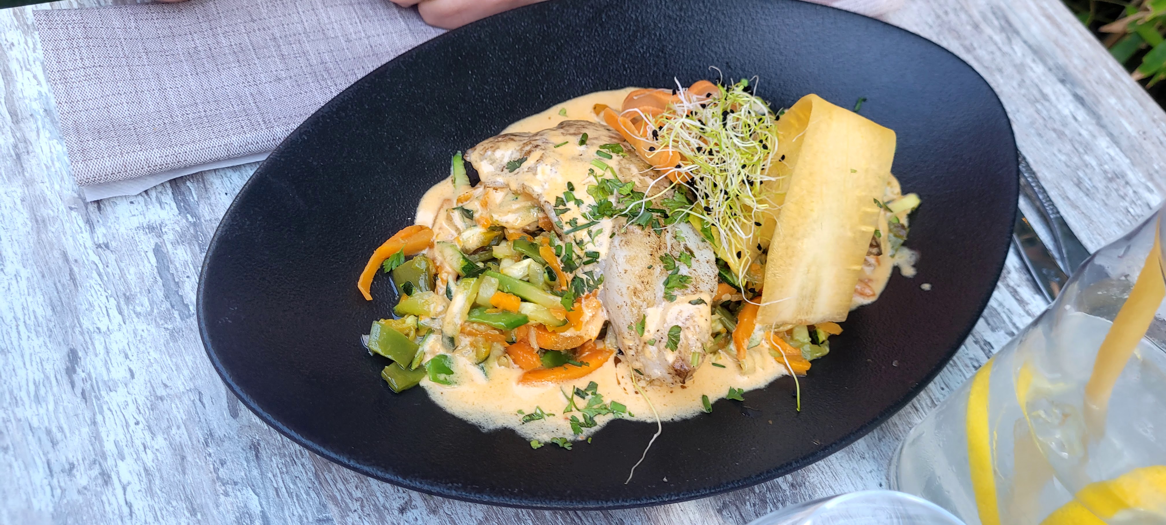 Endroit très sympa, accueil et service parfait ! On a bien mangé, c'était très bon ! Terrasse magnifique, l'ambiance est apaisante côté jardin 👌 Je recommande bien évidemment 😉