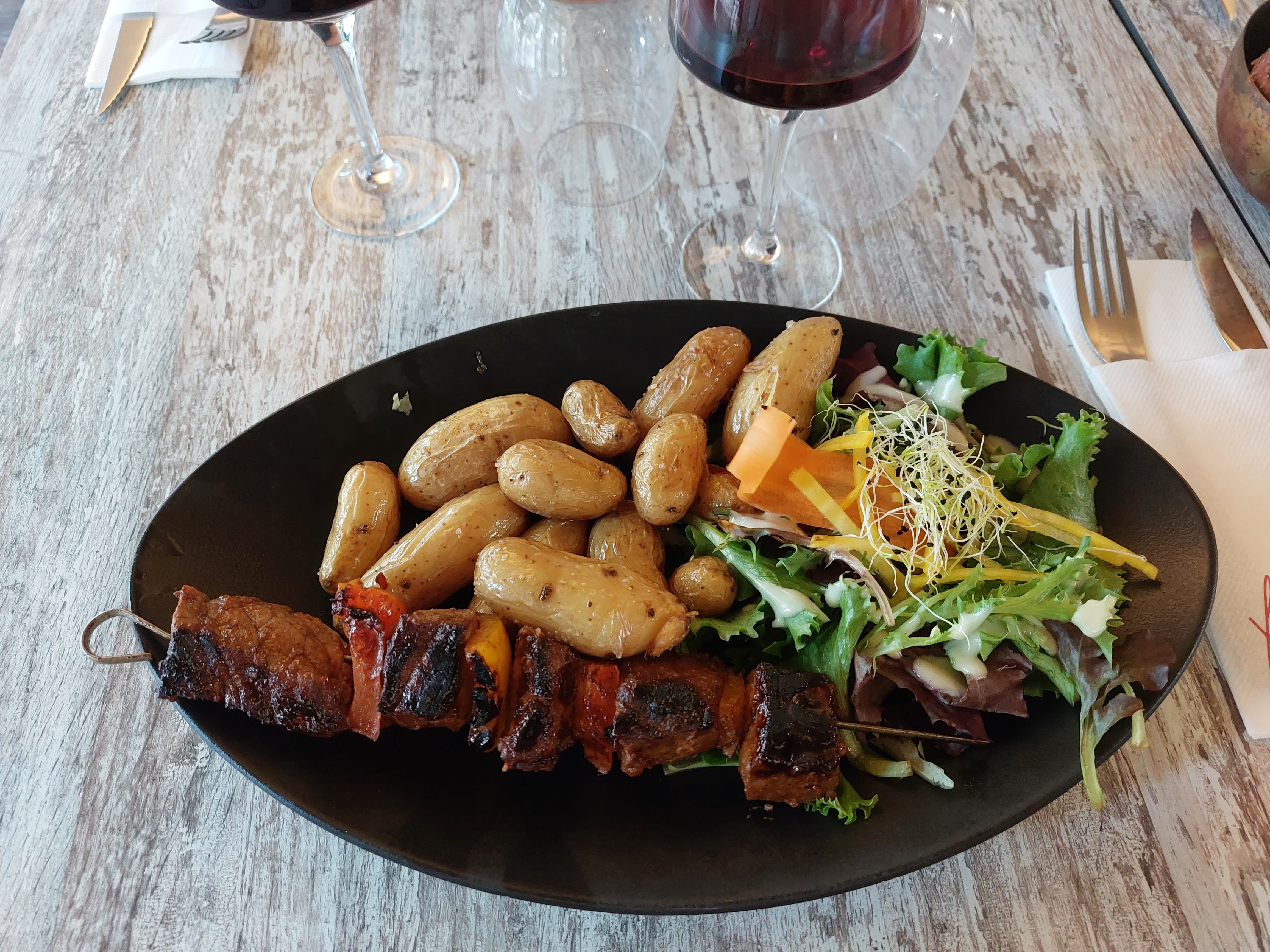 [Avis d'août 2021] Un cadre agréable, de bons produits, un menu qui convient à tous les goûts. Seul bémol, un service trop long. [Retour 1 an après...] Une amélioration nette sur le service efficace, rapide et compétent. L'attention spéciale anniversaire a été appréciée. Des plats bien servis, colorés, savoureux mais de qualité inégale (poulpe vraiment excellent, brochette de bœuf un peu dure). Terrasse vaste et agréable (mais brumisateur pas indispensable).