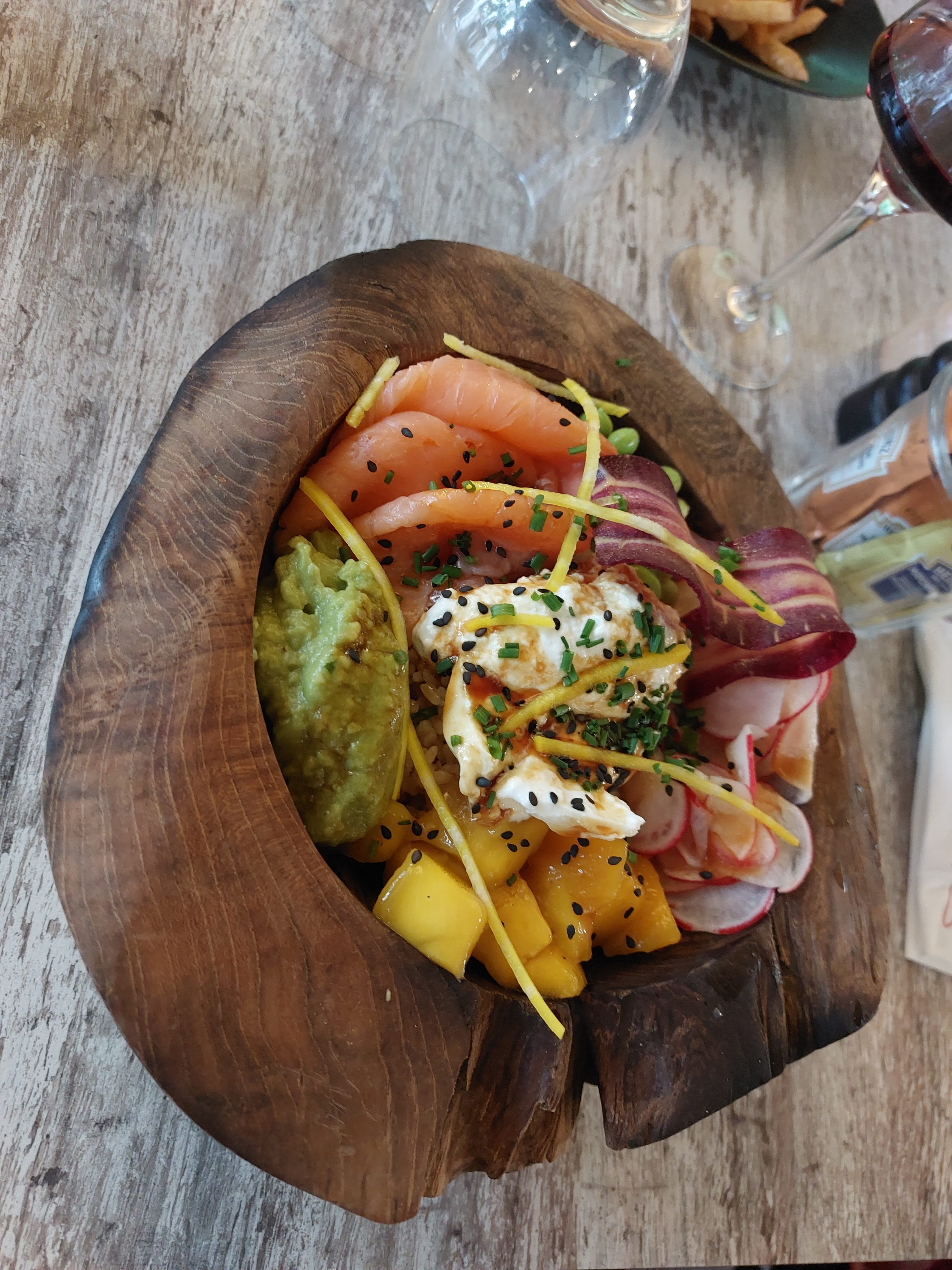 Accueil et paiement en caisse déplorable. Loin d’une sympathie qu’on apprécierait surtout après avoir payé un bowl à 20€ qu’il n’en vaut pas la peine. La serveuse très sympa mais alors le cadre a pris cher… dommage que cette fabuleuse terrasse se soit transformée en cantine.
