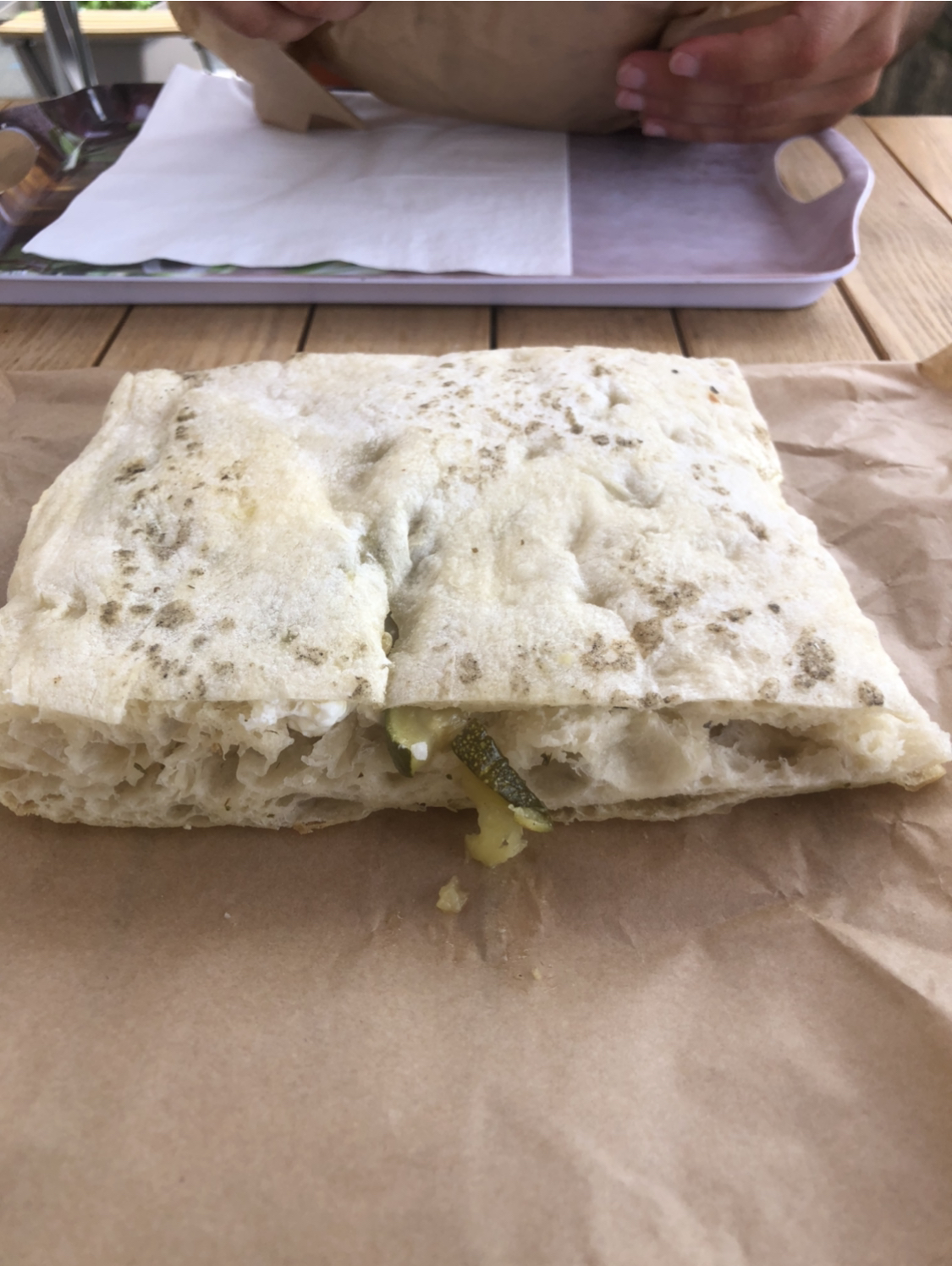 Nous avons mangé des foccacias excellentes, à un bon prix, et avec un service très agréable, le tout sur une table le long de la rivière.