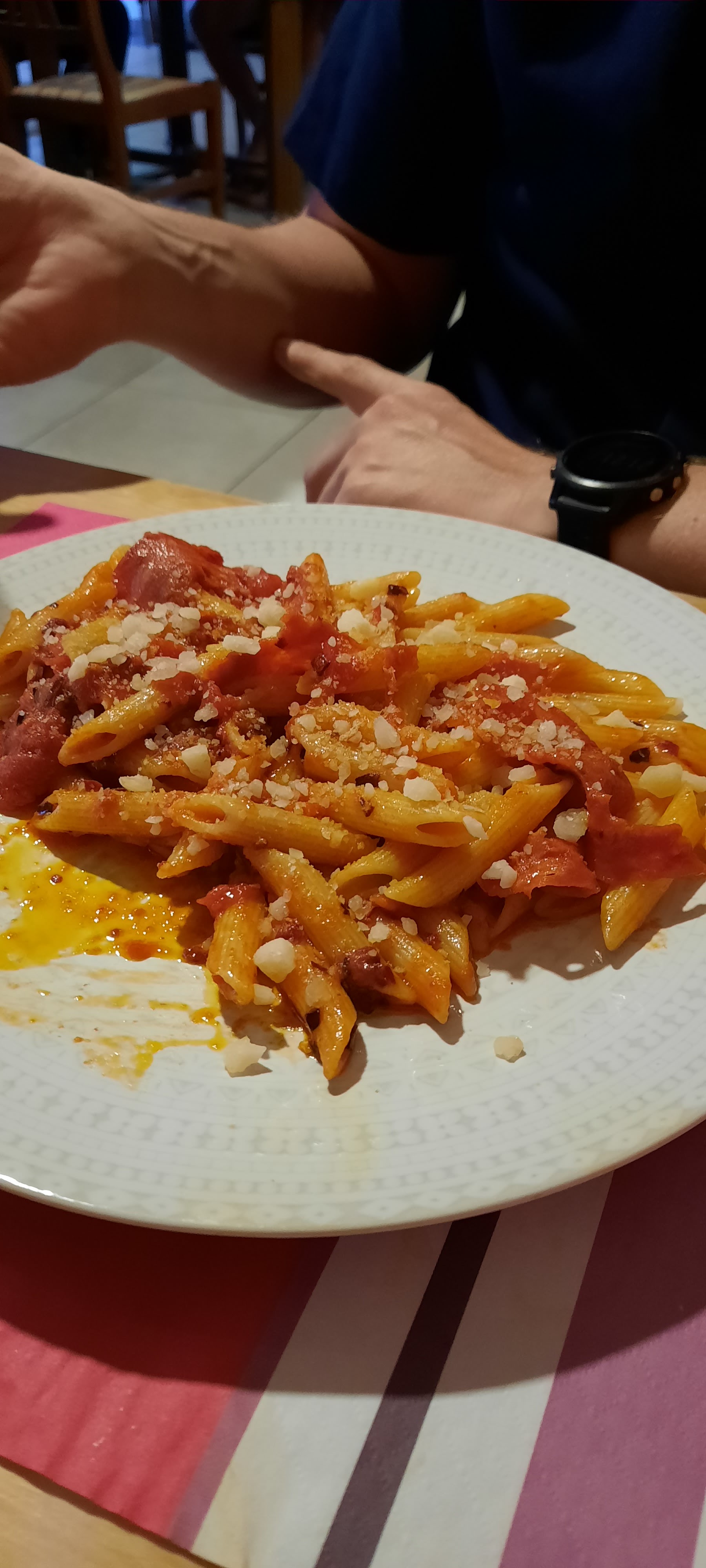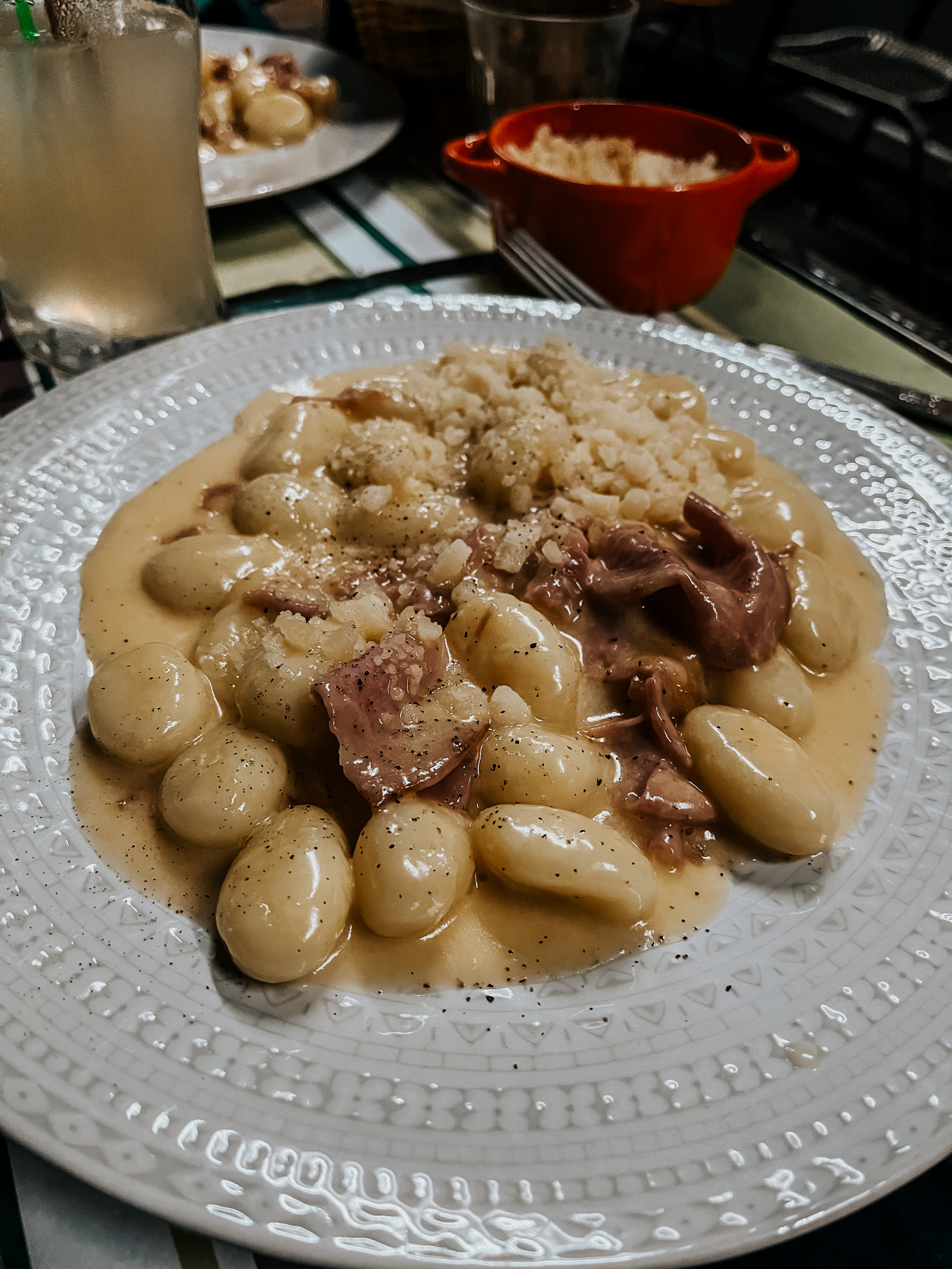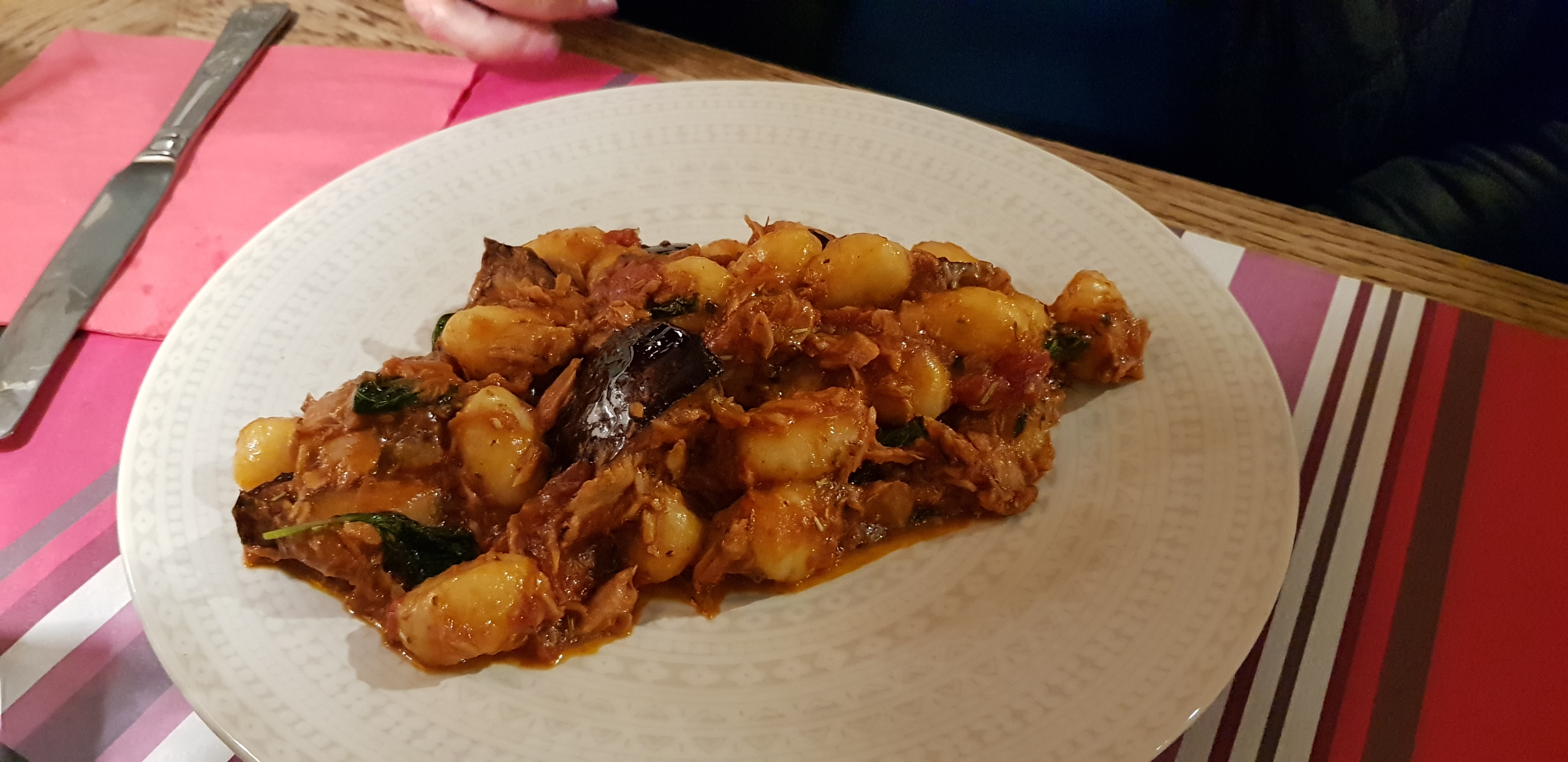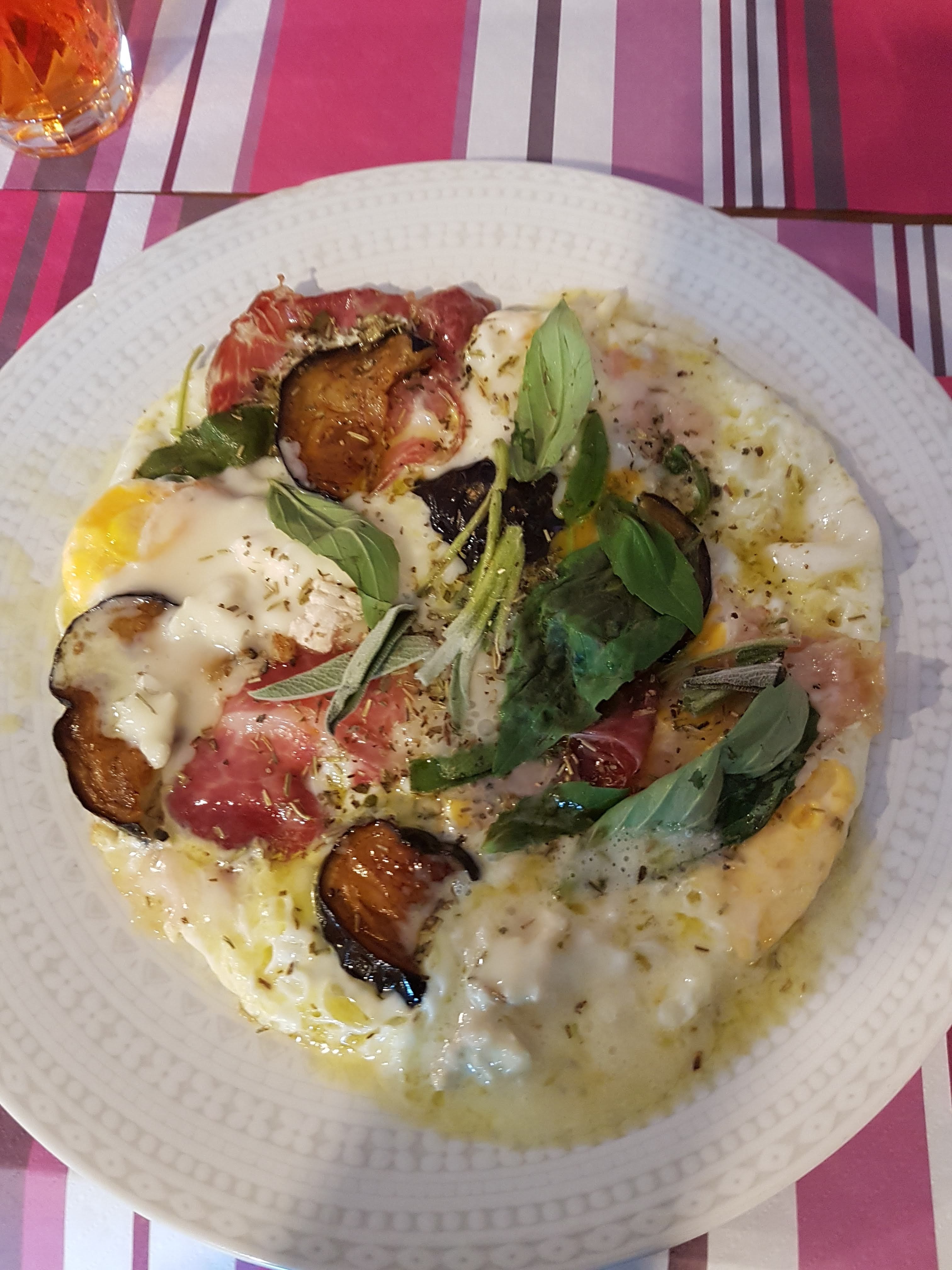 Resto typique italien, les pâtes à l'N'duja excellente, le dessert crema du café trop bon