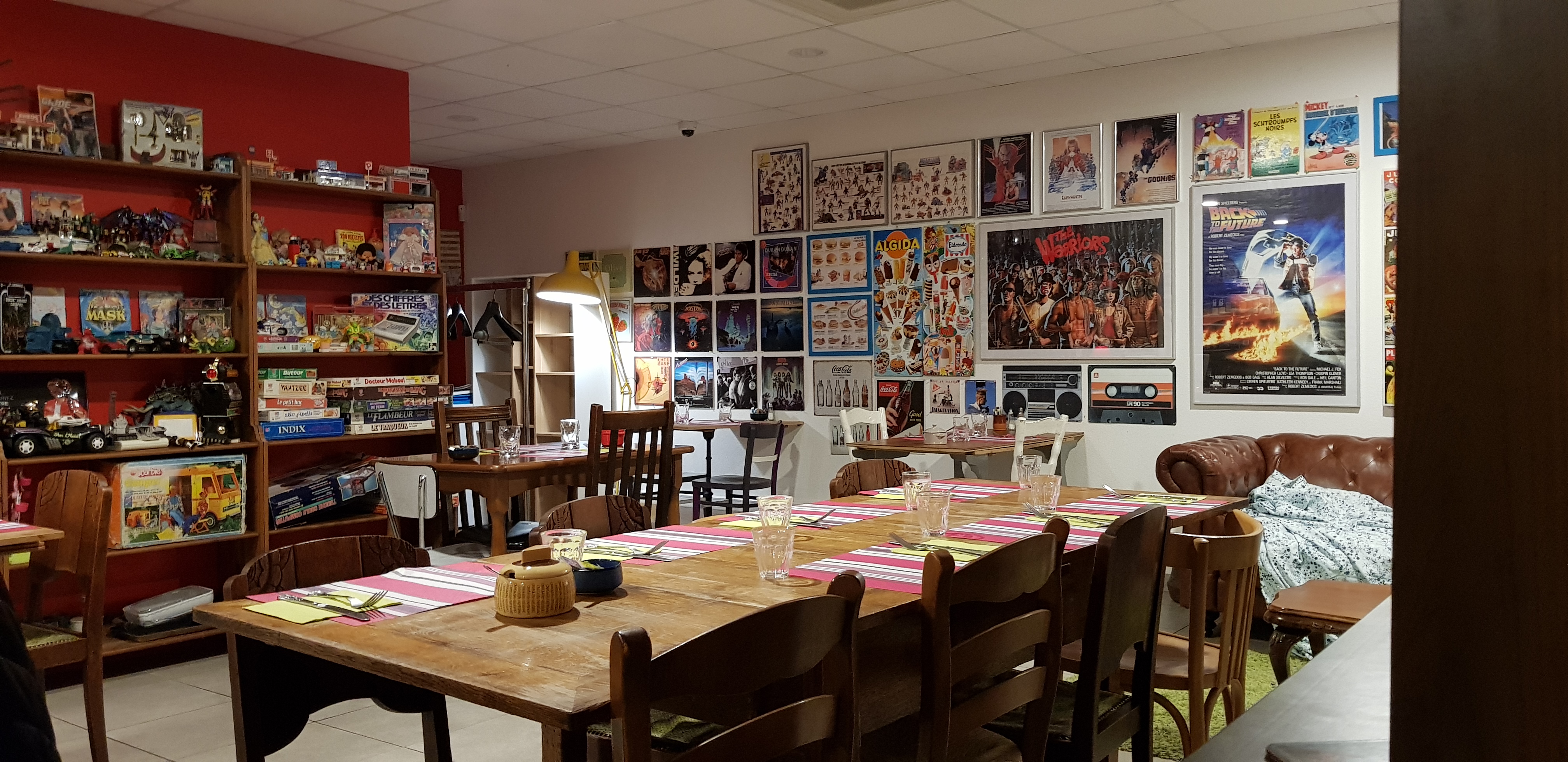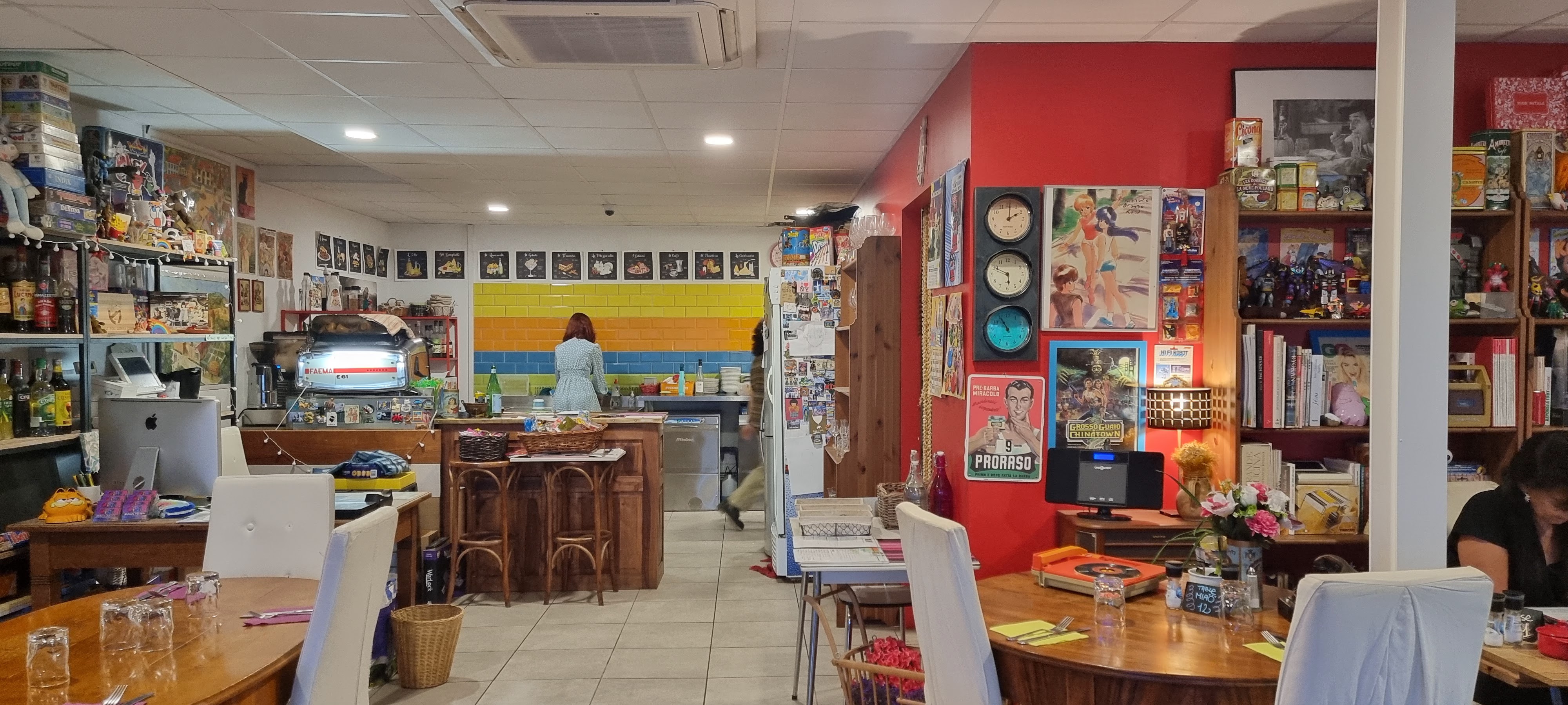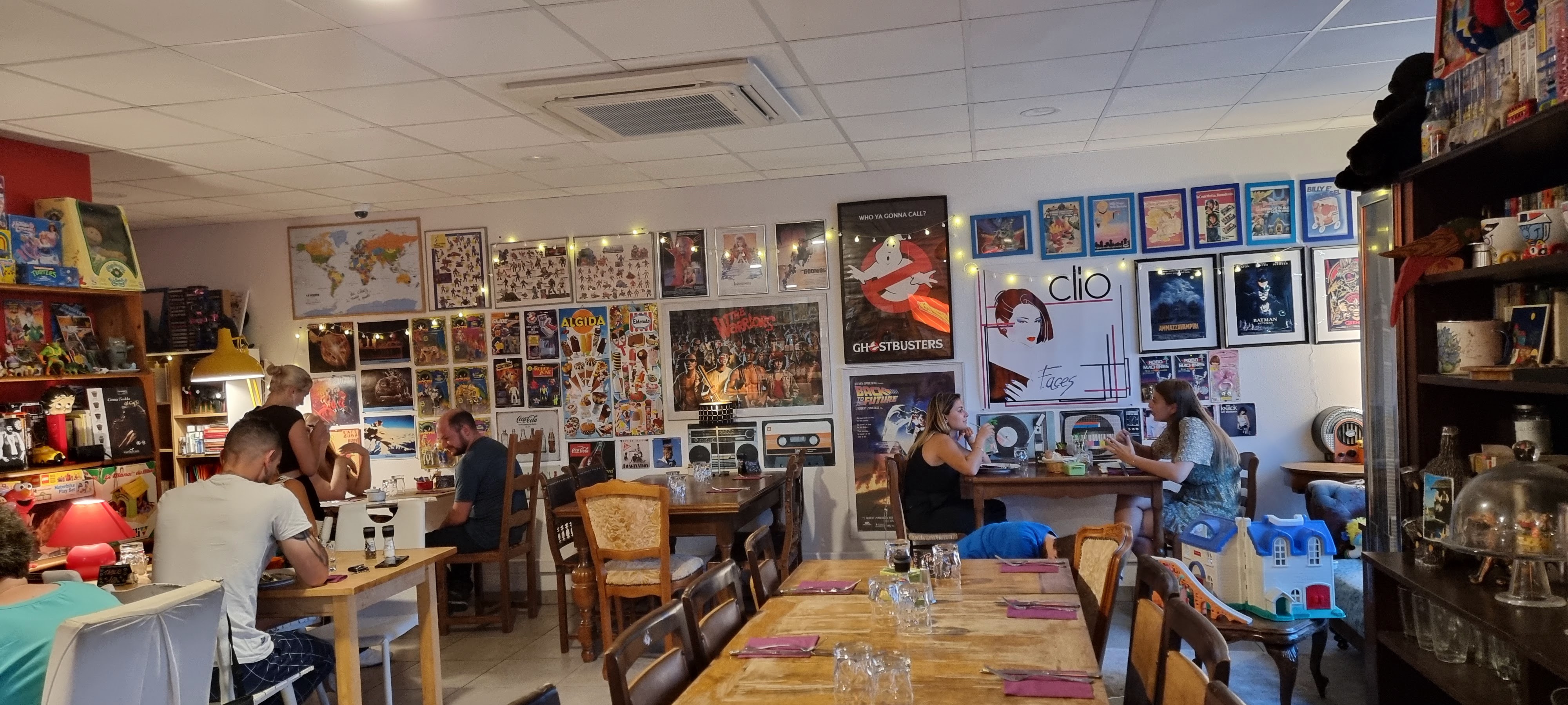 Restaurant de cuisine italienne, à la deco pop culture tres originale . Pas de pizza au menu , mais des pates et des gnocchis savoureux à un prix raisonnable. La deco éveille en chacun de nous une madeleine de Proust de notre enfance... génial Seul bémol, les prix du vin ,au verre notamment... A découvrir vite ...😍