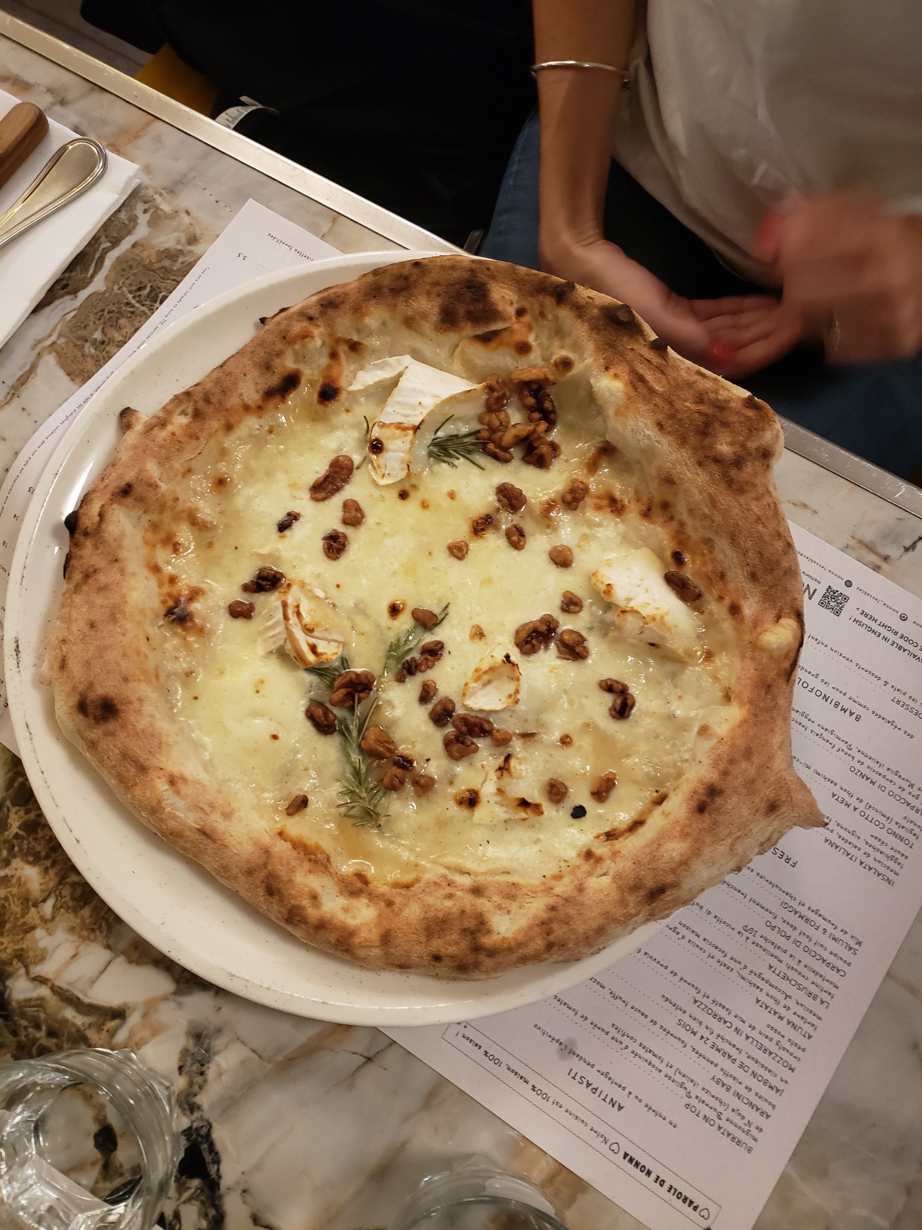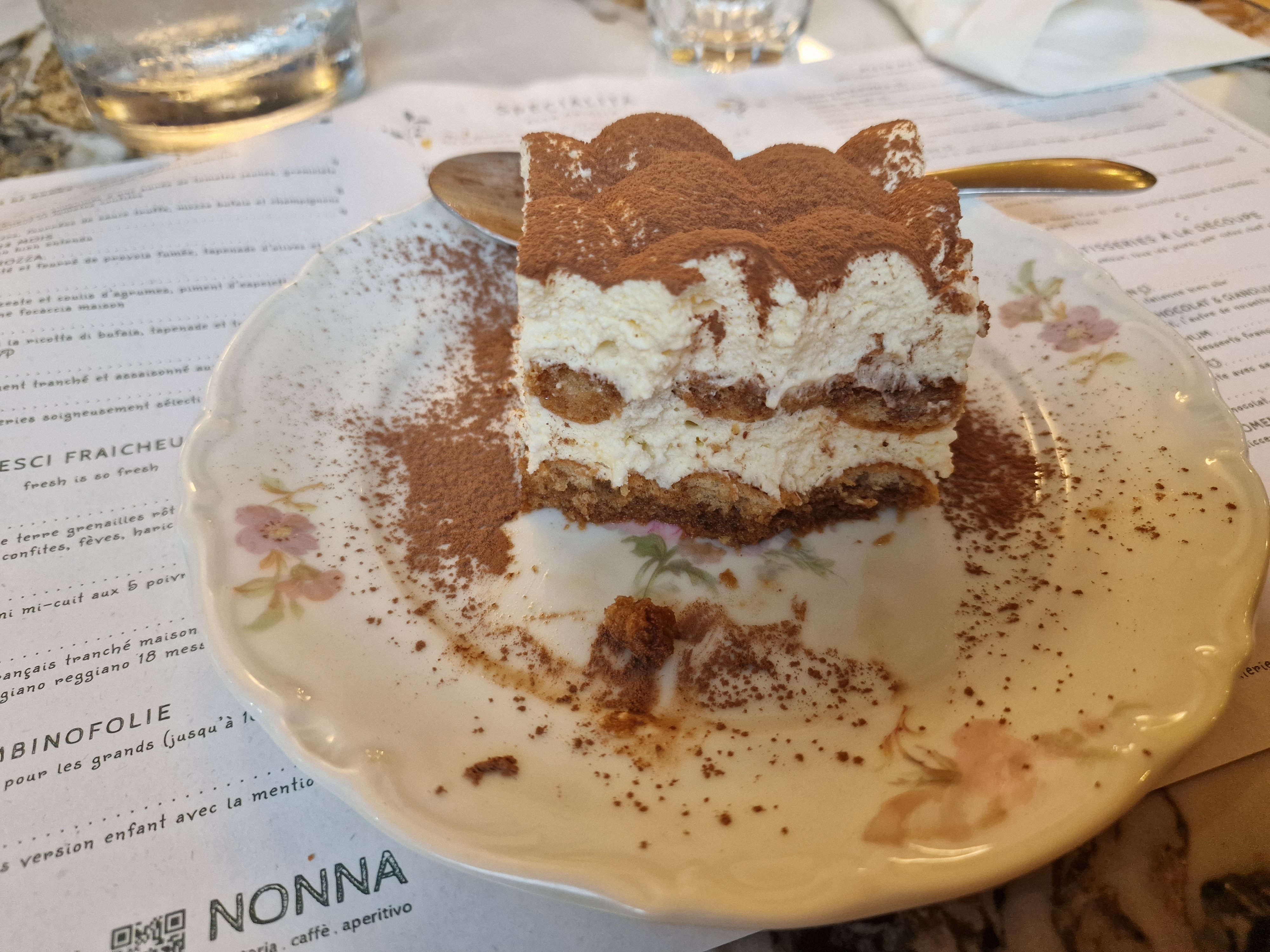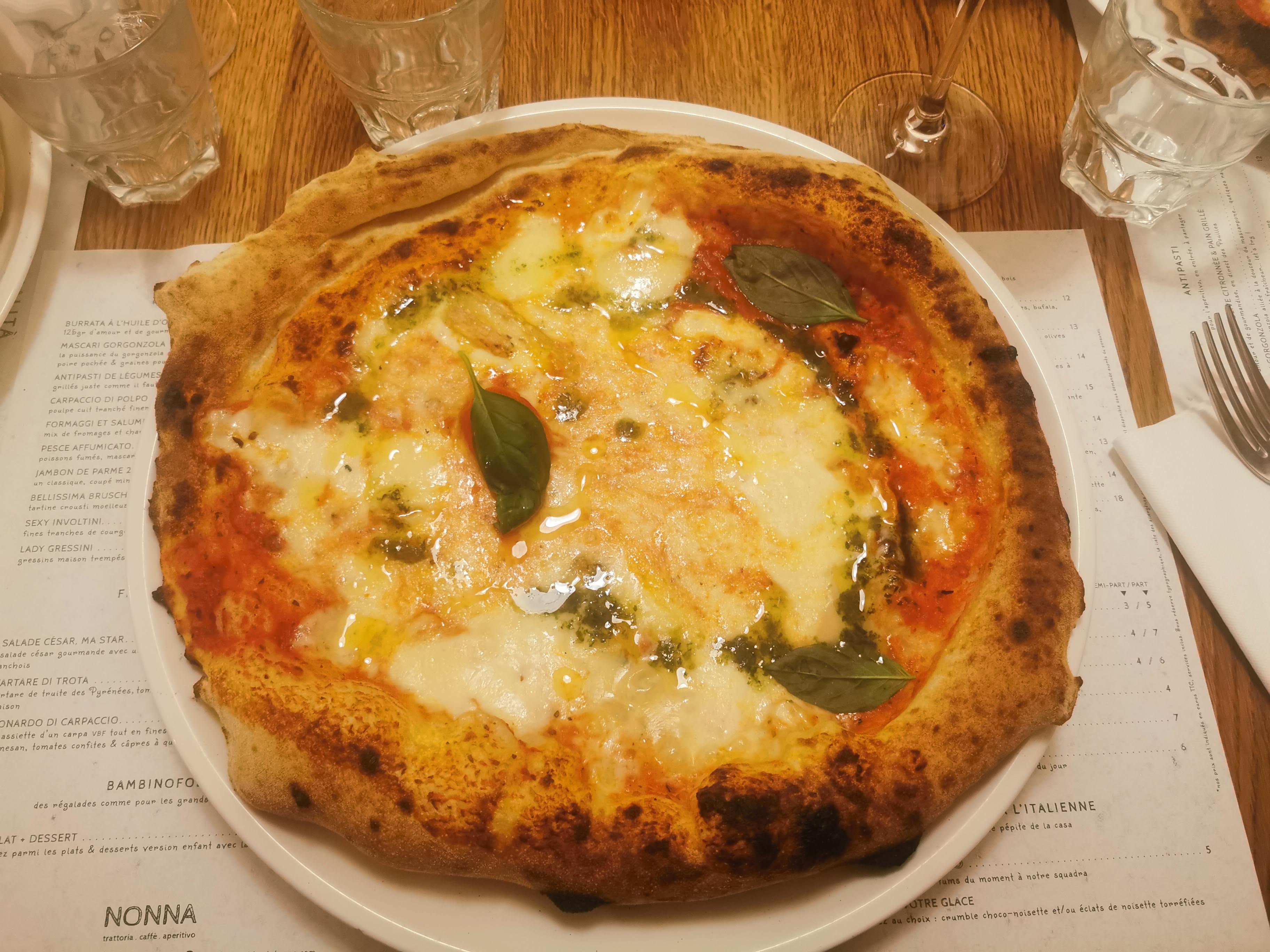 Déjà venue plusieurs fois à la Nonna. Très bon accueil, service très professionnel, rien à redire. La brigade de salle pense à tout pour que vous passiez un bon moment. Le service des plats s’enchaînent parfaitement car il y a une bonne cohésion avec la brigade de cuisine. On sent bien accompagnés dans nos choix sur la carte car le personnel de salle connaît parfaitement la carte si on a un régime alimentaire spécial. Les assiettes sont généreuses, joliment dressées avec des ingrédients de qualité provenant de fournisseurs italiens. J’ai apprécié mon assiette de pâtes carbonara les meilleures jamais dégustées et la focaccia à partager avec une huile d’olive vraiment exceptionnelle. Les prix sont corrects. La possibilité de commander 1/2 part de dessert est un plus car on a plus vraiment faim après une bonne pizza ou assiette de pâtes. C’est agréable aussi de voir depuis la salle le barman mixologue préparer tous les jolis cocktails qui sont commandés. La décoration est originale, sublime et dans le thème. On recommande et on reviendra.