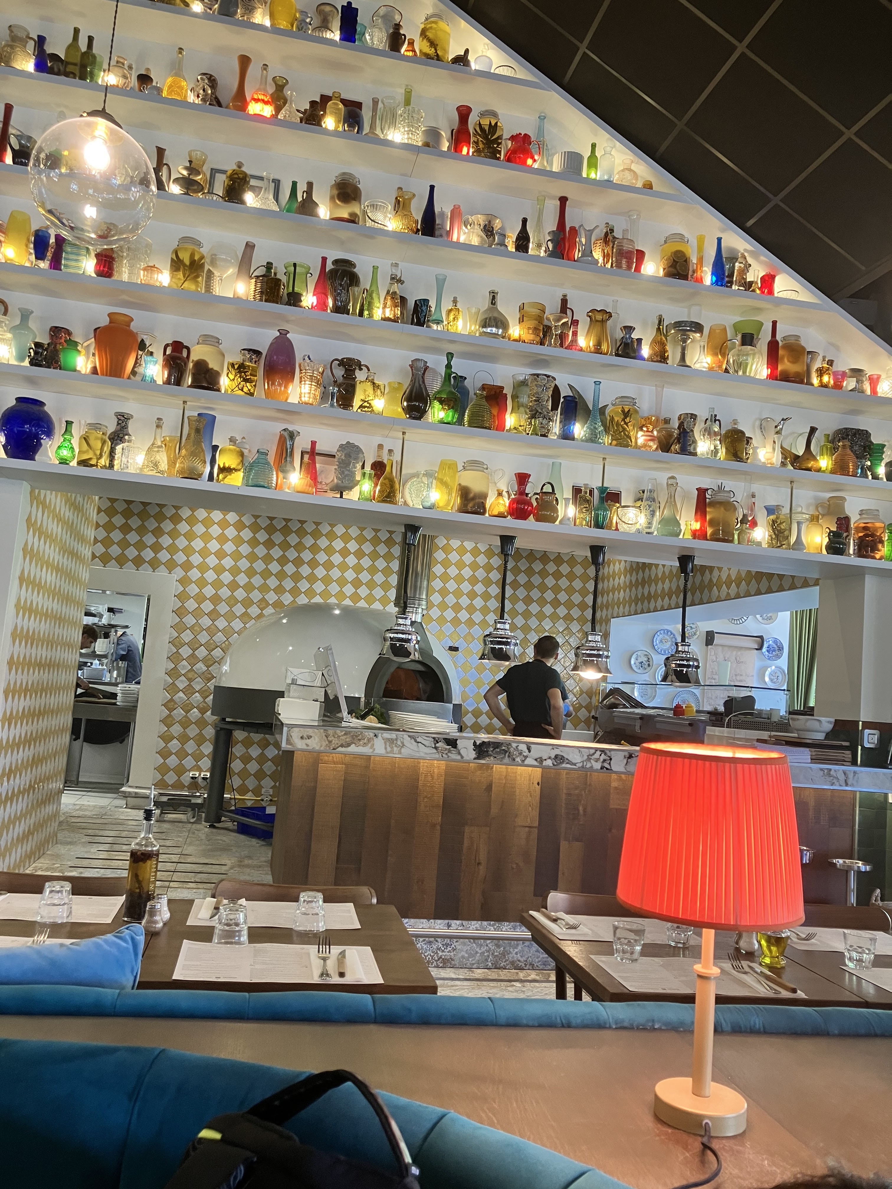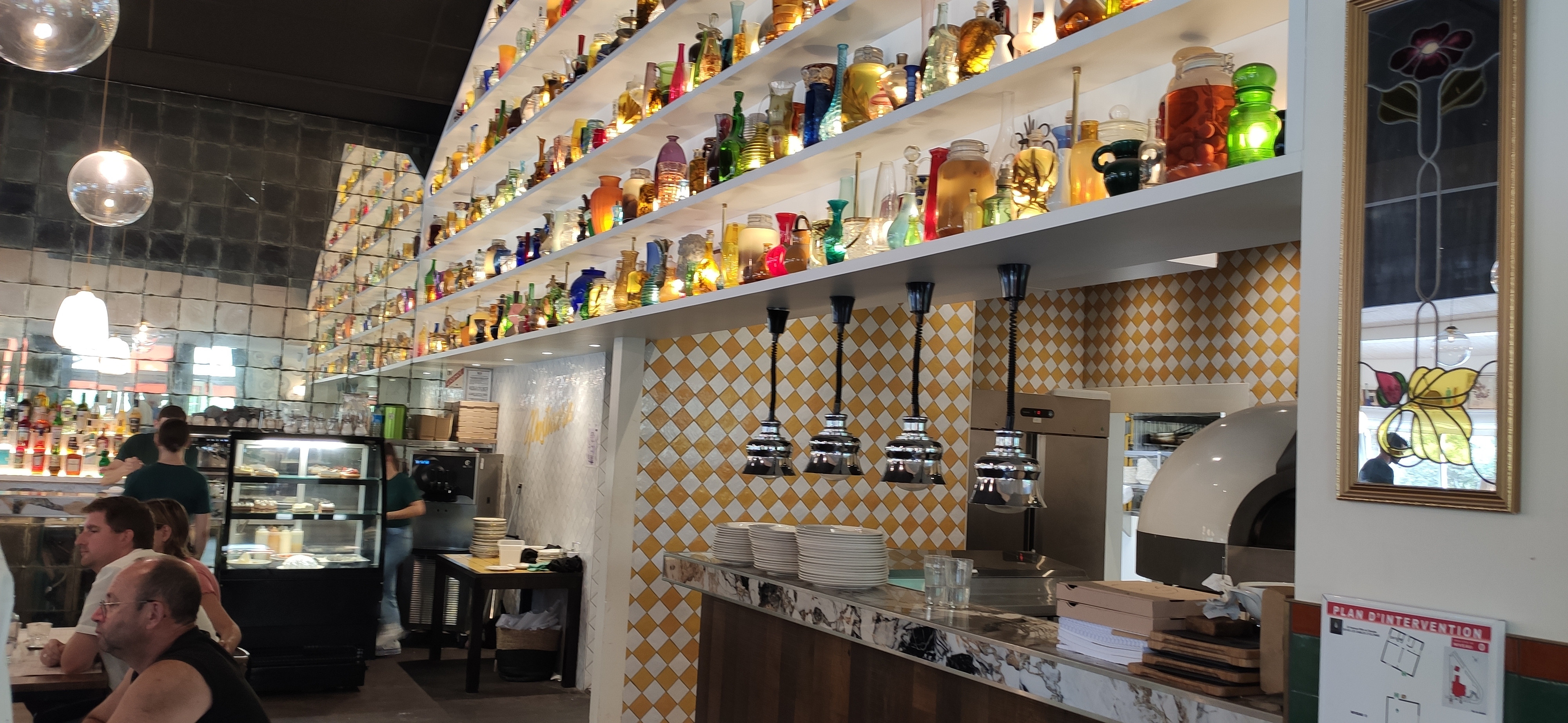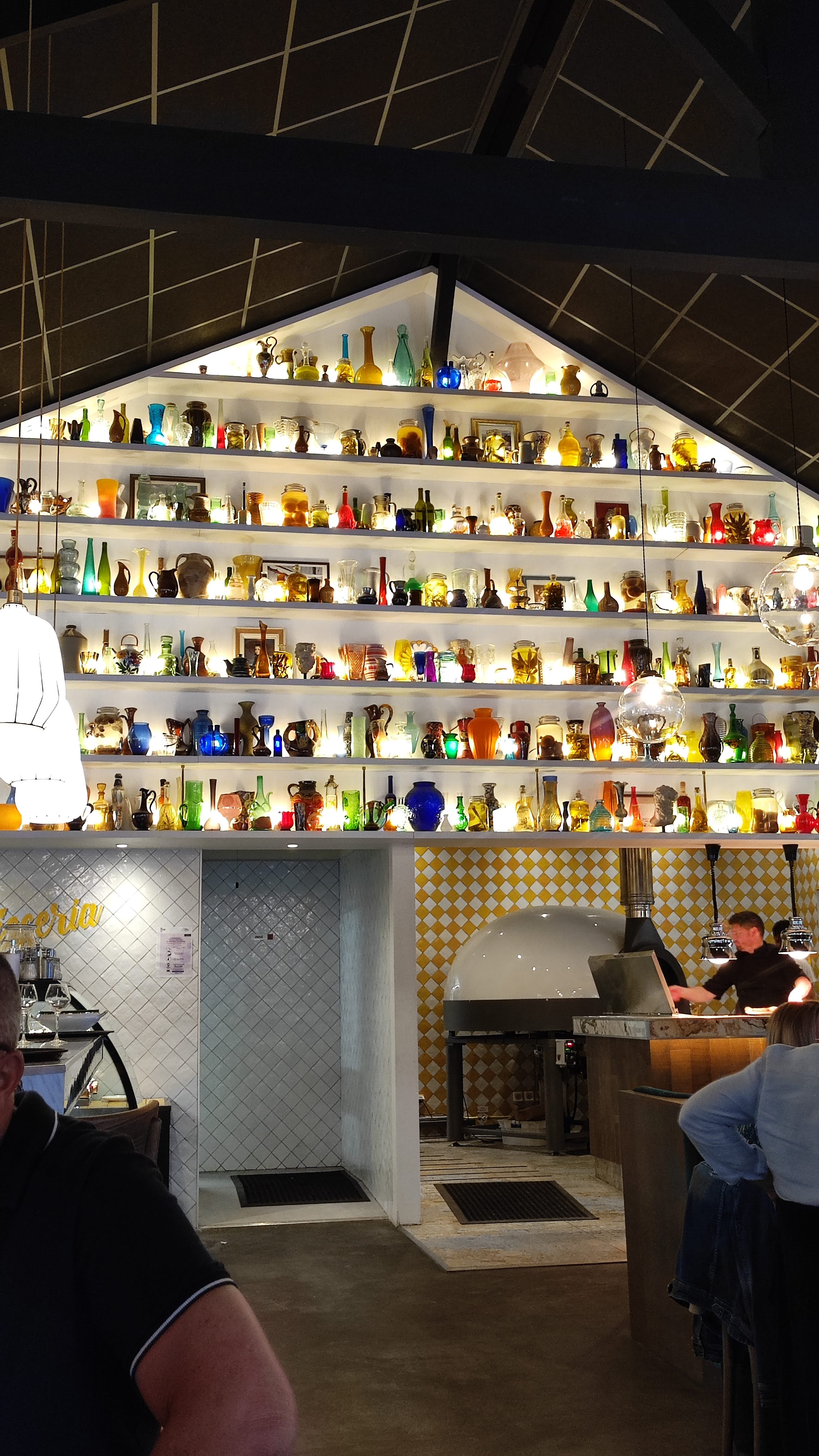 Allez y les yeux fermés, chouette déco...Ce mur aux multiples pichets et bouteilles est très sympa. La cuisine excellente, accueil chaleureux.
