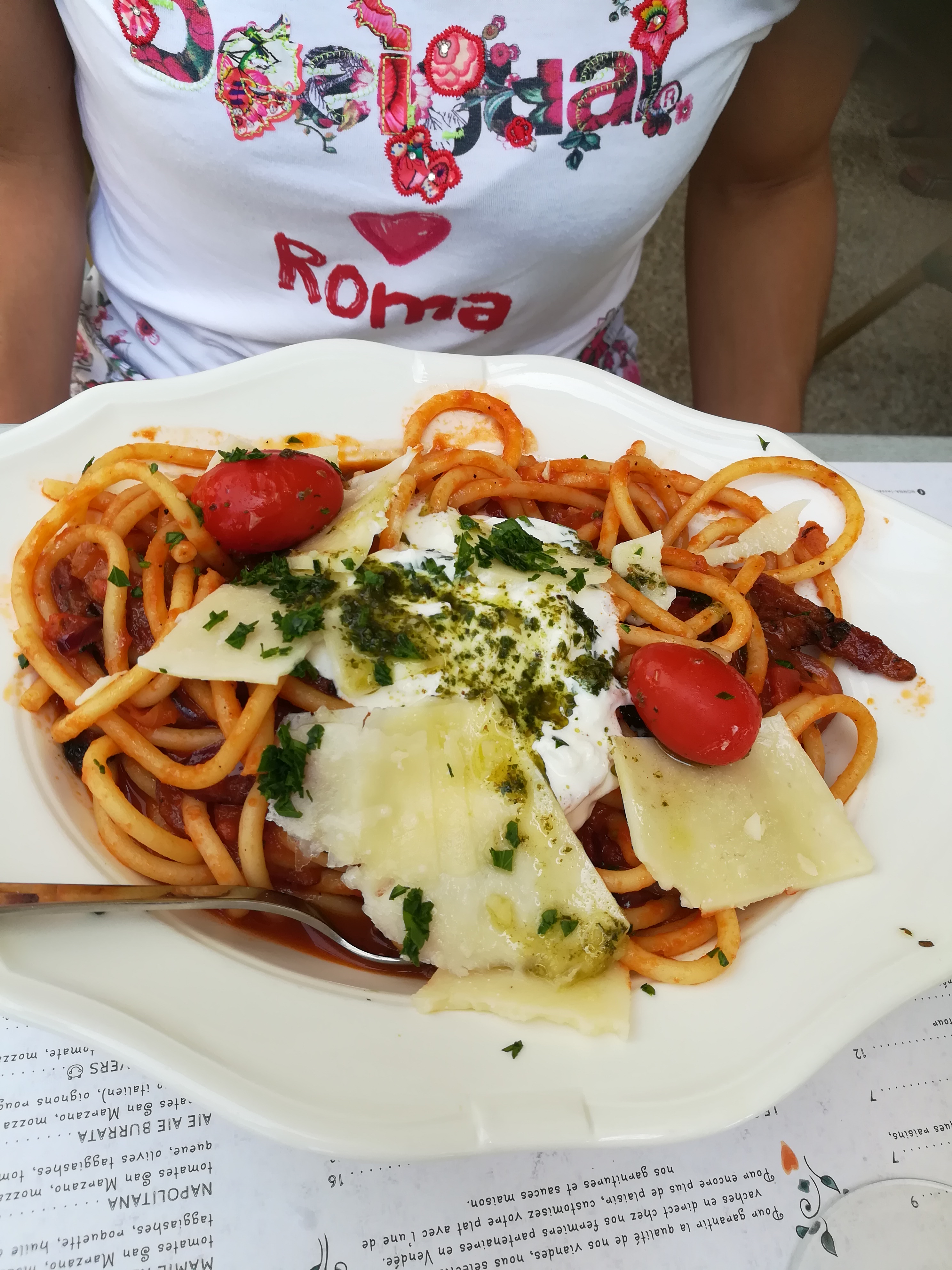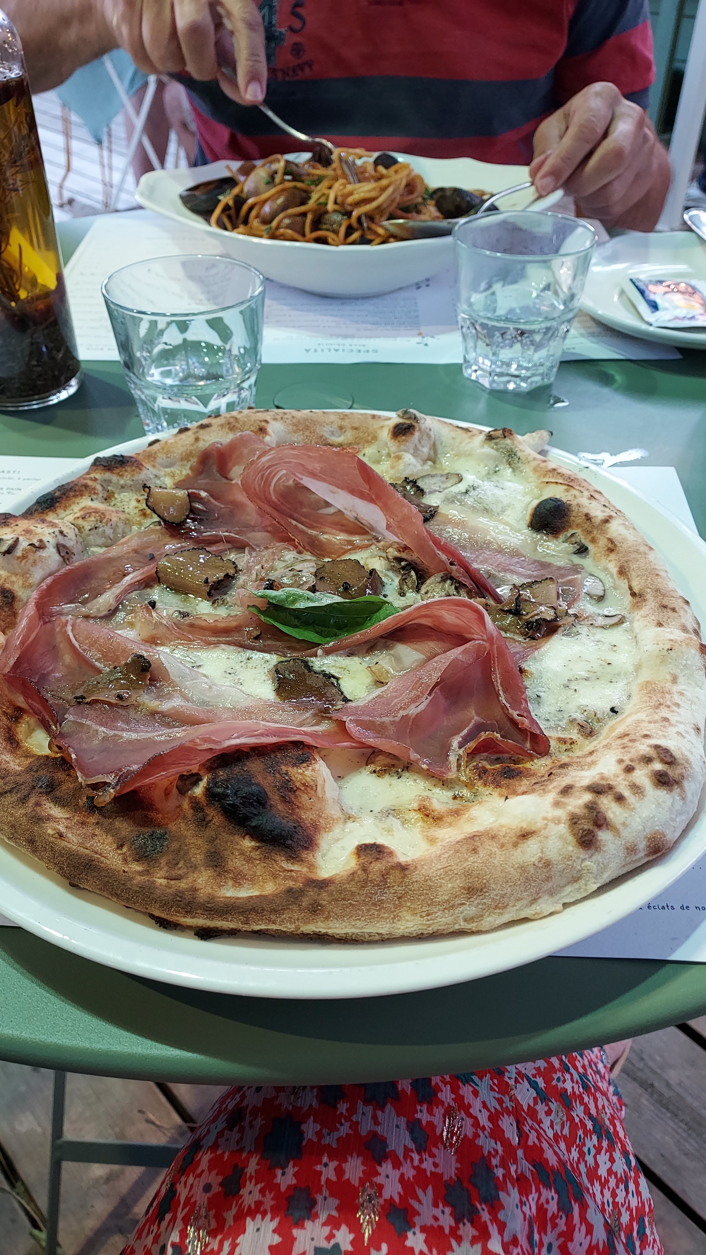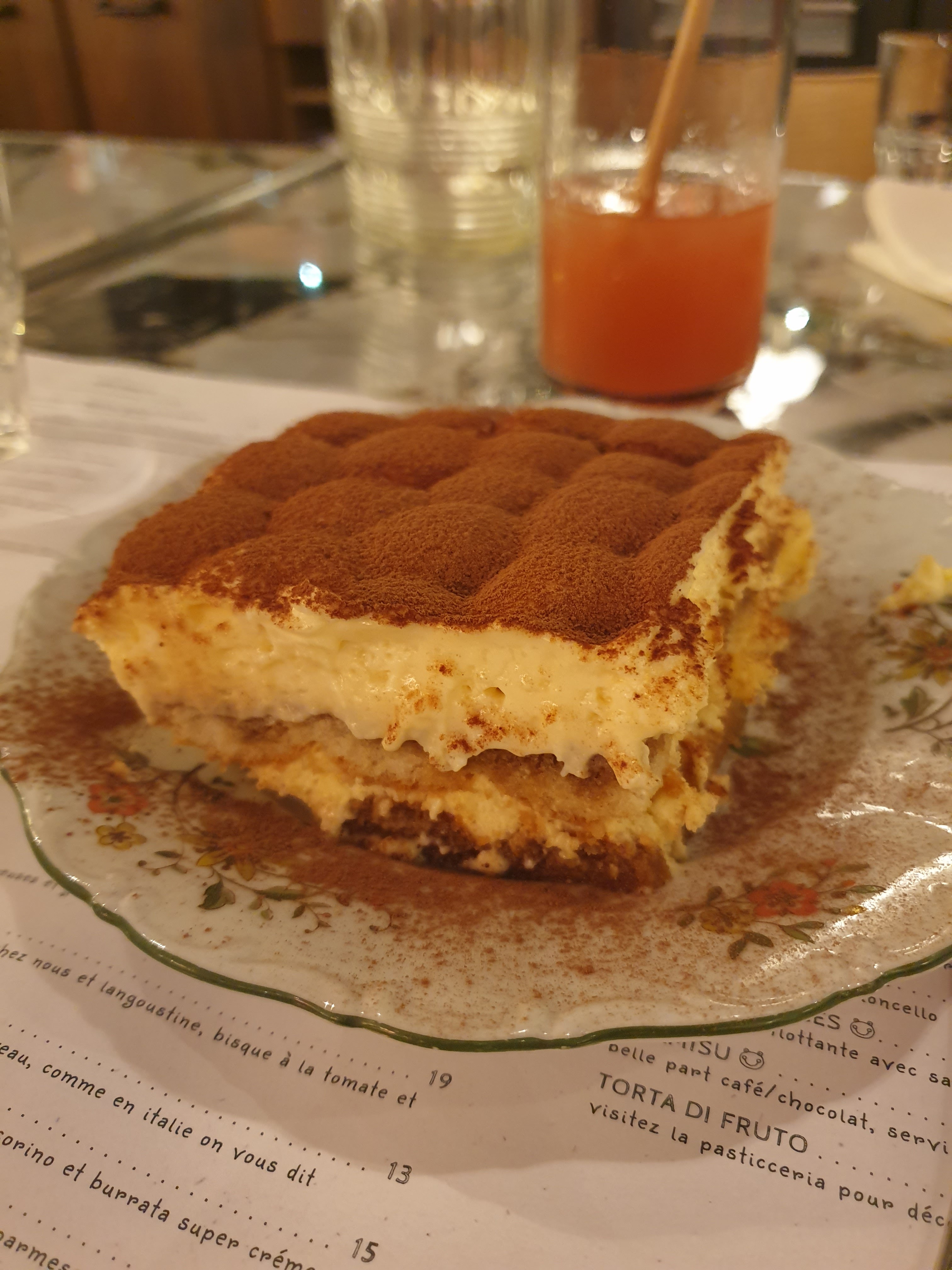 Le lieu est spacieux même en famille . Décoration soignée intérieur comme extérieur. service efficace, sympathique et rapide. De l’aperitivo au dessert tout était excellent : vitello tonato, pizza, pâtes et desserts ! Super idée l’option « demi part » sur les desserts!