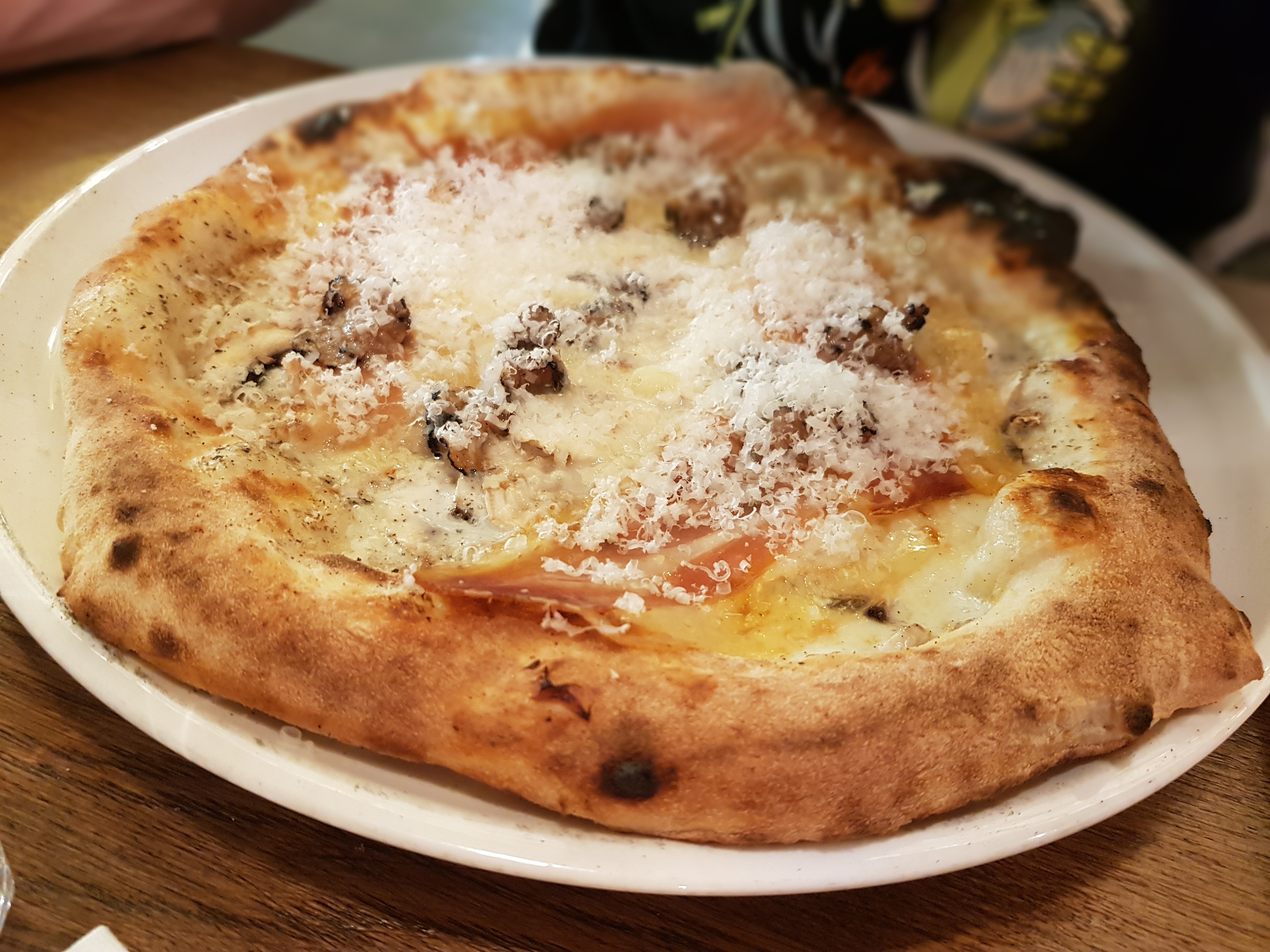 Réservation effectuée par Internet dans la matinée et confirmation à 19h30 pour un dîner à 21h15, ça commence mal. Un appel téléphonique pour avoir confirmation et une attente de 5 minutes avec en fond sonore de l'accueil des clients. Le tout sans avoir reçu réponse à ma confirmation, y a des progrès à faire. Une fois sur place, nous entrons dans une salle commune dont la température est assez élevée, il y fait pas froid. Accueil (physique) sympathique, un placement après quelques minutes le temps de refaire la table et nous voilà installés. Une carte assez courte avec des produits bien choisis, un peu trop courte toutefois selon moi, et trop de jus de truffe. Un service agréable mais un peu expéditif en fonction du serveur, je marchais encore ma pizza quant on m'a enlevé mon assiette. La qualité des plats est correcte mais pas transcendante, un manque d'assainissement et peu garnis, un peu de générosité serait la bien venue Une addition tout à fait correcte au final et un bon rapport qualité prix.