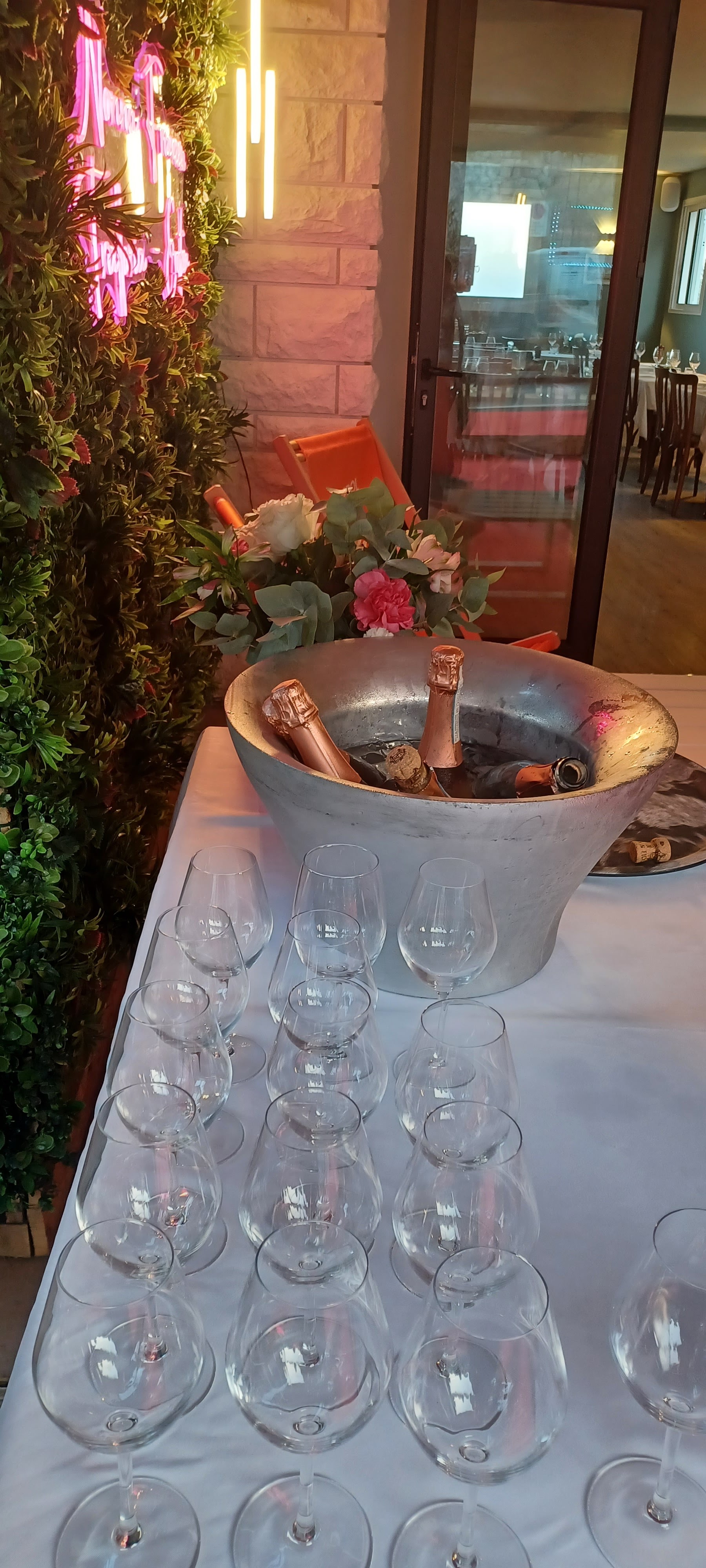 Le chef et à sa charmante épouse très à l’écoute nous ont offert une délicieuse journée à l’occasion de mon anniversaire. Nos invités se sont régalés, l’ambiance était chaleureuse et cosy et les serveuses très sympathiques . Le sentiment d’être à la maison avec une organisation et des prestations parfaites . Merci pour tout !