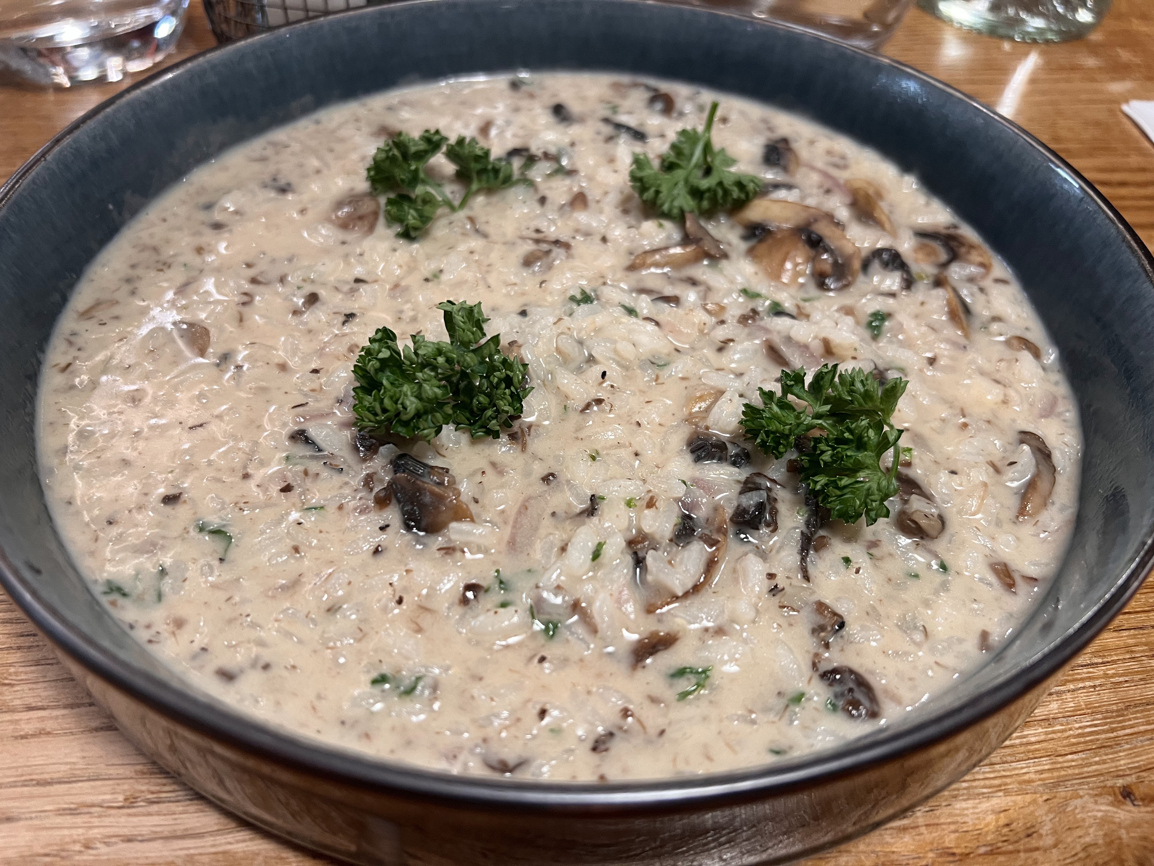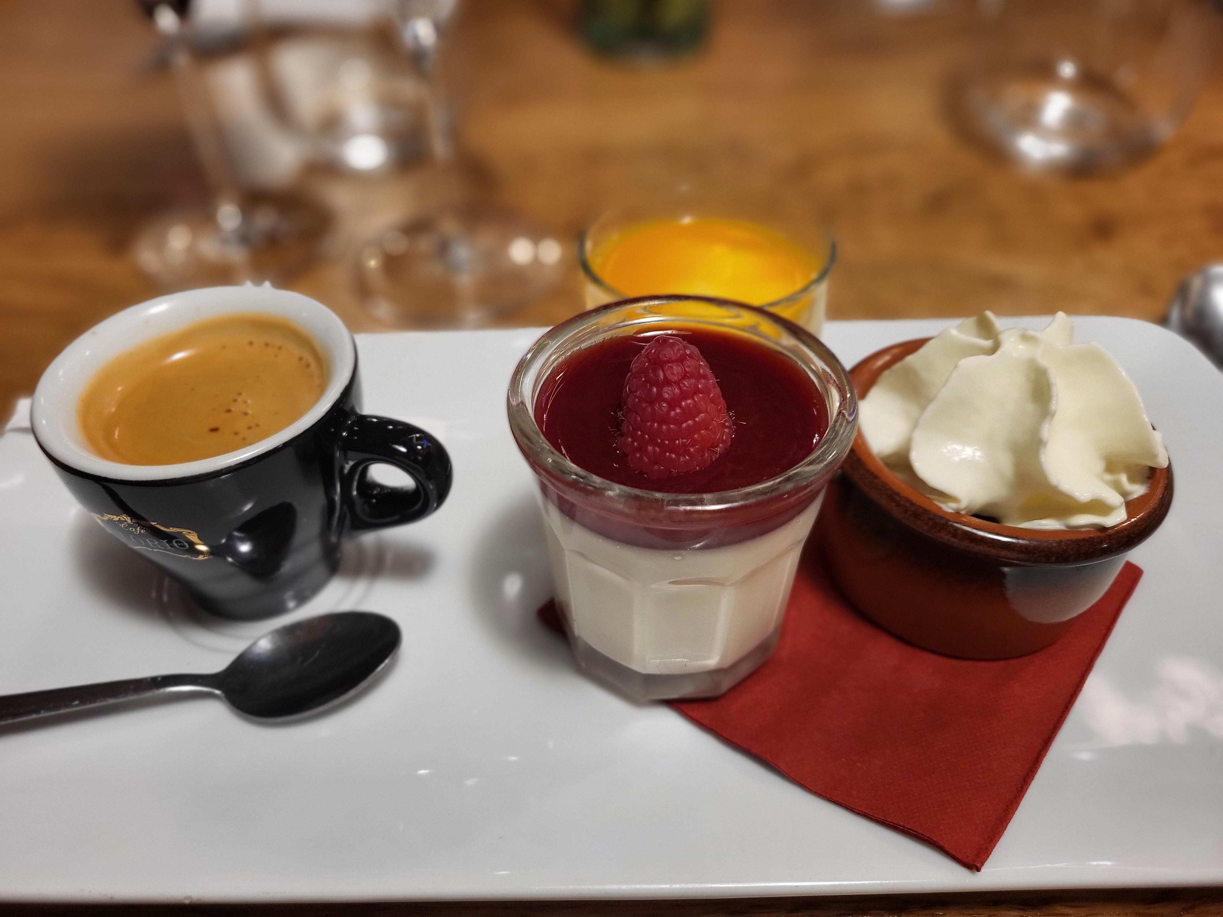 Excellent restaurant J'ai choisi l'escalope de veau aux champignons et sauce aux truffes accompagné de pâtes à dentés, délicieux Dessert un peu chère mais la qualité est là. C'est un bon choix 👍