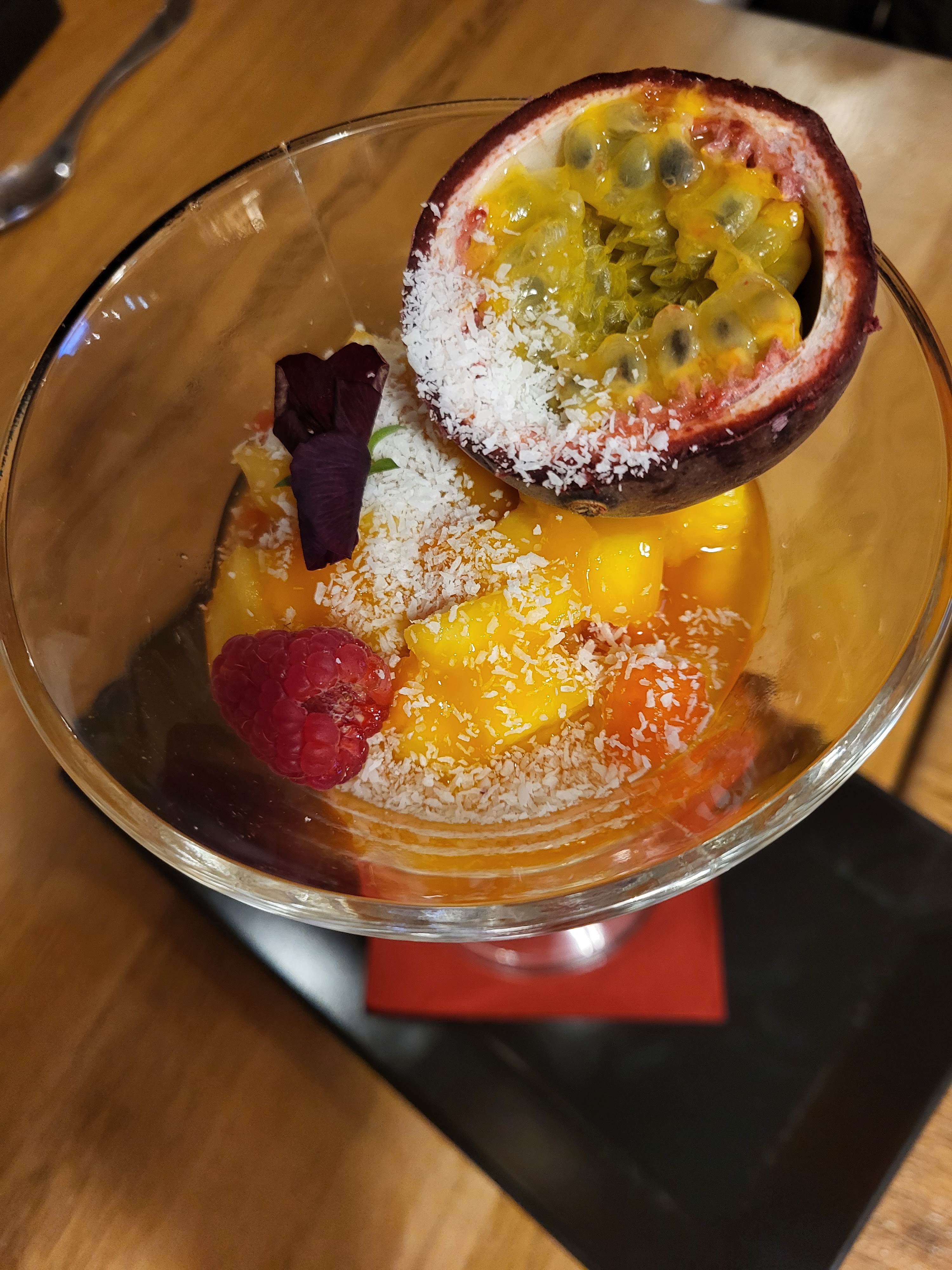 Endroit chaleureux accueil très agréable La pizza à la crème de truffe et la salade de fruits avec mousse de noix de coco furent un régal pour nos papilles