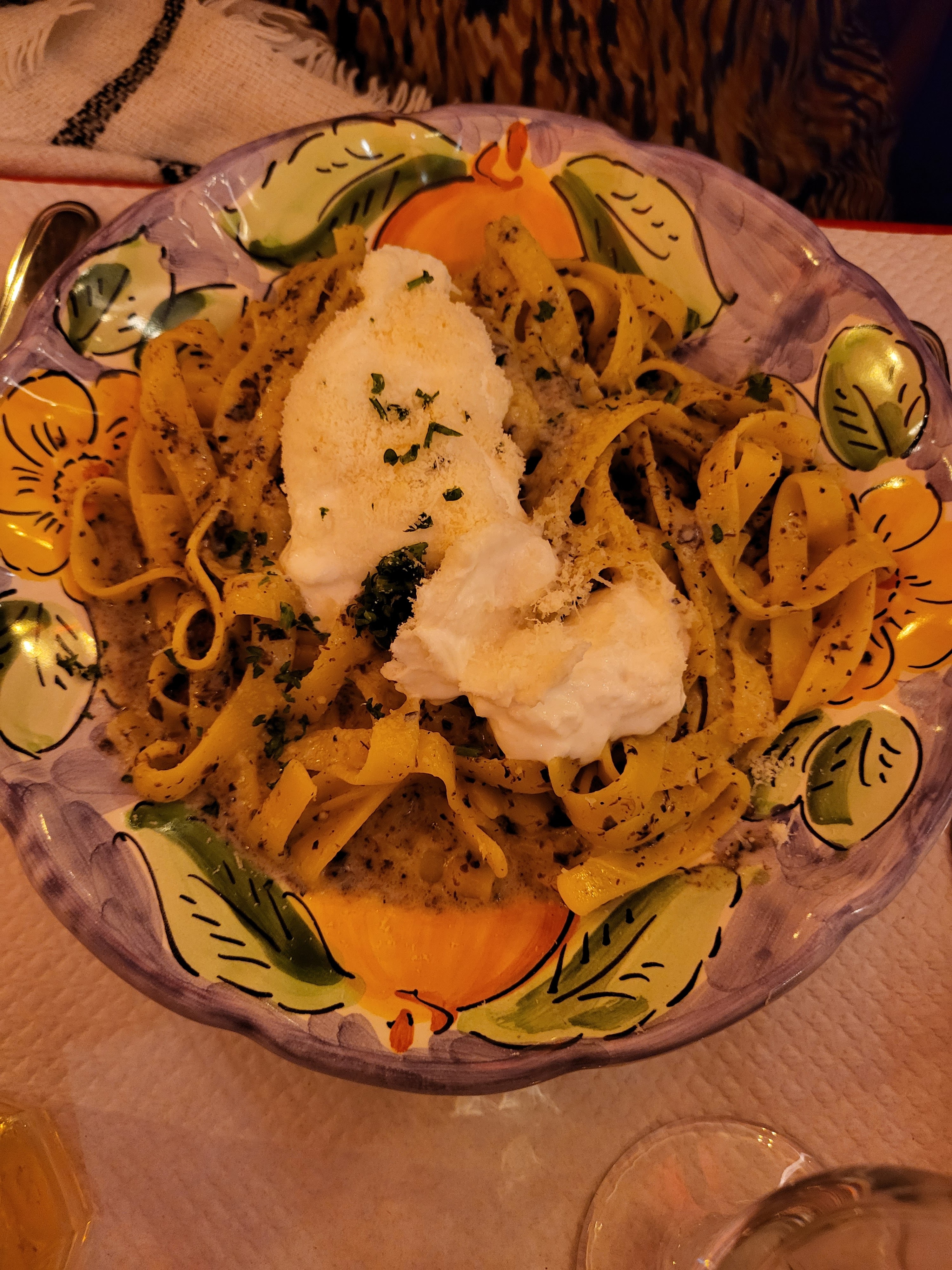 Cela faisait deux ans que je n’ai pas été dans ce restaurant. J’en avais gardé un bon souvenir lors de mes derniers passages. L’accueil est agréable et efficace, et le service rapide (nous sommes arrivés en fin de service). J’ai commandé des tagliatelles à la carbonara ; l’assiette est très copieuse, mais je n’ai pas trop aimé la sauce carbonara, que j’ai trouvée un peu écœurante. Le plat a été facturé 11,50€, plutôt correct en regard de ce qui a été servi.