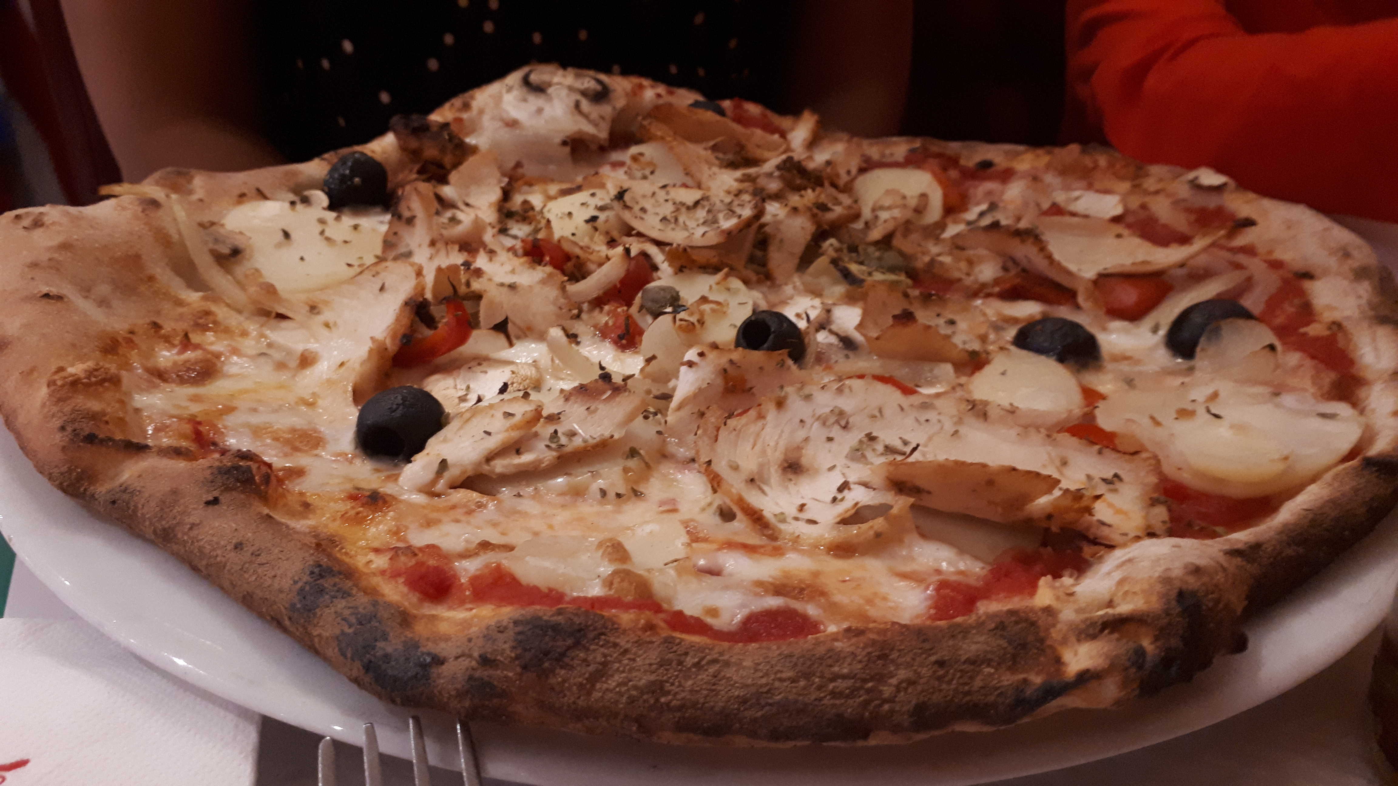 Nous avons mangé dans ce restaurant samedi dernier et nous n’avons rien à redire. Peut-être que les pizzas sont meilleures en Italie mais on s’en moque, on n’avait pas le temps d’y aller de toute façon. Elles sont copieuses et bien garnies. Nous y retournerons sans doute.