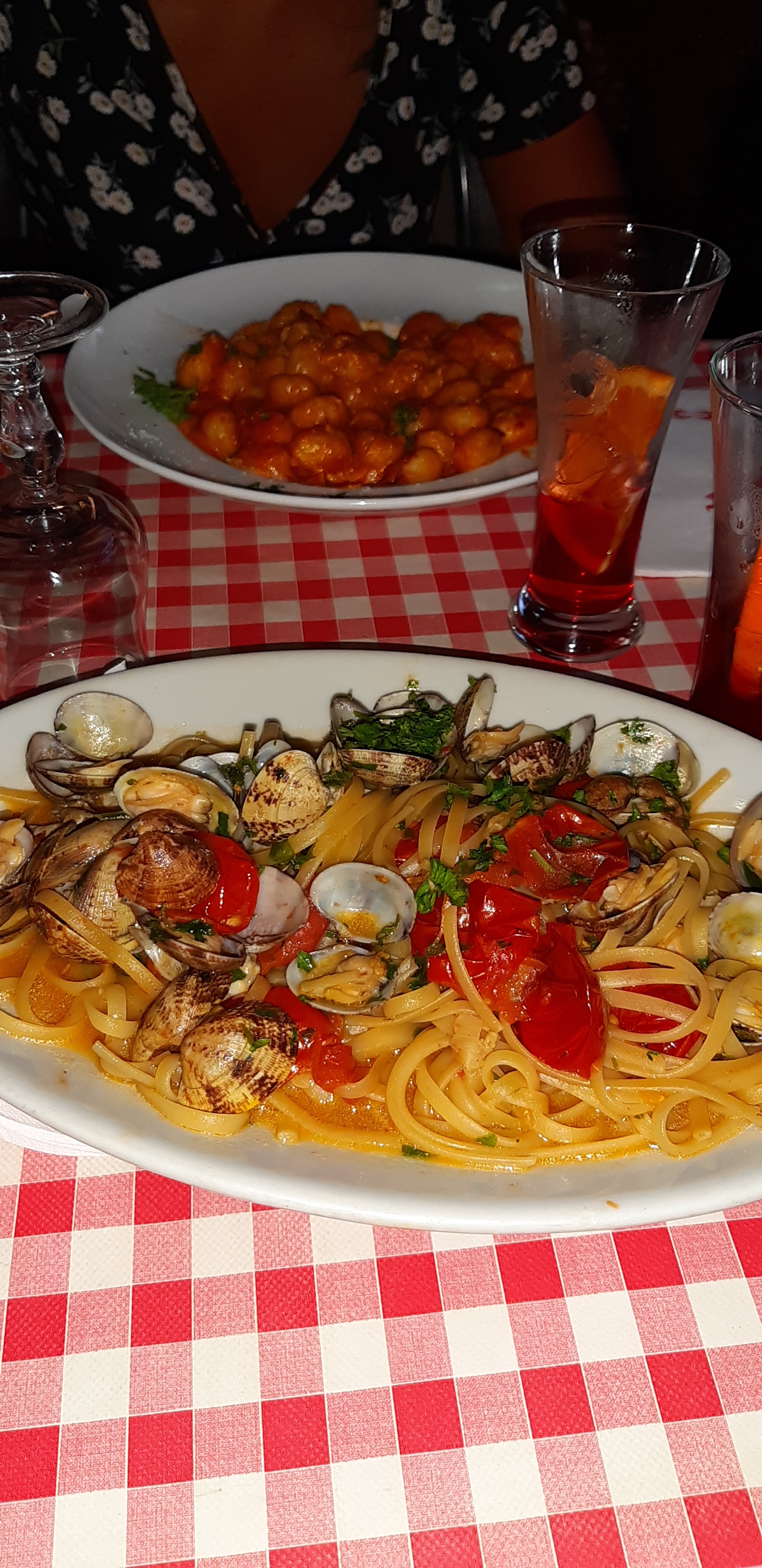 Les pizzas sont pas mal. Au niveau des plats copieux mais restent dans ce que pensent les clients de l'Italie ce qui n'est absolument pas exacte. La sauce ne fait pas les plats ! Le service et rythmé par certains serveurs qui parle italien qui arrive le matin en faisant hurler leur moteurs de voiture.( J'en étais témoin un matin en passant à pieds) certaines serveuses ne sont pas agréable, si ! le soir après le service à hurler de rire sur le trottoir avec des clients copains qui sont bien éméchés.( Constater pendant une semaine en vacances chez des amis pas loin du restaurant) Restaurant en plus cher!