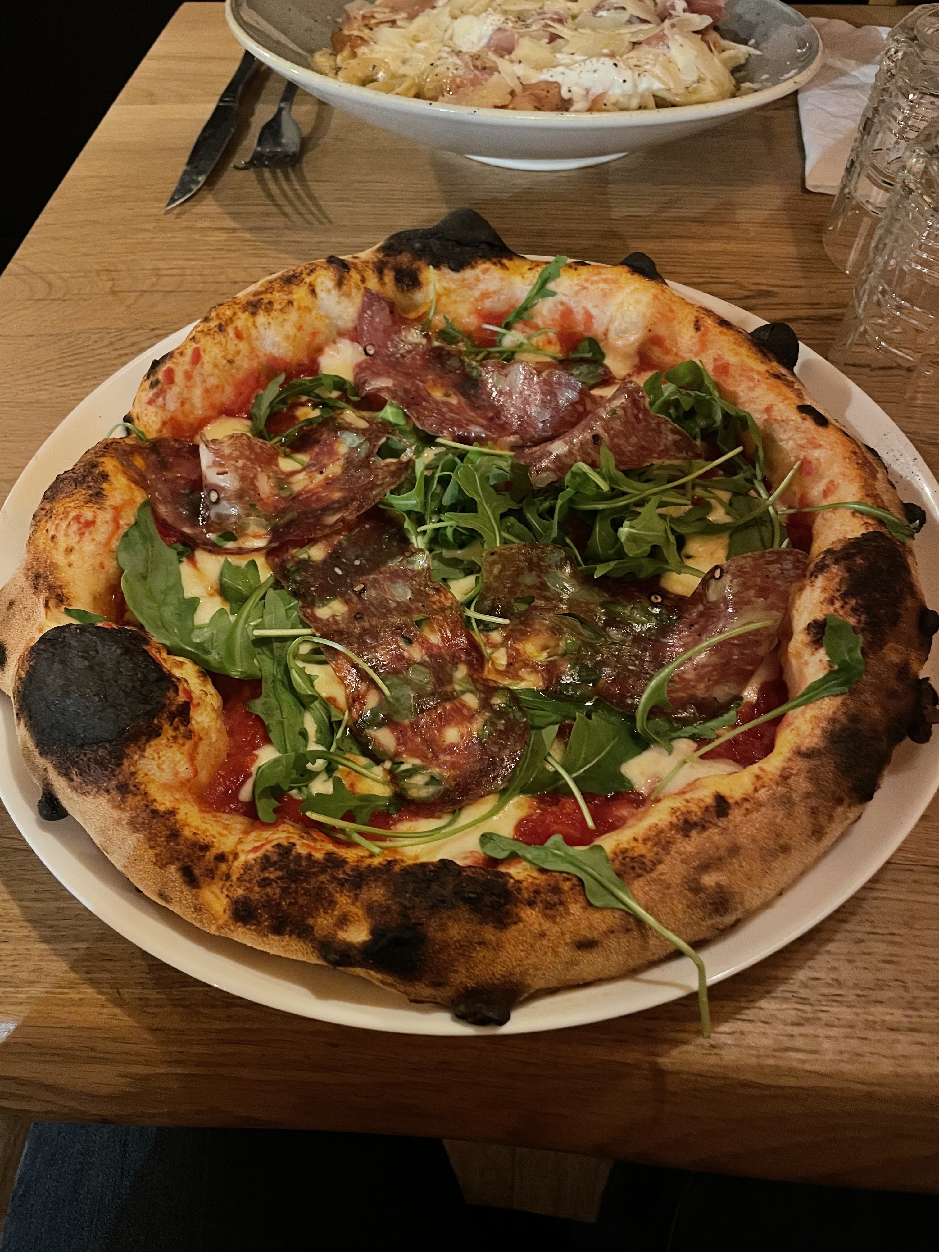 Je rentre d’Italie, et donc mes attentes sont très hautes en qualité de pizza. Un cadre moderne et agréable, un service souriant et efficace. La pâte à pizza est super bonne et légère, belle cuisson au feu de bois 😁. Les ingrédients sont de qualité et ça se sent. Seul regret la mozza est lourde, compacte , ça colle🥺 du coup le plaisir est un peu gâché.