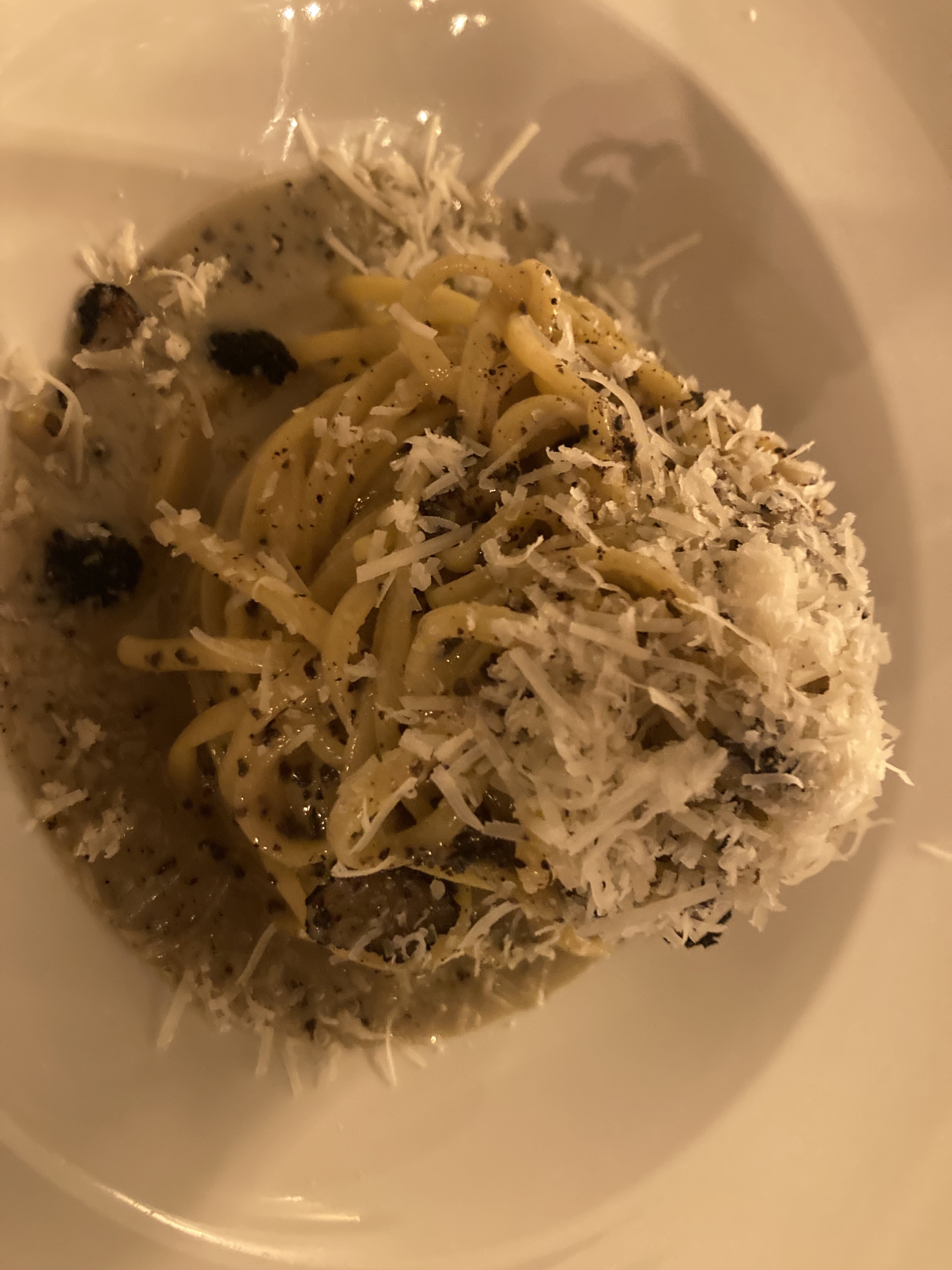 Nous avons passé un super moment ! Les pâtes aux truffes était juste excellente avec des vrais morceau de truffes. Les pâtes carbonara était des vrais pâtes carbonara ! Les propriétaires nous on raconté la signification des noms des pâtes et l’histoire de leur restaurant. Je recommande vivement ! Ce n’est pas pareil que manger des pâtes à la maison 😉