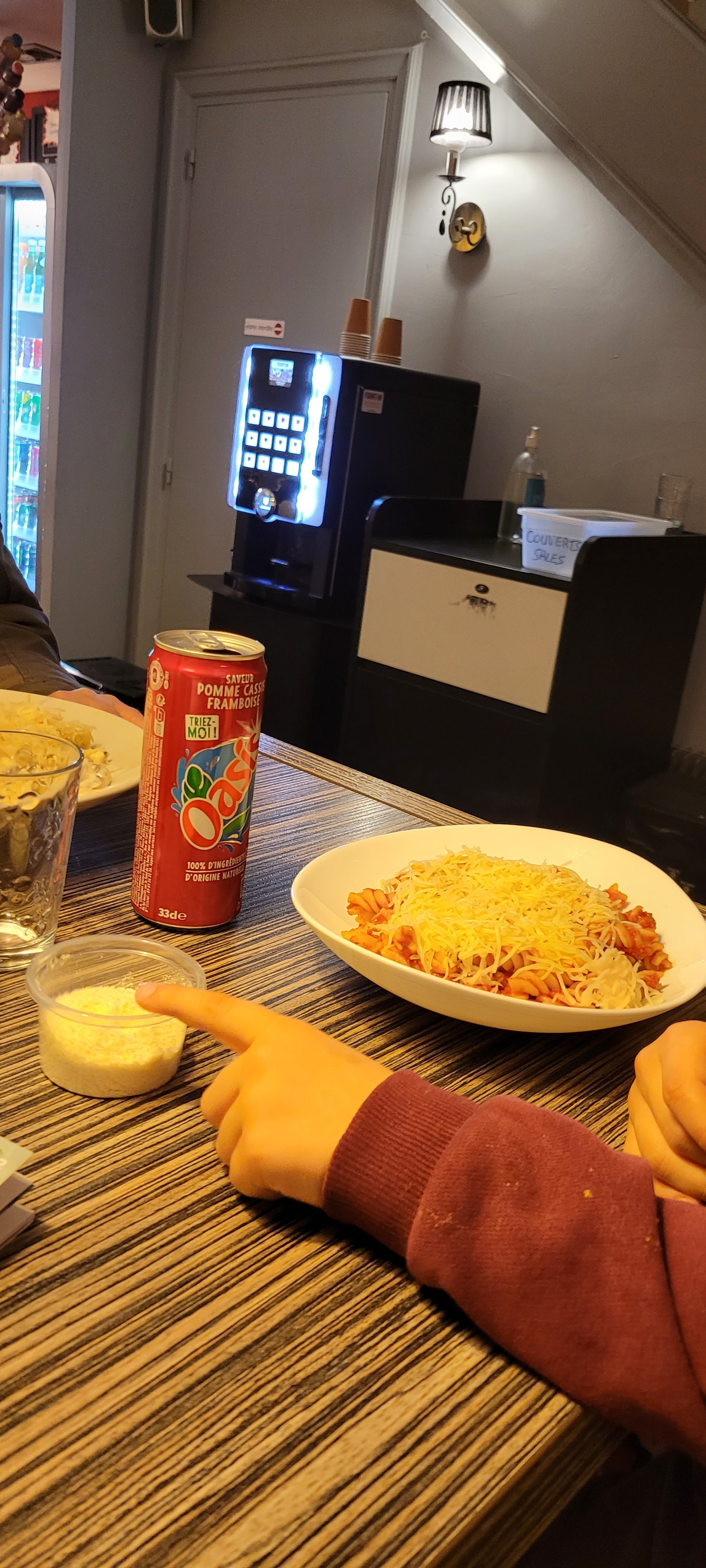 Beaucoup de choix de pâtes, patrons très sympa et convivialité, lieu cosy