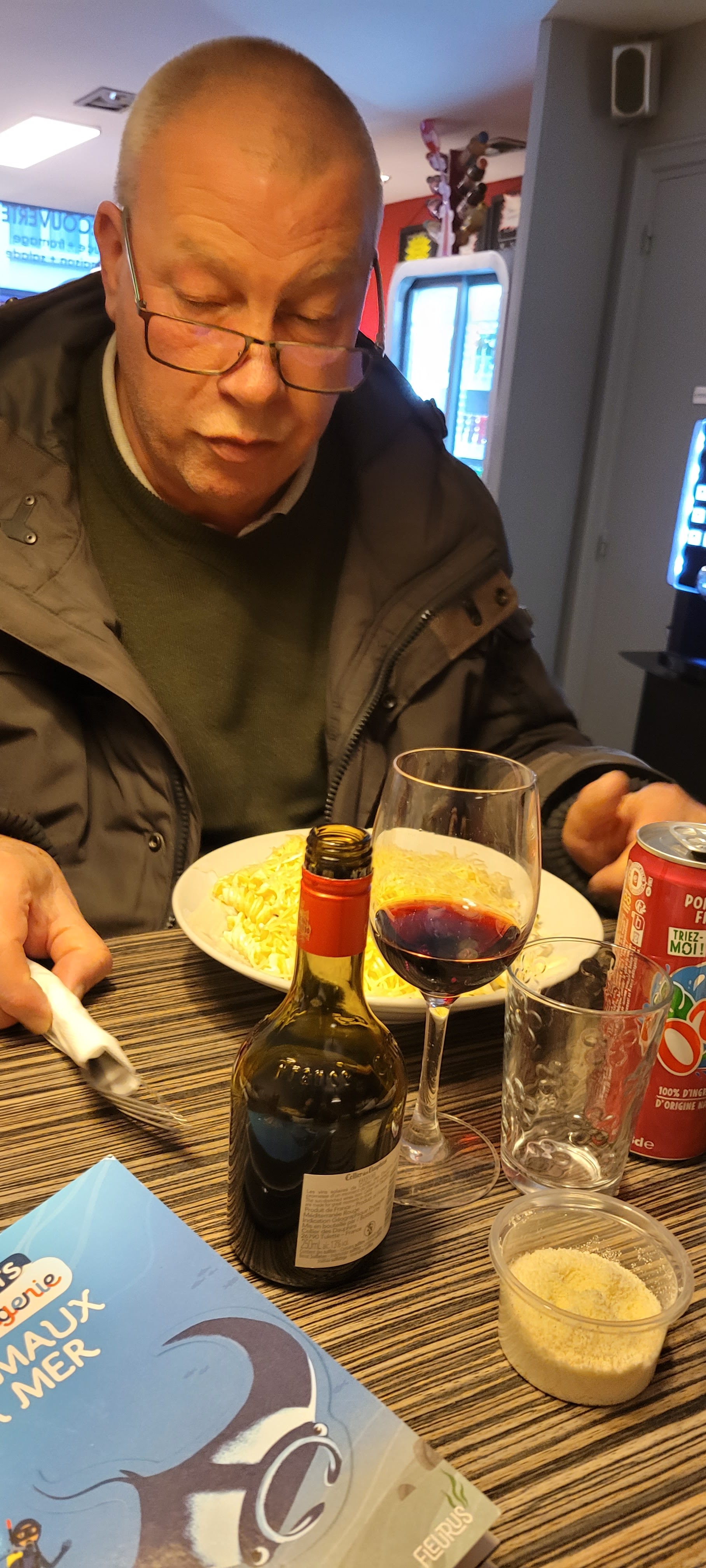 Le vin est un retour aux années 1990. Les pâtes étaient incroyables même si en portions énormes, on ne pouvait pas tout manger. A été servi très rapidement et le propriétaire était gentil même avec nos français impuissants