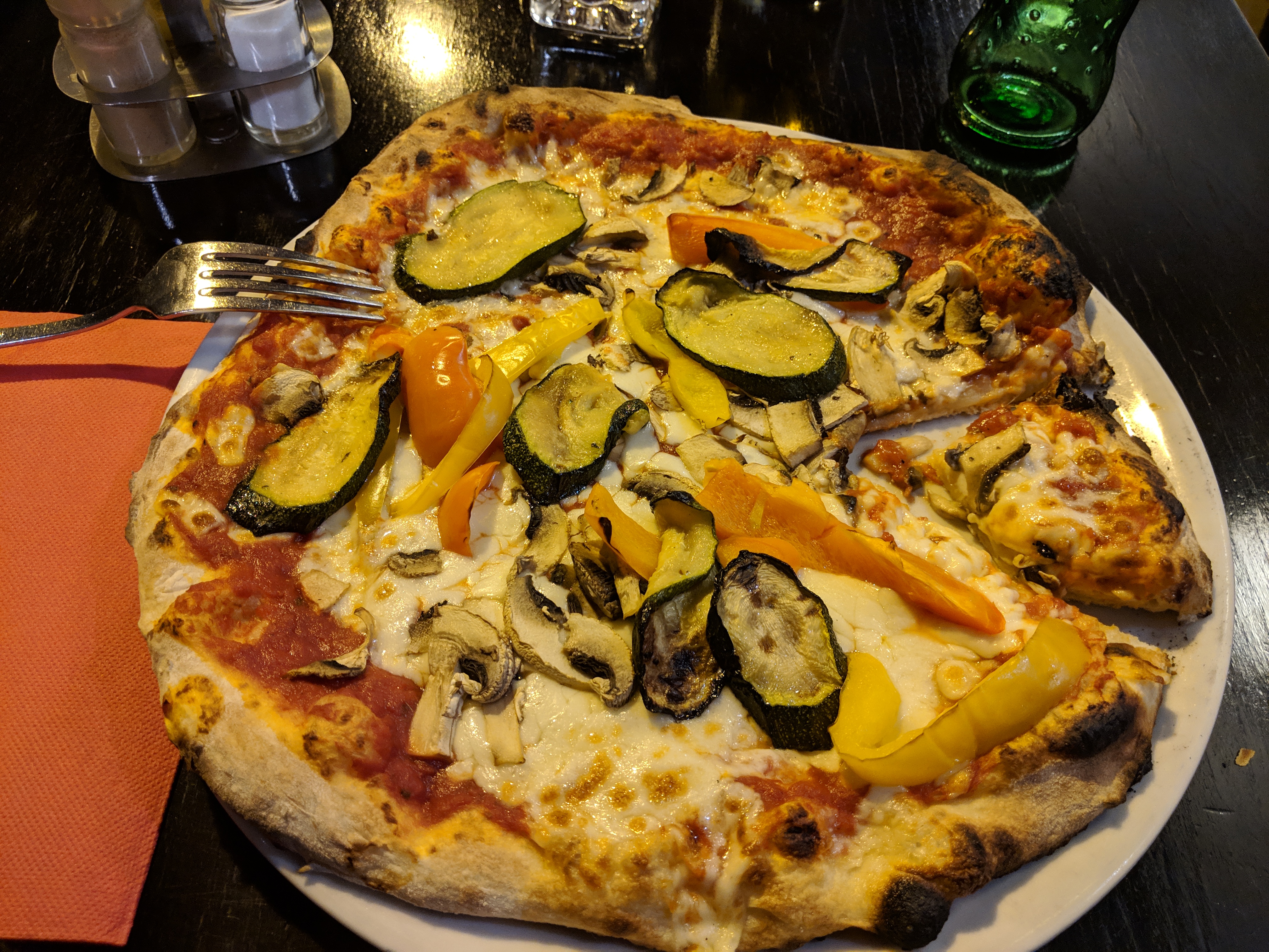 Nous avons dû venir le mauvais jour au vu des avis. Demande d’emporter la demi pizza oubliée, apparemment « mal compris par le cuisinier étranger », commande d’une boisson jamais servie mais facturée sur la note.