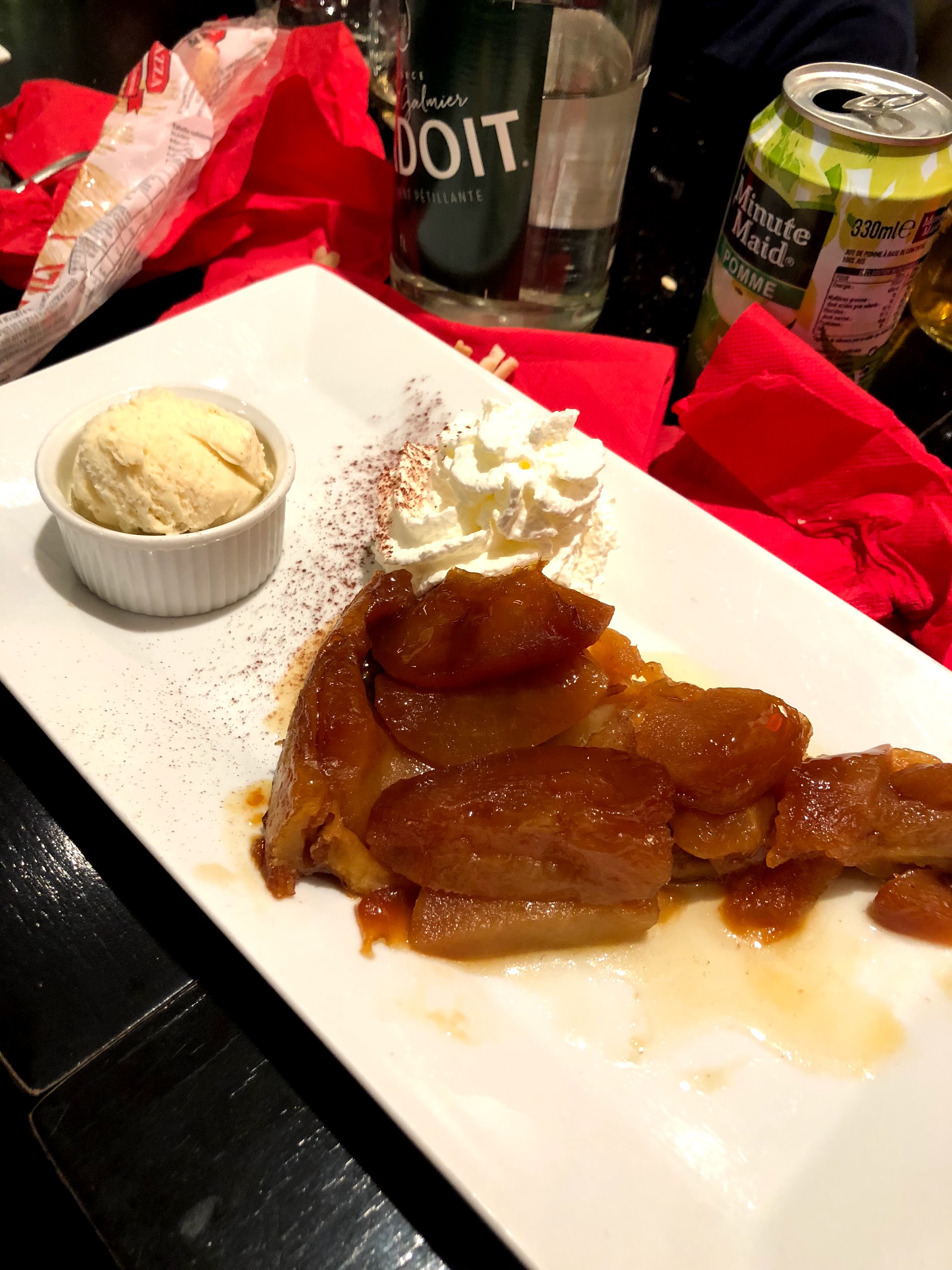 Les pizzas étaient plutôt pas mal, mais par compte, ne commandez jamais la pâtisserie du jour à un prix de 8,50 € pour une tarte aux pommes qu’on trouve dans les kebabs à 2euros.