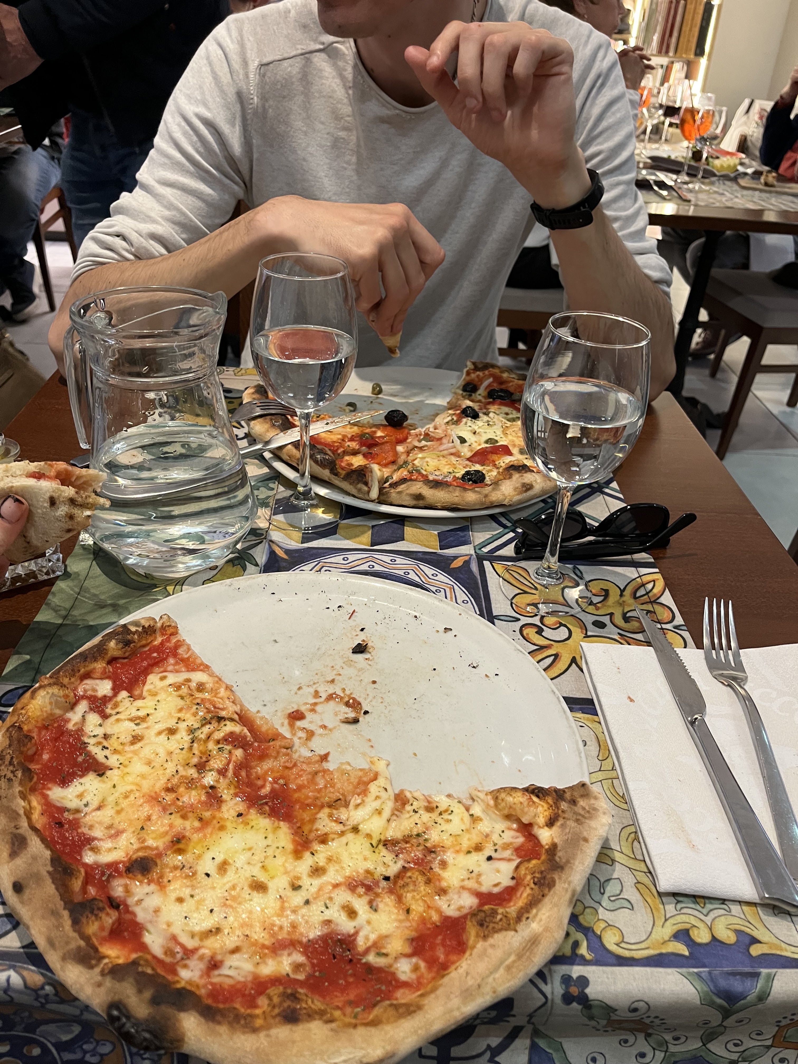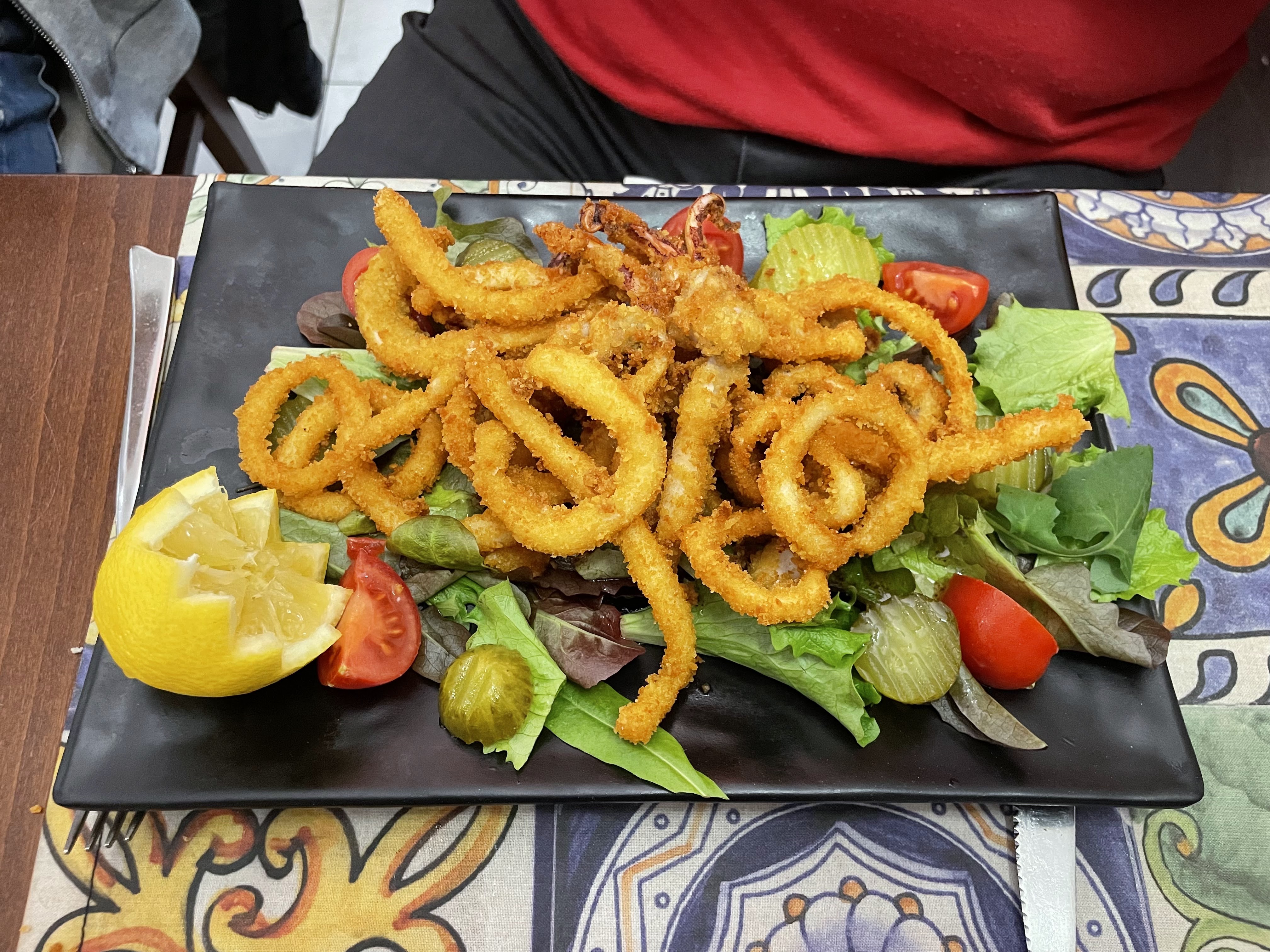 Les plats de ma femme étaient excellents. Morue et poulpe. Si j'avais su que la pizza Catania contenait également du pesto génois, je ne l'aurais certainement pas commandé. De plus, le jeune serveur était un peu insistant.