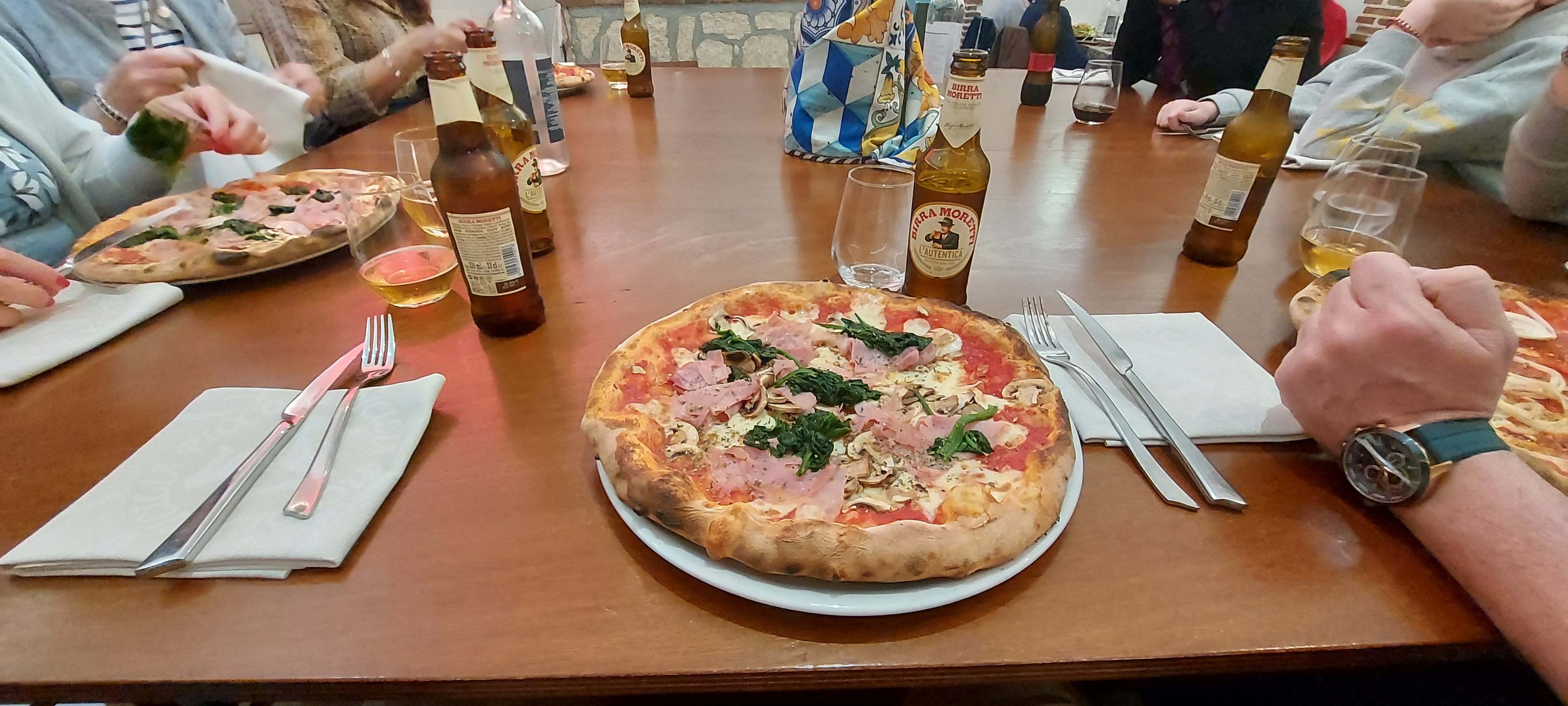 Nous sortons à l'instant du restaurant. Et le moins que l'on puisse dire, c'est que nous avons été bien accueilli , très chaleureux. Et en plus de ça, nous avons très bien mangé.....Les tagliatelles crevettes et cèpes.... À tomber !. La pizza Quattro stagioni.....un régal, le verre de vin blanc.... une merveille !. J'ai découvert la bière Moretti 50cl.... excellent !. Encore un grand Merci !!!!!!!. Giovanni , Marie pamela et les enfants. Bonne continuation. À bientôt je l'espère.
