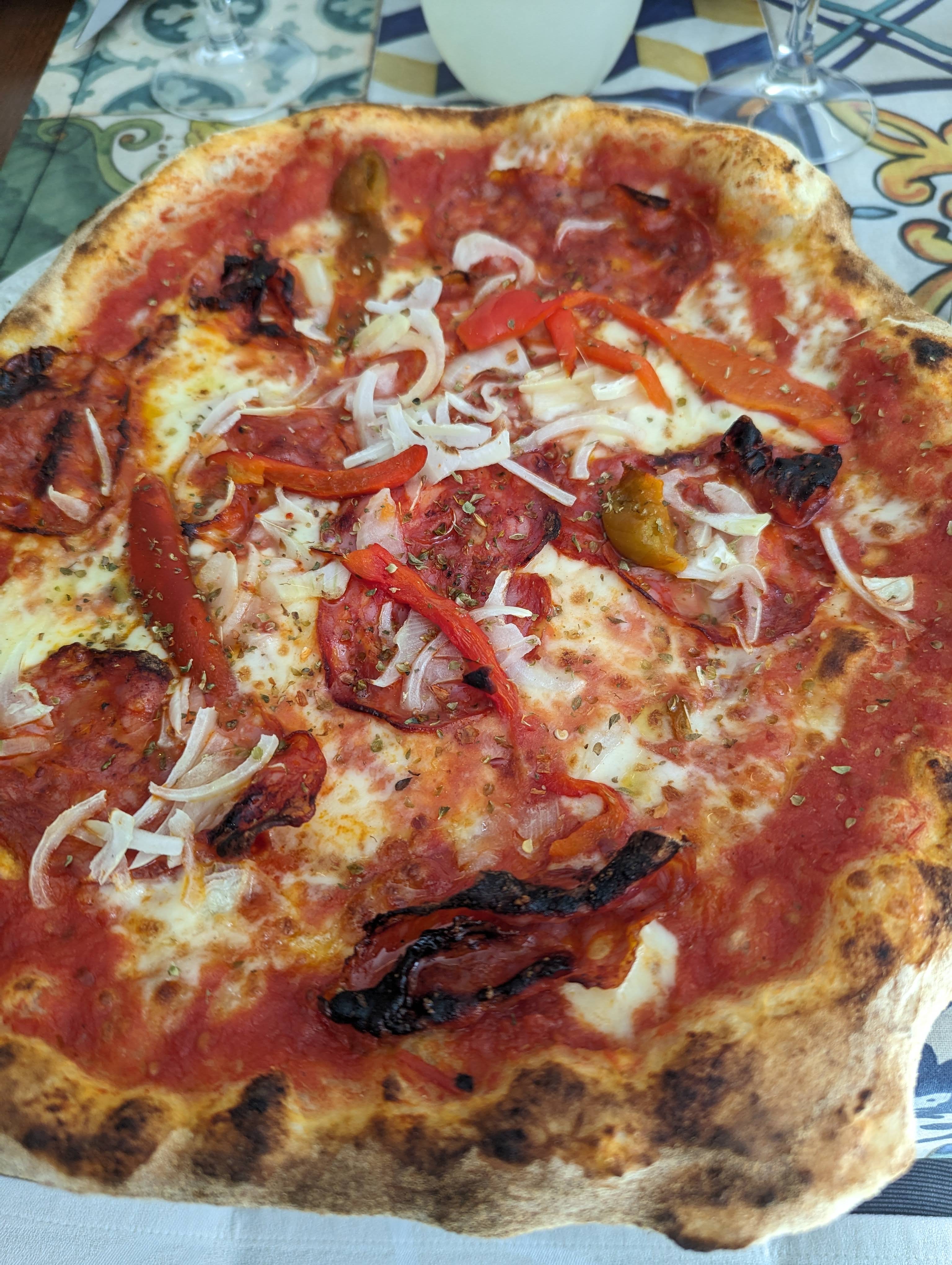 Après avoir erré pendant un bon moment, c'était un soulagement total d'avoir une table ici. Le service était attentionné et j'ai eu un bon spritz et je pouvais me détendre assis dehors. La pizza était facilement adaptée pour être végétalienne en supprimant le fromage, et elle était fraîche et très savoureuse. Cela semblait être un endroit fiable pour un bon repas