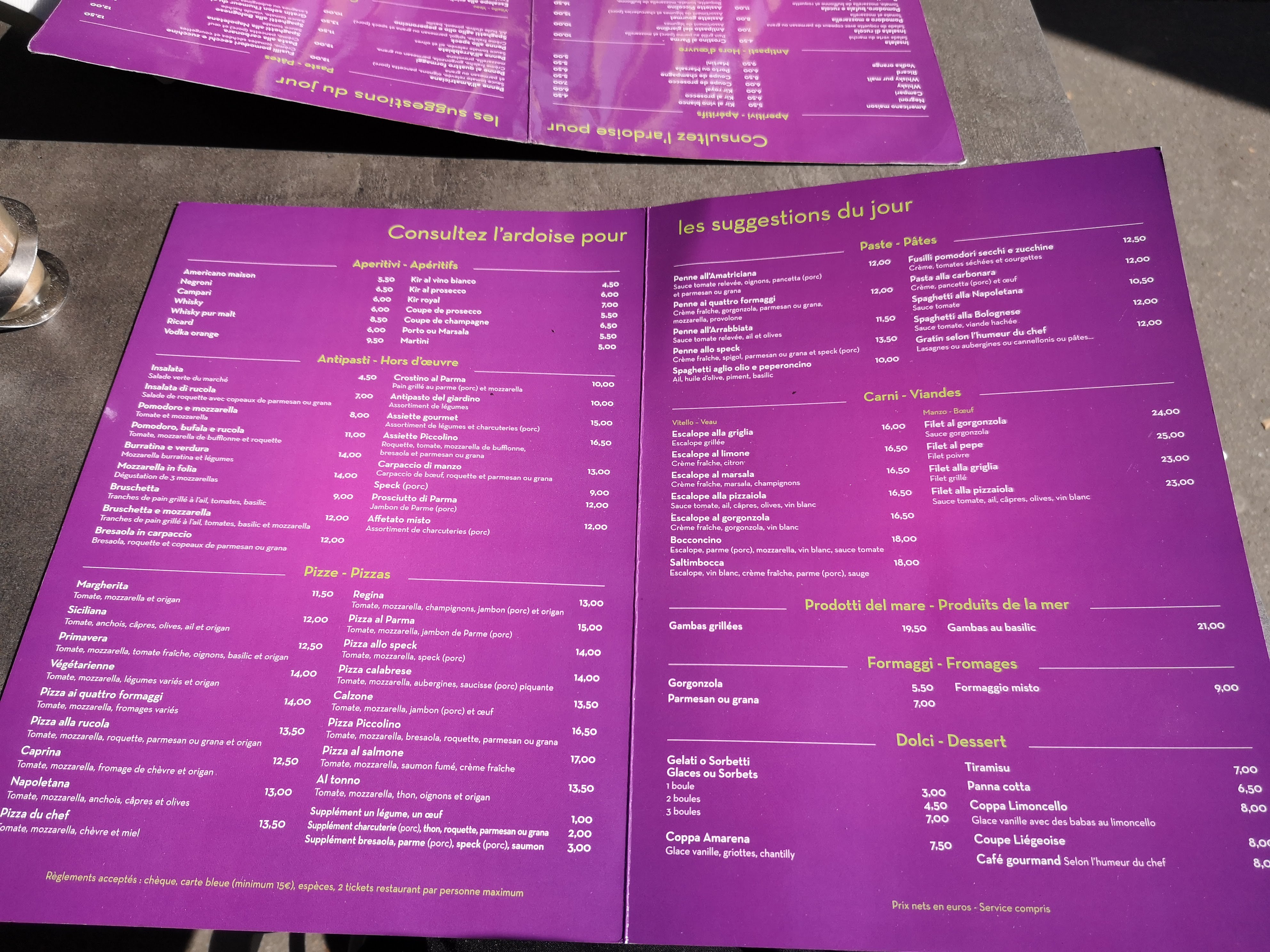 Super restaurant. Très bon accueil. Très bonne cuisine italienne, fraîche et de bonne qualité.