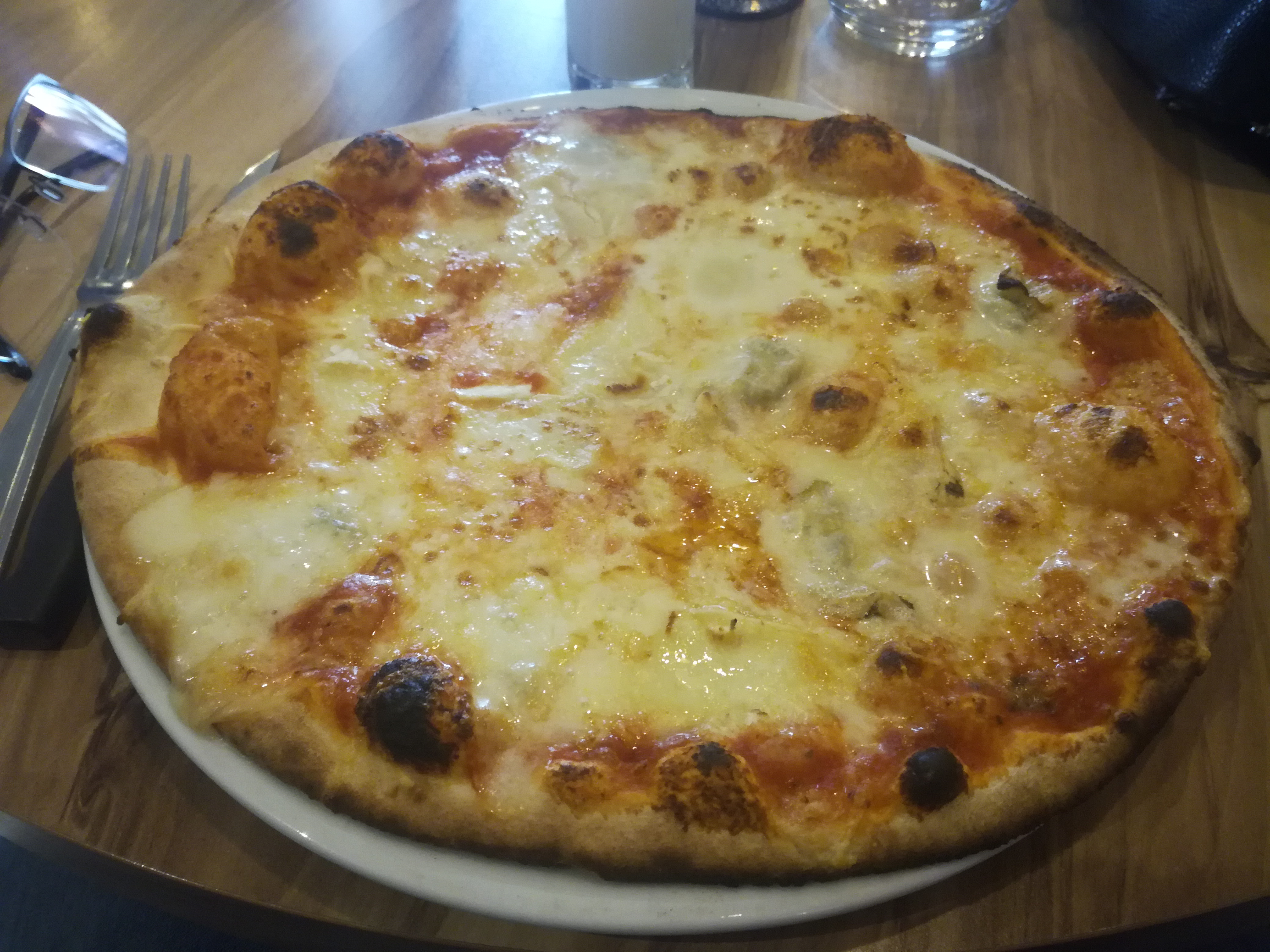 C'était la 1ère fois, très bien reçu, les pizzas étaient très bonnes et le service impeccable et souriant, la musique peut-être un peu forte au bar mais j'y retournerai